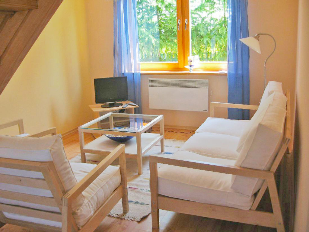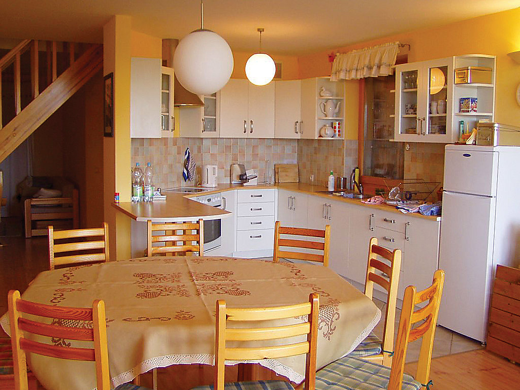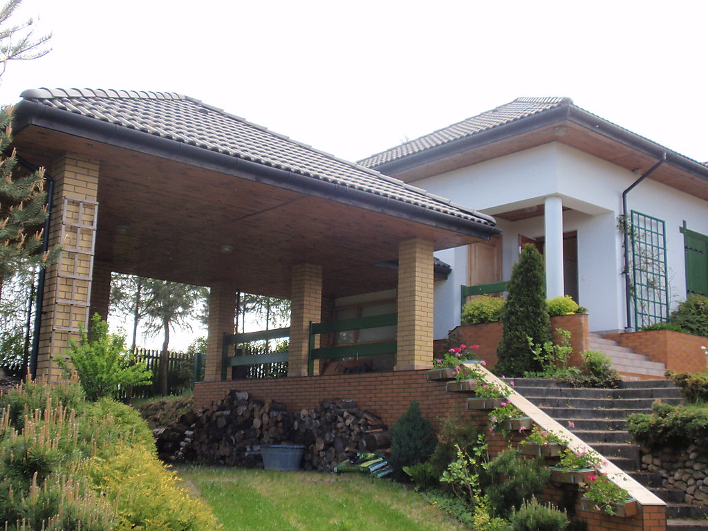 Einfamilienhaus "Jacek". In einem Weiler, 300 m vom Zentrum, ruhige, sonnige, erhöhte Lage, 8 km vom Meer, 300 m vom See, 8 km vom Strand, im Grünen. Zur Alleinbenutzung: Grundstück 800 m2, Garten 500 m2. Gartenmöbel, Grill. Heizung vor Ort zu zahlen. Zufahrt bis zum Haus. Treppenweg (20 Stufen) bis zum Haus. Parkplatz (überdacht). Lebensmittelgeschäft 300 m, Restaurant 200 m, Bushaltestelle 300 m. Reitstall 5 km.