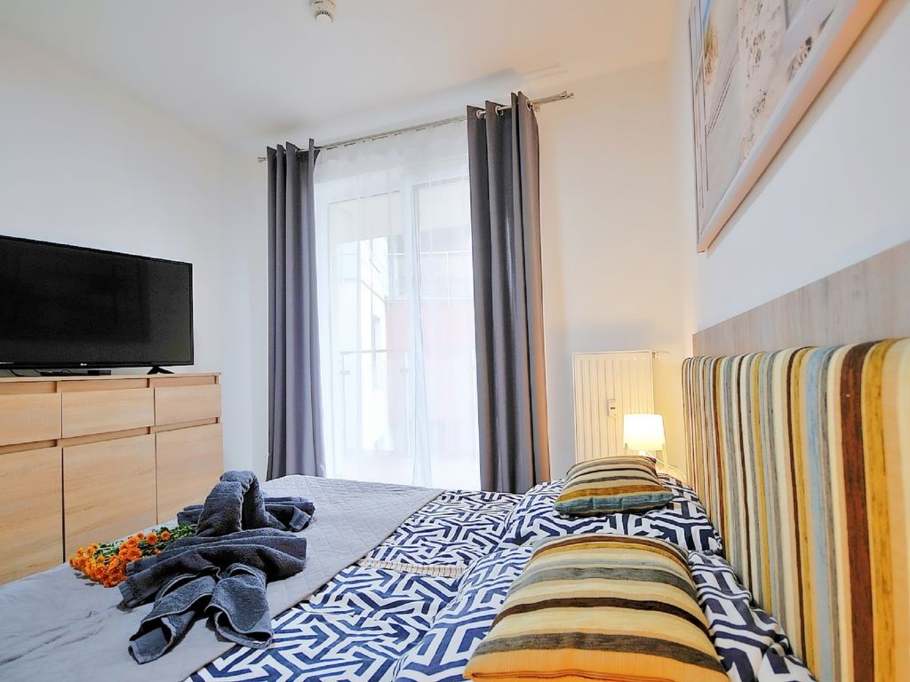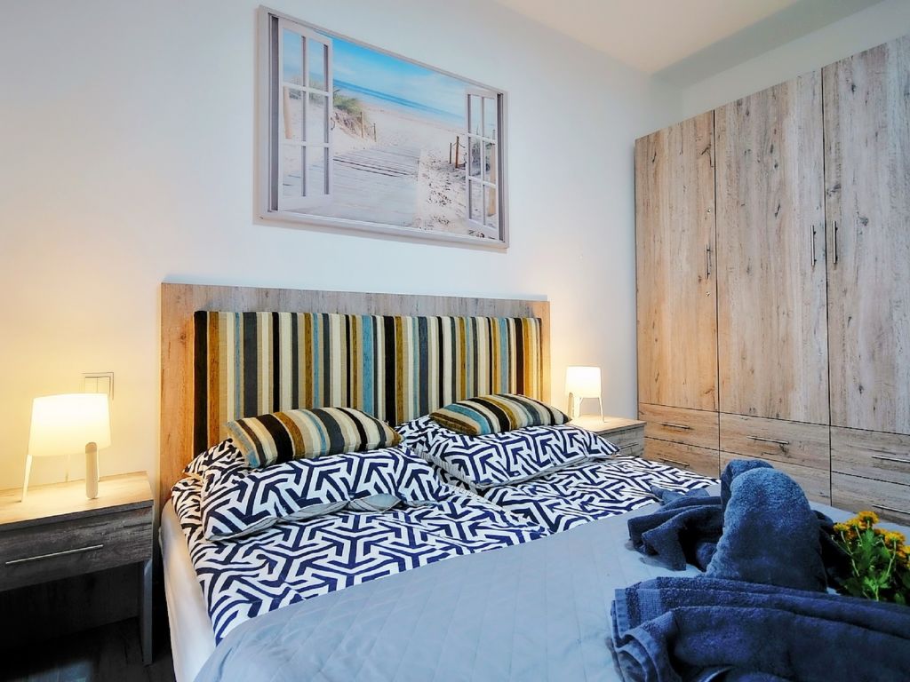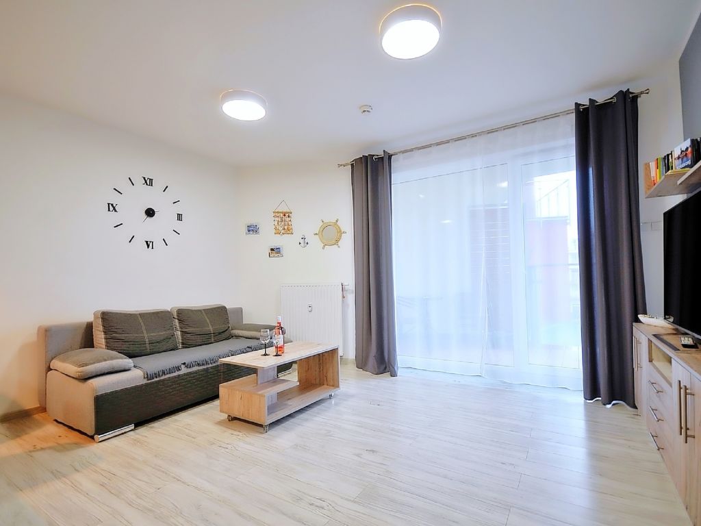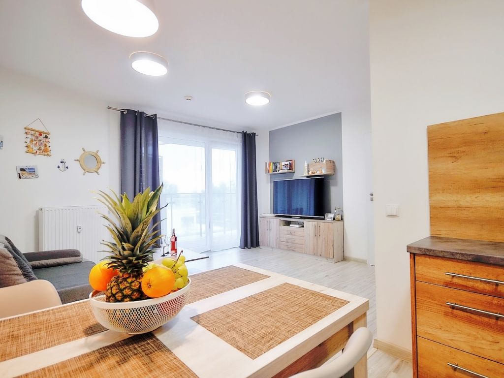 Modernes, komfortables Appartementhaus "Szum Morza", Baujahr 2017. Am Ortsrand, ruhige, sonnige Lage, 350 m vom Meer, im Grünen. Zur Mitbenutzung: Hallenbad beheizt (6 x 17 m, Öffnungszeiten Schwimmbad: 09:00-21:00). Dusche/WC im Poolbereich, Kinderbecken, Sprudelbad, Kinderspielplatz. Im Hause: Sauna, Fitnessraum, Spielzimmer, Fahrstuhl, Zentralheizung, Alarmanlage. Parkplatz beim Haus auf dem Grundstück, öffentliche Parkplätze auf der Strasse. Einkaufsgeschäft 1.3 km, Lebensmittelgeschäft, Supermarkt 850 m, Restaurant 300 m, Bushaltestelle 1.1 km, Bahnstation 2.5 km, Sandstrand 350 m. Sporthafen 3 km. Nahe gelegene Sehenswürdigkeiten: Oceanarium 3 km, Molo 3 km, Park Dziki Zachód Zieleniewo 7 km. Bewachte Residenz.