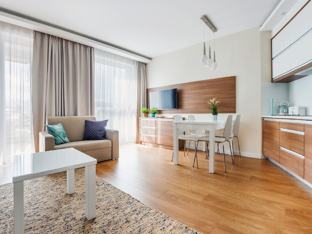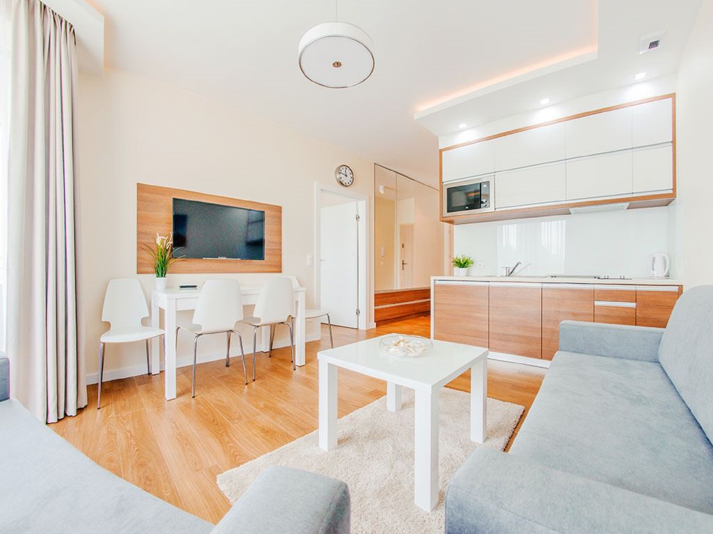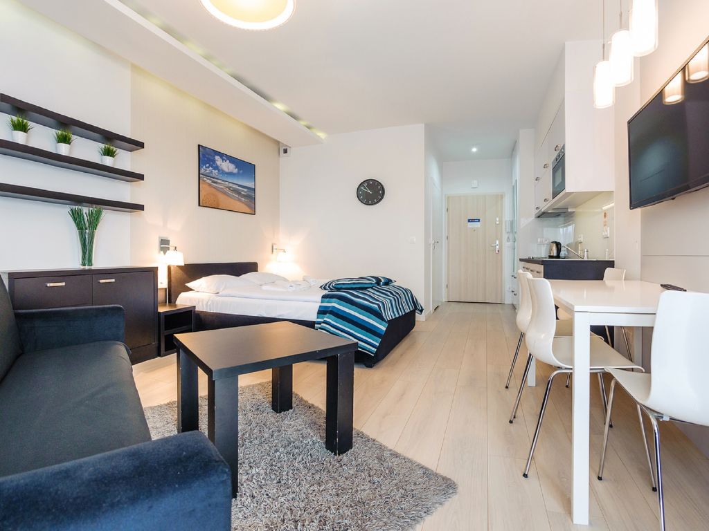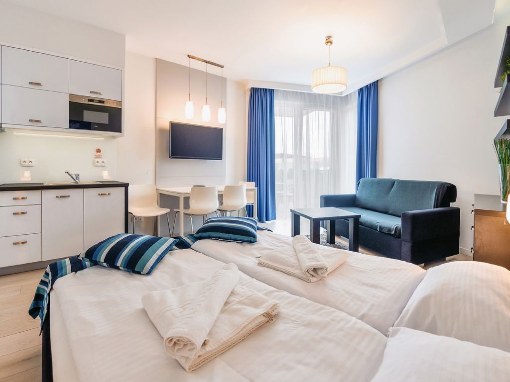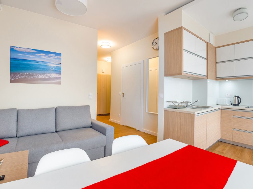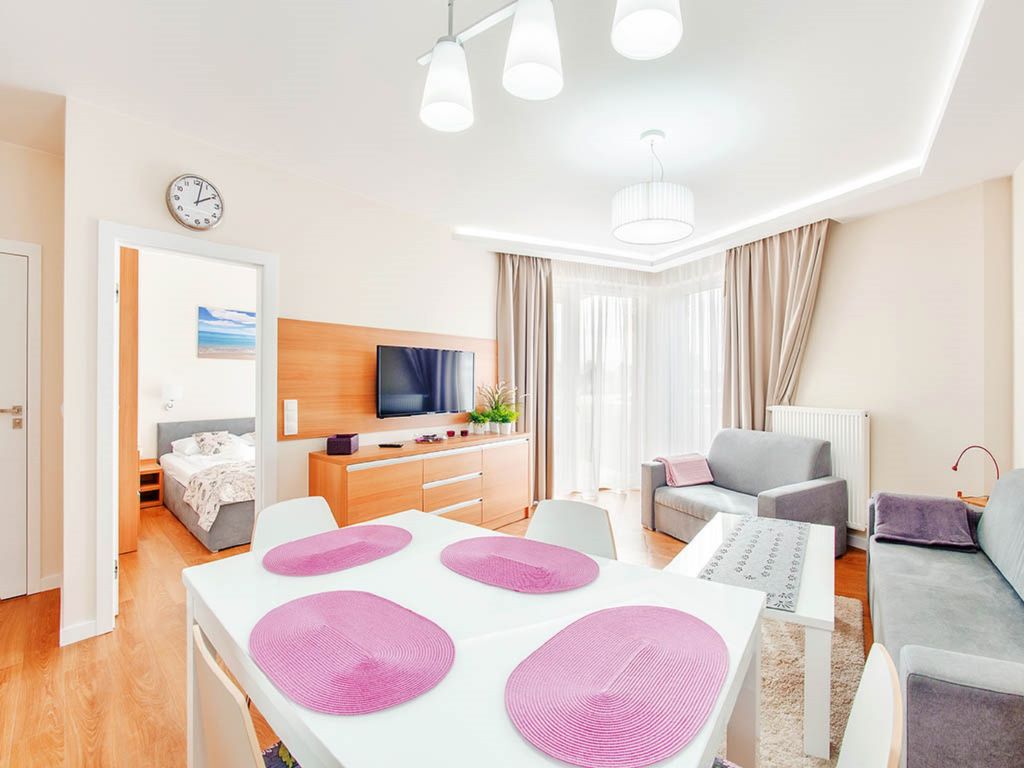"Sun & Snow apartament dla 4 osób", 2-Zimmer-Wohnung 30 bis 52 m2. Wohn-/Schlafzimmer mit 1 Diwanbett und Sat-TV. 1 Zimmer mit 1 Doppelbett. Offene Küche (Geschirrspüler, 1 Induktionskochplatten, Wasserkocher, Mikrowelle). Dusche/WC. Zur Verfügung: Haartrockner.
