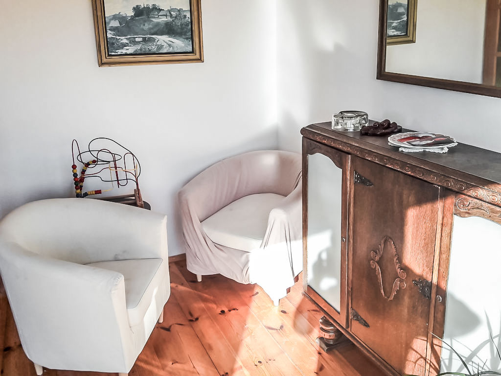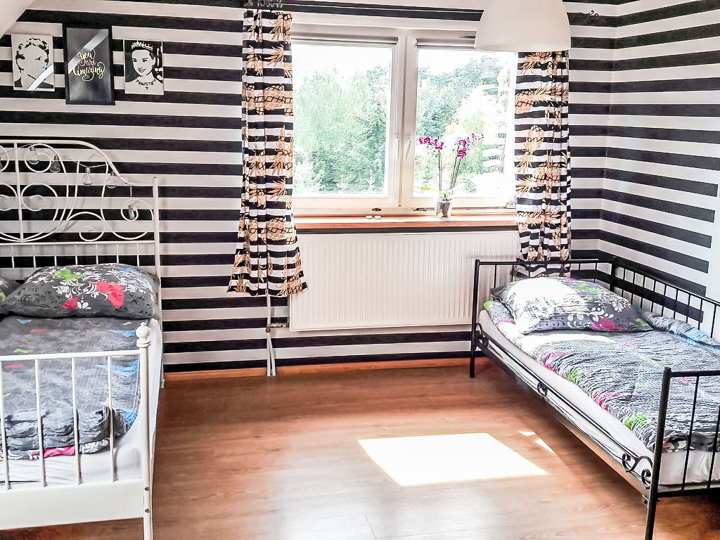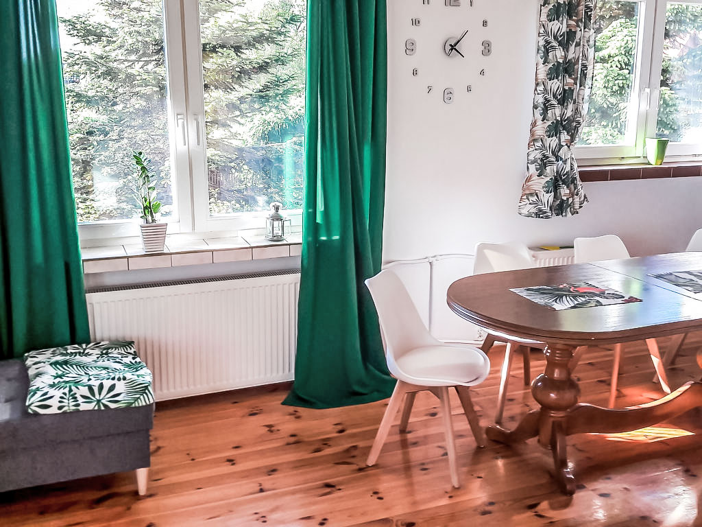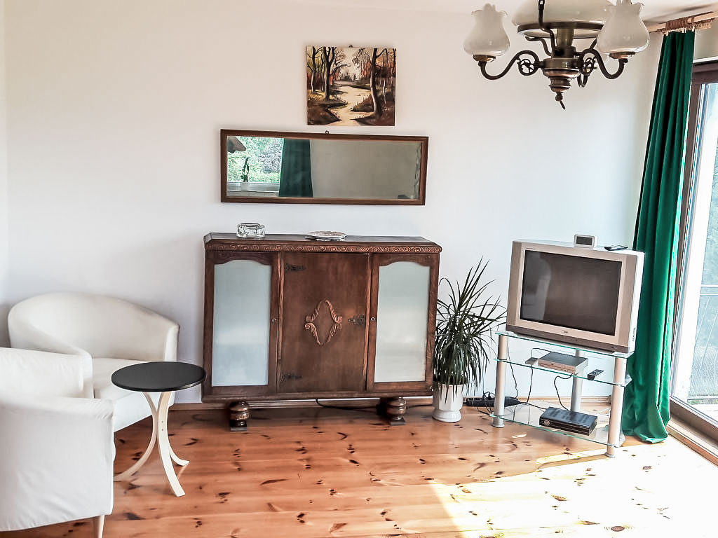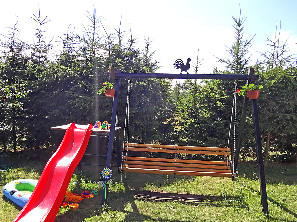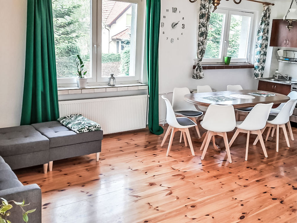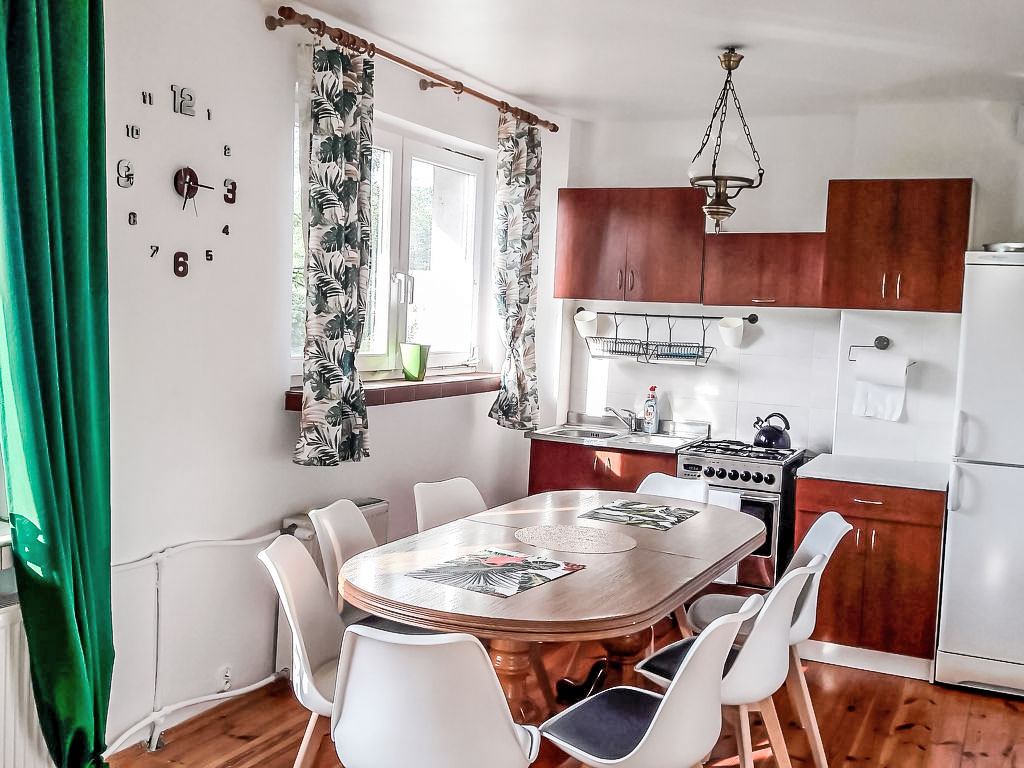 Zweifamilienhaus "Długa". Ruhige, sonnige Lage, 5 km vom Meer, 300 m vom See, 5 km vom Strand, an einer Strasse, im Grünen. Zur Mitbenutzung: Grundstück 1'250 m2 (eingezäunt). Zur Alleinbenutzung: Gartenmöbel, Grill. Im Hause: Waschmaschine. Abholservice vom Flughafen (extra). Zufahrt bis zum Haus. Parkplatz beim Haus auf dem Grundstück. Einkaufsgeschäft 2 km, Lebensmittelgeschäft 200 m, Supermarkt 5 km, Restaurant 3 km, Bushaltestelle 200 m, Kieselstrand 5 km, Badesee 300 m. Reitstall 5 km, Kinderspielplatz 300 m. Bekannte Seen in der Umgebung sind gut erreichbar: Żarnowieckie. Es kann auf Anfrage ein Transfer ab Flughafen zum Ferienobjekt organisiert werden. Bitte beachten: Der Besitzer wohnt im selben Haus.