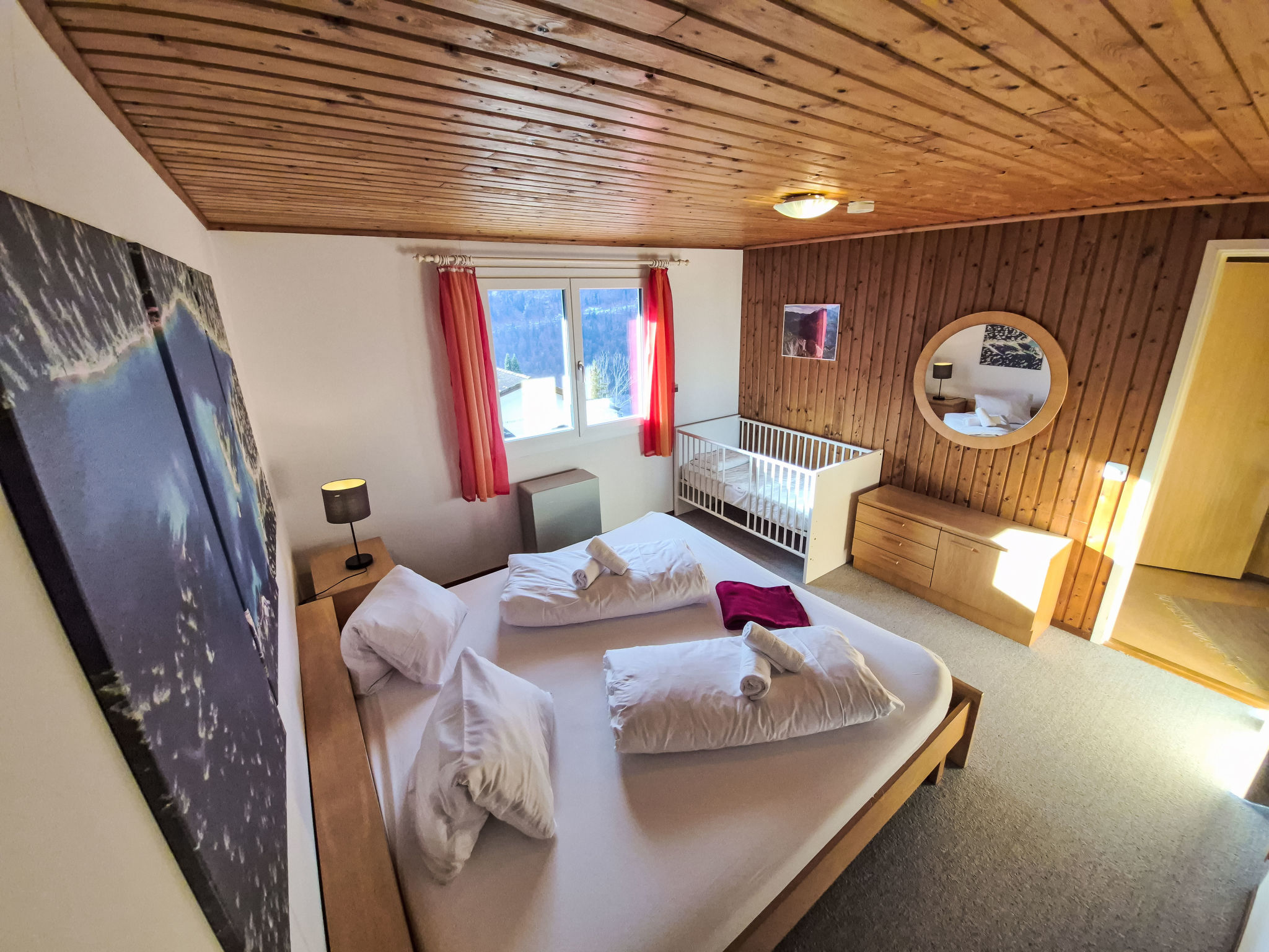 Das Chalet CRAP GRISCH mit 2 Wohnungen steht in Südhanglage im Ortsteil Tischinas, 2 km unterhalb von Ruschein, mit herrlichem Blick auf das Rheintal, Piz Mundaun und das Val Lumnezia. Bushaltestelle ca. 200 m (unregelmäßige Verbindung). Ilanz 2 km. Garage und davor Parkmöglichkeit für einen weiteren PKW. Terrasse und Gartenanteil mit Gartenmobiliar. Überdachter Balkon. Die Wohnung im Erdgeschoss mit separatem Eingang und Gartenanteil wird von deren Besitzern als Ferienwohnung genutzt. Die von uns angebotene Wohnung ist freundlich und feriengerecht eingerichtet. Holzdecke und holzvertäfelte Wände im Wohnraum schaffen eine gemütliche Atmosphäre. PVC- und Teppichboden. Sat-TV (deutsche Programme). Stereoanlage. Waschmaschine, Bügeleisen/-brett. Elektro-Nachtspeicherheizung. Hinweis: Rauchen ist in der Wohnung nicht gestattet. Winter-Infos: Liftanlagen 8 km. Bei guter Schneelage ist eine Abfahrt bis nach Ladir möglich, dort Skibus bis nach Ruschein.
