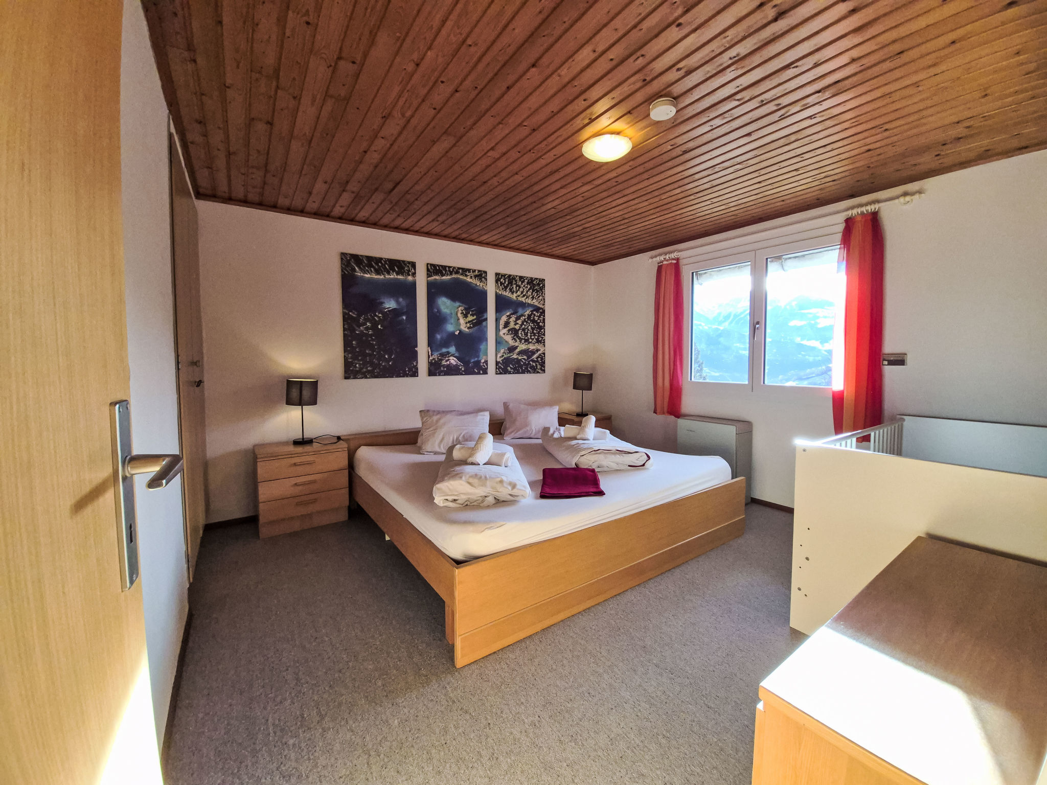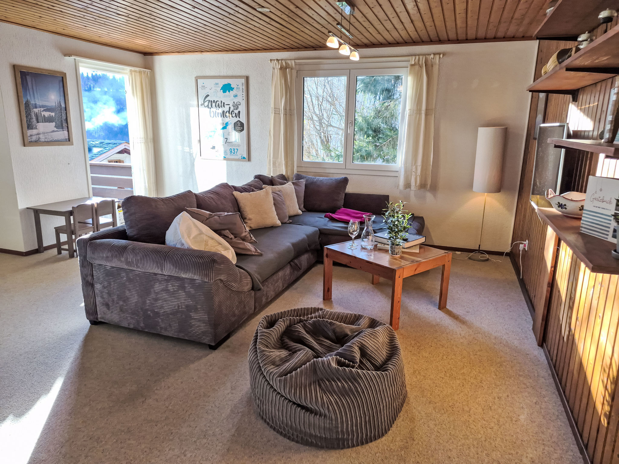 "Crap Grisch (LAA554)", 4-Zimmer-Wohnung 80 m2 im 1. Stock, Südlage. Renoviert im Jahre 2013, zweckmässig und mit viel Holz eingerichtet: Wohn-/Esszimmer mit Essecke, Sat-TV und Stereoanlage. Ausgang zum Balkon. 2 Doppelzimmer. 1 Zimmer mit 1 Bett. Offene Küche (4 Kochplatten, Backofen, Geschirrspüler, elektrische Kaffeemaschine, Racletteofen). Dusche/WC. E-Heizung, Boiler (100 Liter). Balkon, Terrasse, Garten. Terrassenmöbel. Panoramasicht. Zur Verfügung: Waschmaschine, Bügeleisen, Kinderhochstuhl. Internet (Wireless LAN, gratis). Parkplatz, Garage beim Haus. Bitte beachten: Nichtraucher-Unterkunft. Eigener Eingang.