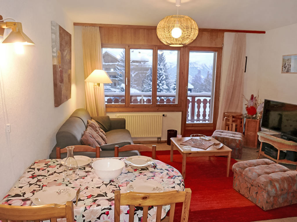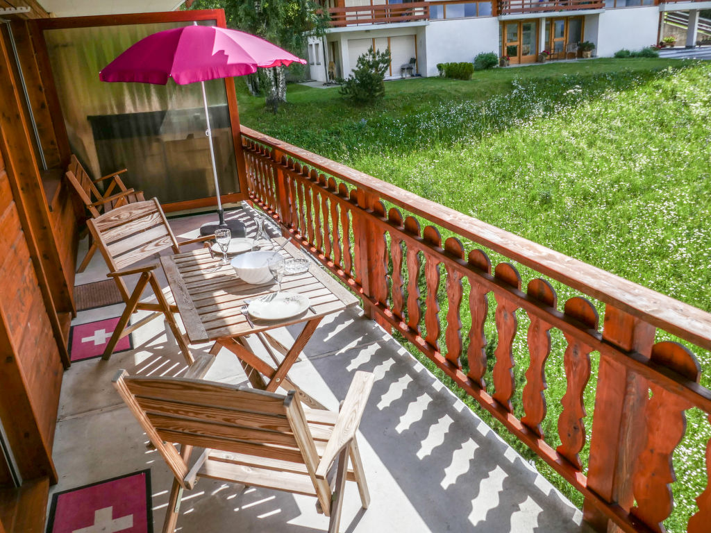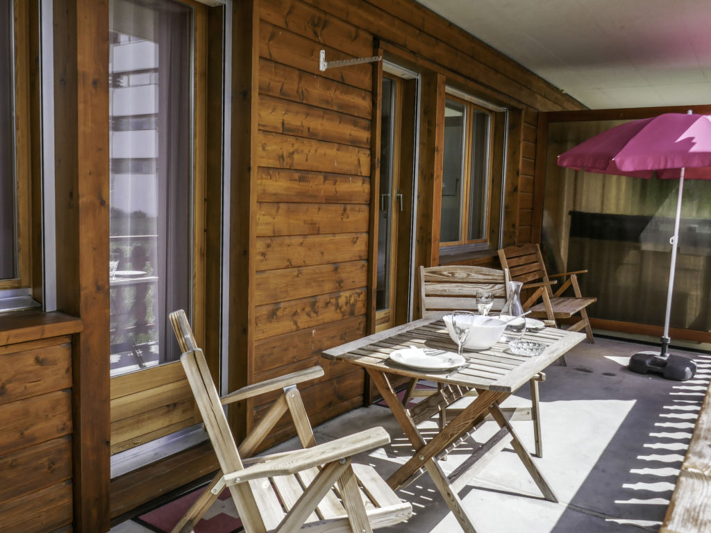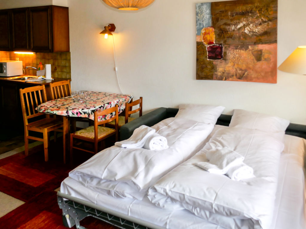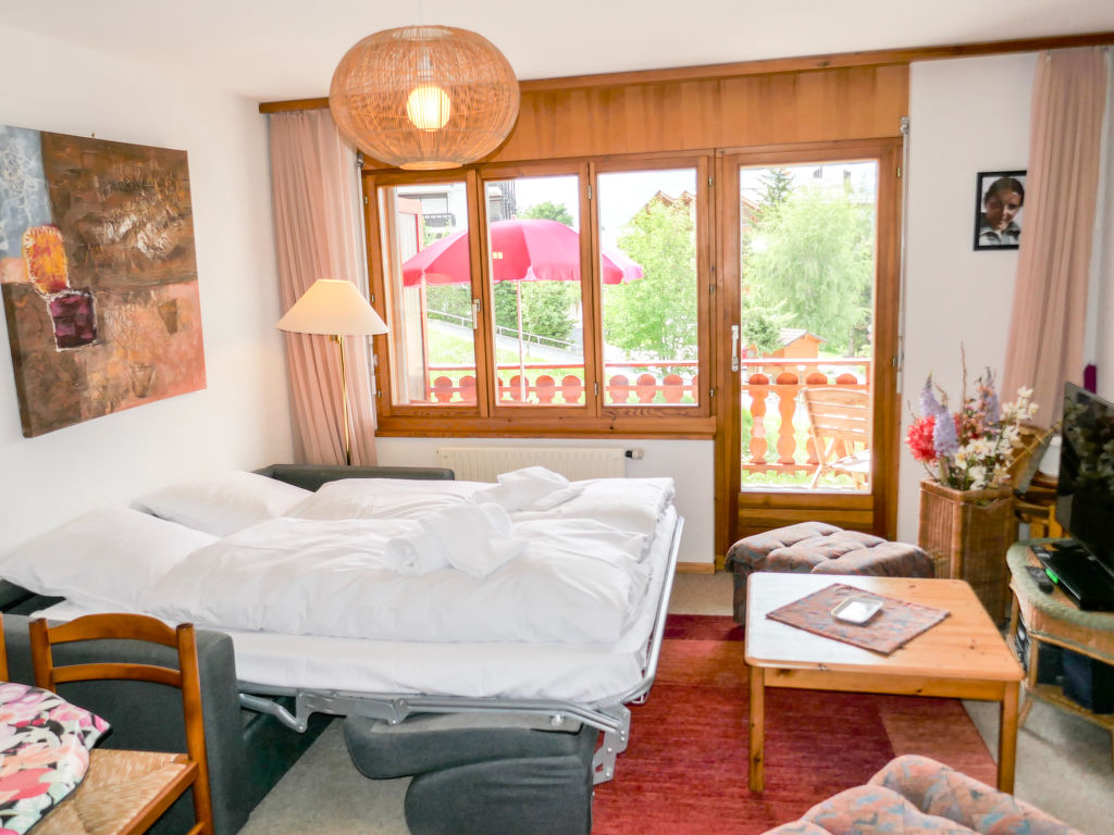 "Ambassador 2/12", 2-Zimmer-Wohnung 50 m2 im 3. Stock. Komfortabel eingerichtet: Wohn-/Esszimmer mit 1 Doppeldiwanbett (180 cm, Länge 185 cm), Kabel-TV, Radio, CD und DVD. Ausgang zum Balkon. 1 Zimmer mit 1 franz. Bett (160 cm, Länge 200 cm). Ausgang zum Balkon. Offene Küche (4 Kochplatten, Backofen, Geschirrspüler, Mikrowelle, elektrische Kaffeemaschine, Racletteofen). Bad/WC. Grosser Balkon, Westlage. Balkonmöbel. Sicht auf die Berge und das Tal. Zur Verfügung: Haartrockner. Internet (Wireless LAN, gratis). Bitte beachten: Nichtraucher-Unterkunft. 1 Haustier/Hund erlaubt.