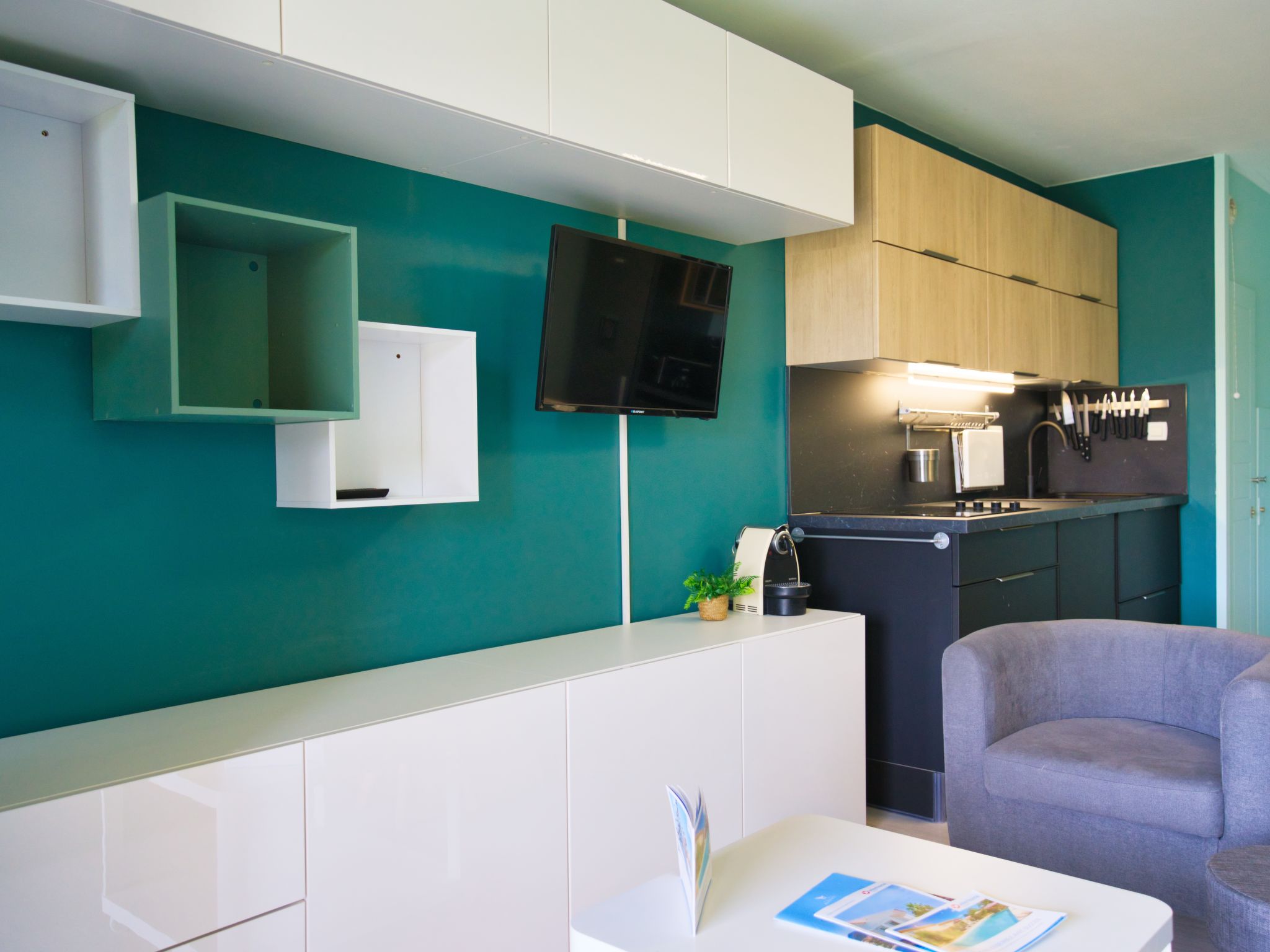 Grosse Ferienanlage "Village Cap Estérel - L'Esquinade", Baujahr 1990. Am Ortsrand, 2 km vom Zentrum von Agay, am Hang, in einem Wohnquartier, 900 m vom Meer, 900 m vom Strand, Strasse zu überqueren, am Golfplatz, in einer Fussgängerzone. Zur Mitbenutzung: Park 210 ha, 5 Schwimmbäder (saisonale Verfügbarkeit: 06.Apr. - 03.Nov.). Kinderbecken, Boccia, Kinderspielplatz (Rutschbahn, Schaukel). In der Anlage: Wellnessbereich (extra), Einkaufsmöglichkeit, Wäscherei (extra). Einkaufsgeschäft, Lebensmittelgeschäft 500 m, Supermarkt 6 km, Restaurant, Bäckerei, Café, Fahrradverleih 500 m, Bushaltestelle "Ligne 21" 300 m, Bahnstation "Saint-Raphaël-Valescure - Agay" 9 km, Sandstrand "Le Pourrousset" 800 m. Jacht-Hafen 1 km, Golfplatz (9 Loch) 300 m, Tennis 500 m. Nahe gelegene Sehenswürdigkeiten: Anthéor 8 km, Saint-Raphaël 9 km, Fréjus 13 km, Cannes 33 km, Saint-Tropez 50 km, Nice 76 km. Bekannte Seen in der Umgebung sind gut erreichbar: Lac Saint-Cassien. Wandergebiete: Massif de l'Estérel. Bitte beachten: autofreie Ferienanlage, kein Fahrstuhl vorhanden. Animation in der Saison. Geeignet für Familien, Kinderbetreuung in der Saison (extra). Bewachte Residenz. Die Schlüsselübergabe findet bei der Agentur Interhome in Cap Estérel statt. Die Wohnung befindet sich in einer für den Verkehr begrenzt zugänglichen Zone (ZTL). Weitere Unterkünfte sind buchbar.