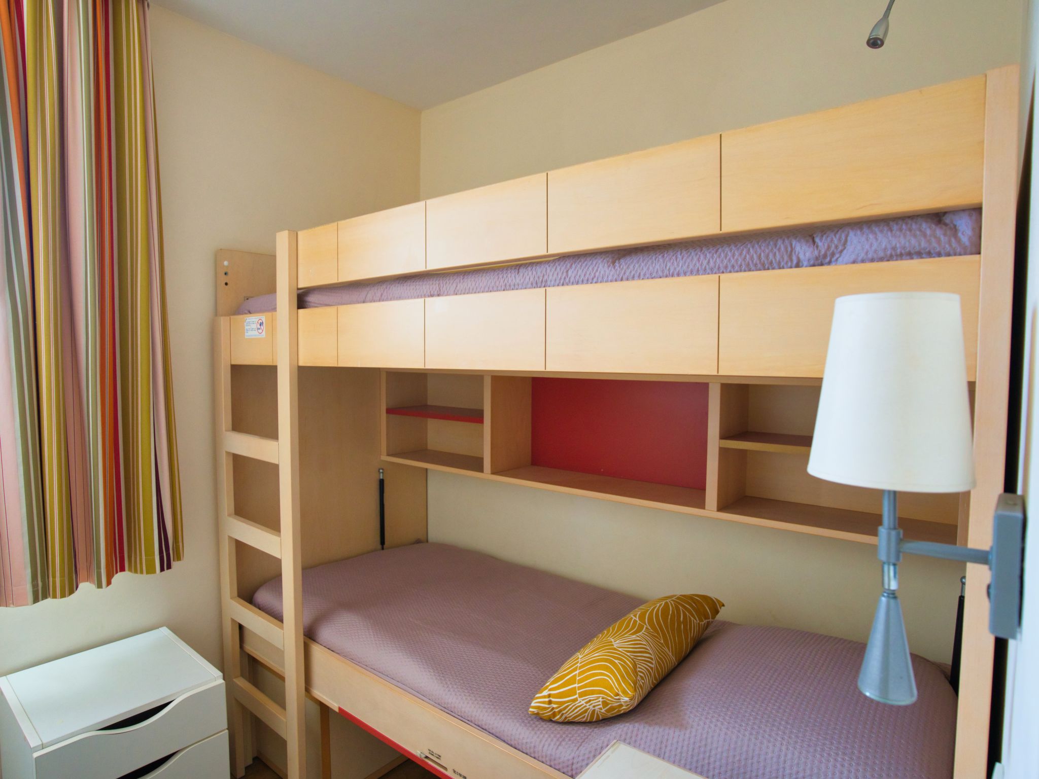 "L'Esquinade (H2 317)", 3-Zimmer-Wohnung 39 m2 im 2. Stock. Renoviert im Jahre 2023, komfortabel und modern eingerichtet: Wohnzimmer mit 1 Doppeldiwanbett (140 cm, Länge 190 cm), TV (Flachbildschirm). Ausgang zur Terrasse. Offene Küche (4 Kochplatten, Geschirrspüler, Toaster, Wasserkocher, Tiefkühler, elektrische Kaffeemaschine, Kombinationsmikrowelle). Dusche/WC. Obergeschoss: 1 Zimmer mit 1 franz. Bett (140 cm, Länge 190 cm). Ausgang zur Terrasse. Kabine mit 1 x 2 Etagenbetten (80 cm, Länge 190 cm). Bad/WC. Kleine Terrasse 4 m2, überdacht, grosse Terrasse 25 m2. Terrassenmöbel. Zur Verfügung: Waschmaschine, Bügeleisen. Internet (WLAN, extra). Parkplatz Nr. 2559 (überdacht, 1 Auto), Höhe 180 cm. Bitte beachten: Nichtraucher-Unterkunft. Maximal 1 Haustier/Hund erlaubt. Rauchmelder. Anstelle eines abgeschlossenen Schlafzimmers befinden sich manche Schlafplätze in einem offenen Bereich (Galerie, Nische etc.). Inserat einer Privatperson nach Artikel 155, IV, CGI. J00020232542