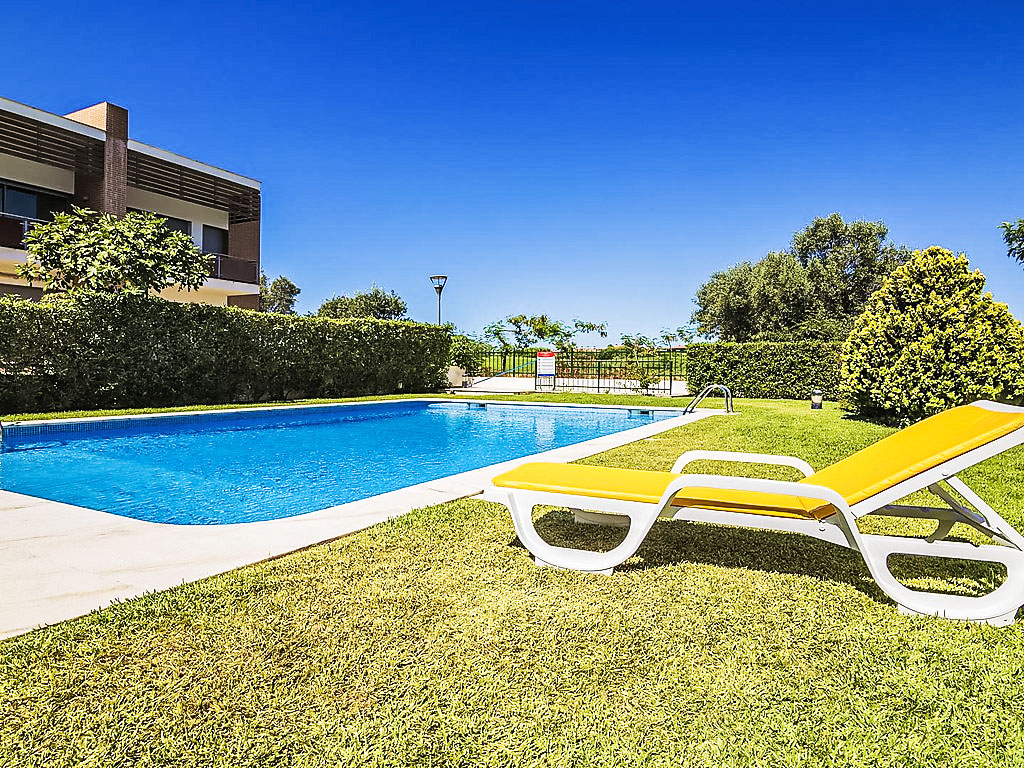 4 km von Vilamoura: Sehr schönes, gemütliches, komfortables Appartementhaus "Appartement VALÉRIE", Baujahr 2004, renoviert im Jahre 2015. 16 Häuser im Ferienresort. Im Ort, 4 km vom Zentrum von Vilamoura, ruhige Lage auf einem Hügel, im Villenviertel, im Grünen. Zur Mitbenutzung: grosser, schöner Garten Blumen und Bäumen, Naturgarten, Liegewiese, Schwimmbad (10 x 6 m, 90 - 280 cm tief, saisonale Verfügbarkeit: 01.Jan.-31.Dez.). Dusche/WC im Poolbereich, Kinderbecken. Im Hause: Wireless LAN, Klimaanlage, Waschmaschine, Wäschetrockner. Gemeinschaftsgarage Nr. 1ºM. Einkaufsgeschäft 3.4 km, Lebensmittelgeschäft 4.1 km, Supermarkt 4.4 km, Einkaufszentrum 17.2 km, Restaurant 4.1 km, Bar 4.4 km, Bäckerei 3.4 km, Café 4.4 km, Internet-Café 4.4 km, Biergarten 5.7 km, Sandstrand "Falésia" 8.7 km. Golfplatz (18 Loch) 350 m. Nahe gelegene Sehenswürdigkeiten: Marina de Vilamoura 4.4 km, Slide e Splash 40.7 km, Zoomarine 24.7 km, Oceánico Millennium Vilamoura 1.2 km. Die Residenz wird durch elektrische Tore geschlossen.