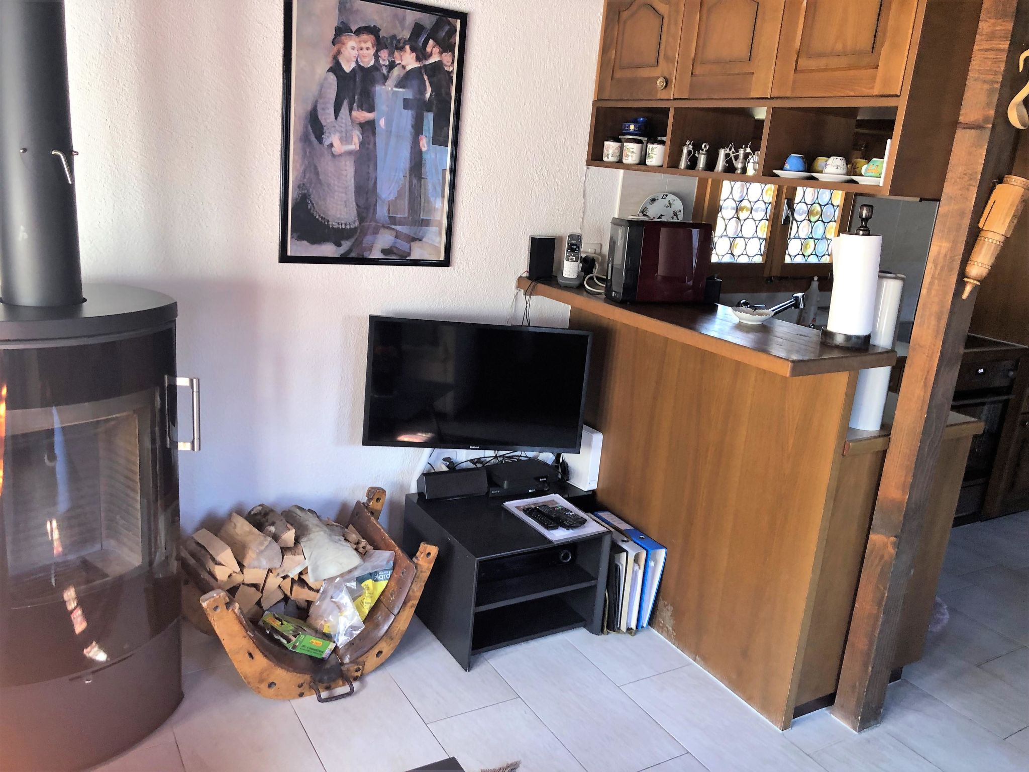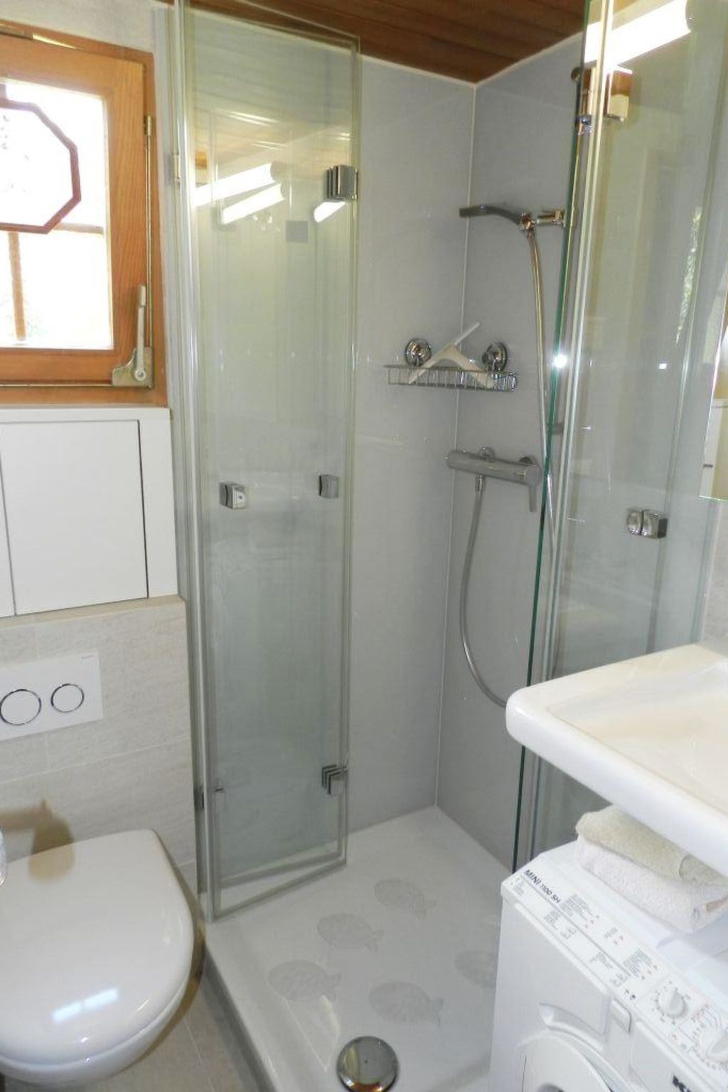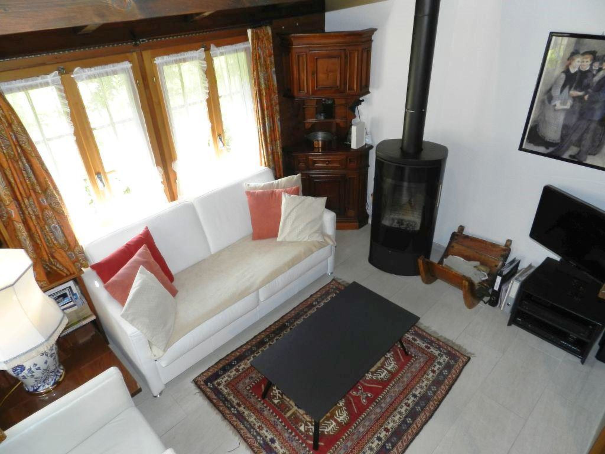 Wohnzimmer mit gemütlicher Sitzecke, Salontisch, Kabel-TV (HD, Flachbildschirm), DVD, Radio, Schwedenofen, elektrische Bodenheizung mit Thermostaten in allen Zimmern und Essecke mit offener Küche (Backofen, Kochherd mit 4 Kochplatten, Kühlschrank mit Gefrierfach, Kapsel-Kaffeemaschine (Delizio), Fondue-Set. Waschmaschine. Kleines Badezimmer mit Dusche/WC. Schlafzimmer mit Doppelbett (140x200cm) und Einbauschrank. WiFi.