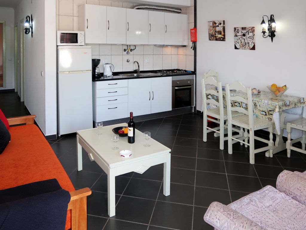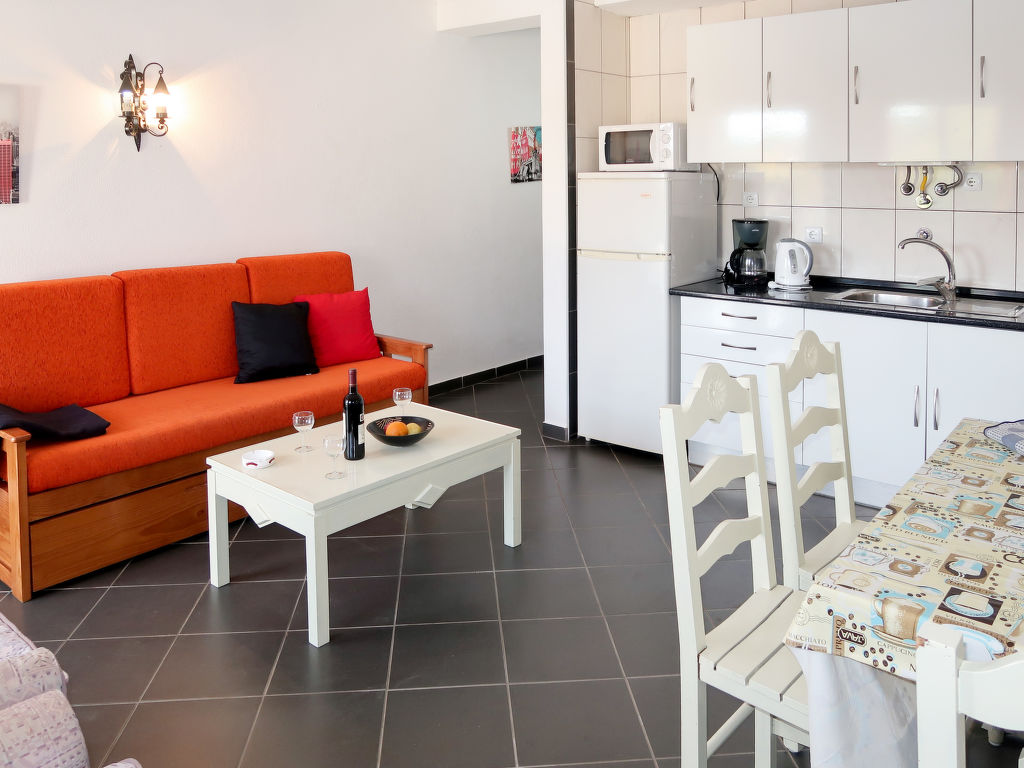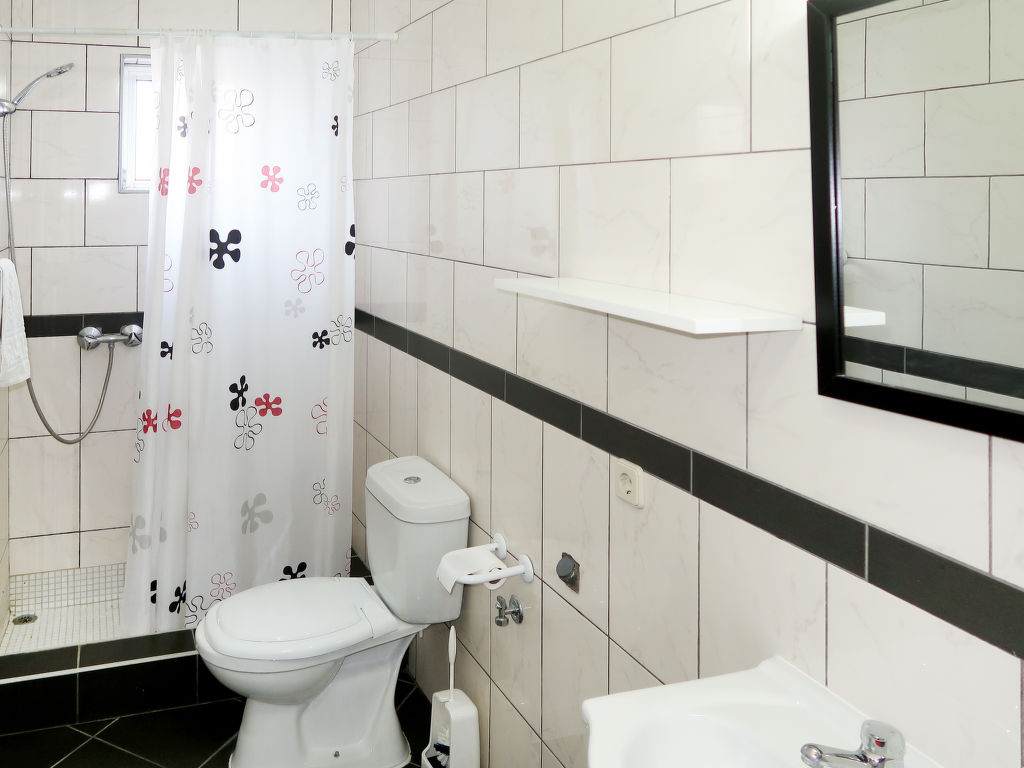 3-Zimmer-Wohnung, Erdgeschoss, ca. 45 m². Eingang über Terrasse in Wohn-/Schlafraum mit Bettcouch, Essplatz, Küchenzeile oder zum Wohnraum offene Küche (4 Flammen, Backofen, Kühl-/Gefrierkombination, Kaffeemaschine, Toaster). Schlafzimmer mit franz. Bett. Zweibettzimmer. Bad/WC oder Dusche/WC. 80678/AL