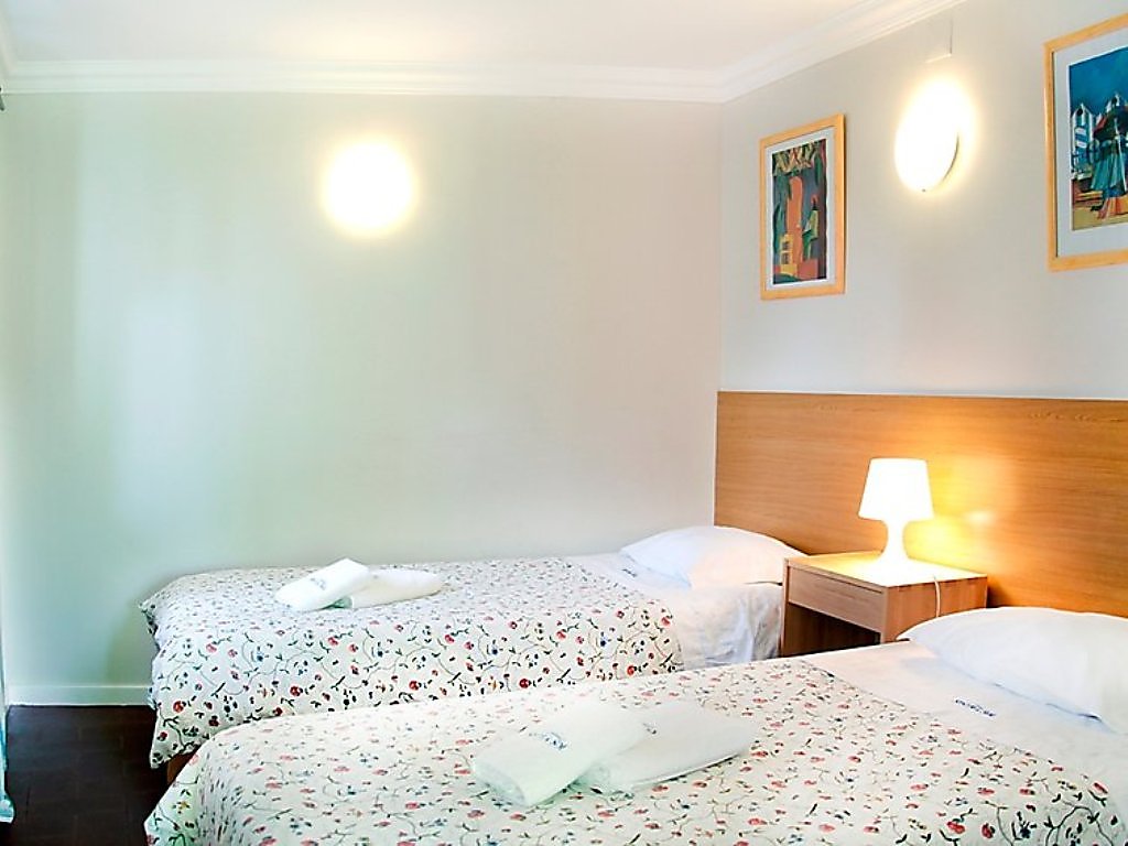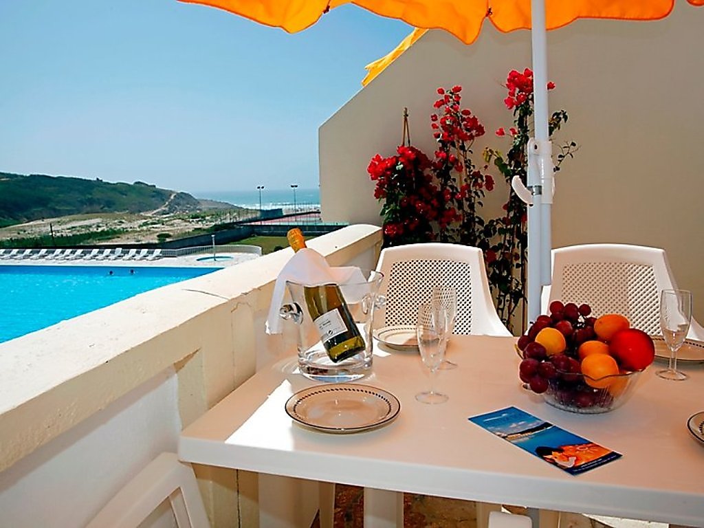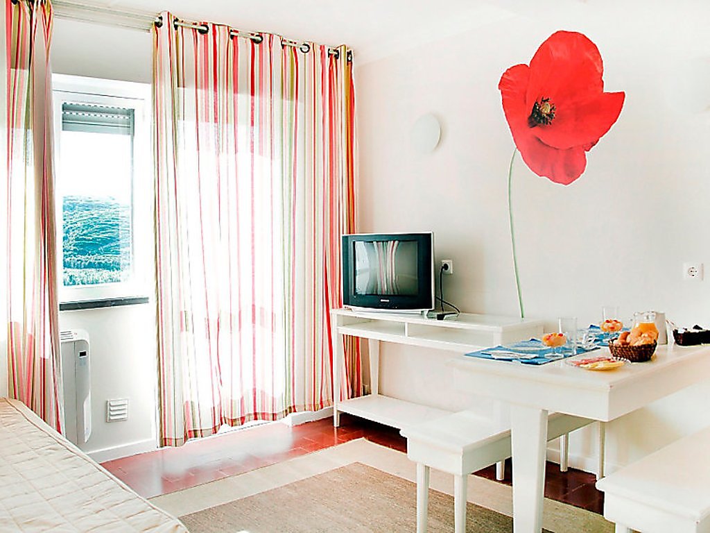 3-Zimmer-Wohnung "Sintra Sol T2 4 adults + 1child", für 5 Personen, 55 m2, im Erdgeschoss, einfach und gemütlich eingerichtet. Wohn-/Esszimmer mit Sat-TV und Esstisch. Rauchen nicht erlaubt. Internet (Wireless LAN [WLAN]). 1 Normalbett. Schlafzimmer mit 1 Doppelbett. Schlafzimmer mit 2 Normalbetten. Kochnische mit 2 - Platten Herd, Mikrowelle, Esstisch und Kühlschrank. Verpflegungsmöglichkeiten: Frühstück (extra). Dusche/WC. Balkon, Gartensitzplatz, Terrassenmöbel, 2 Liegestühle. Weitere Ausstattung. RNET-1493
