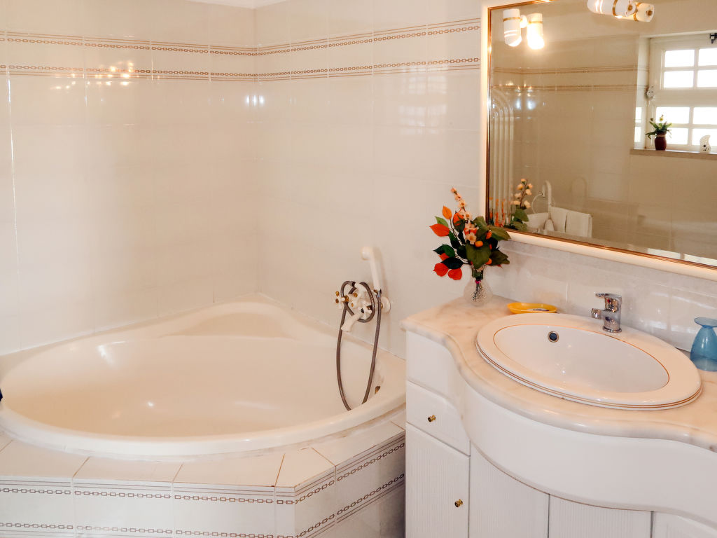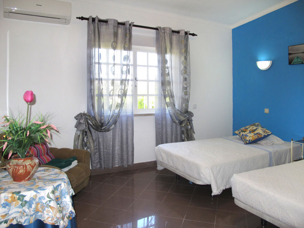 Das Ferienhaus mit Panoramablick liegt im Ortsteil Moinho do Leitão, 1,1 km vom Dorf Cerca Velha und 2,2 km von Paderne entfernt. Nächste Einkaufsmöglichkeit 1,5 km. Supermarkt 2,2 km. Restaurant 1,2 km. Zum Sandstrand in Albufeira 15 km. Freizeitpark Krazy World 14,5 km. Zufahrt ca. 250 m über schmale Straße. Parkmöglichkeiten auf dem Grundstück. Das Ferienhaus steht auf einem ca. 800 m² großen, abgeschlossenen, terrassierten Grundstück. Einfahrtstor. Pool (7,50 x 3,50 m, gesamte Saison geöffnet) mit umlaufender Poolterrasse, 6 Sonnenliegen, 2 Sonnenschirmen. Außendusche. Überdachte Terrasse mit Gartenmobiliar, gemauerter Grill. Dachterrasse. Freundliche, ansprechende Einrichtung in hellen Farben. Fliesenboden. Sat-TV (deutsche Programme). Internetzugang (WLAN, inklusive). Abstellraum mit Waschmaschine, Bügeleisen/-brett. Safe. Klimaanlage mit Kühl-/Heizfunktion in zwei Schlafzimmern. Elektroradiator im Wohnraum und im dritten Schlafzimmer. Heizung nicht in allen Räumen. Hinweis: Rauchen ist im Haus nicht gestattet.