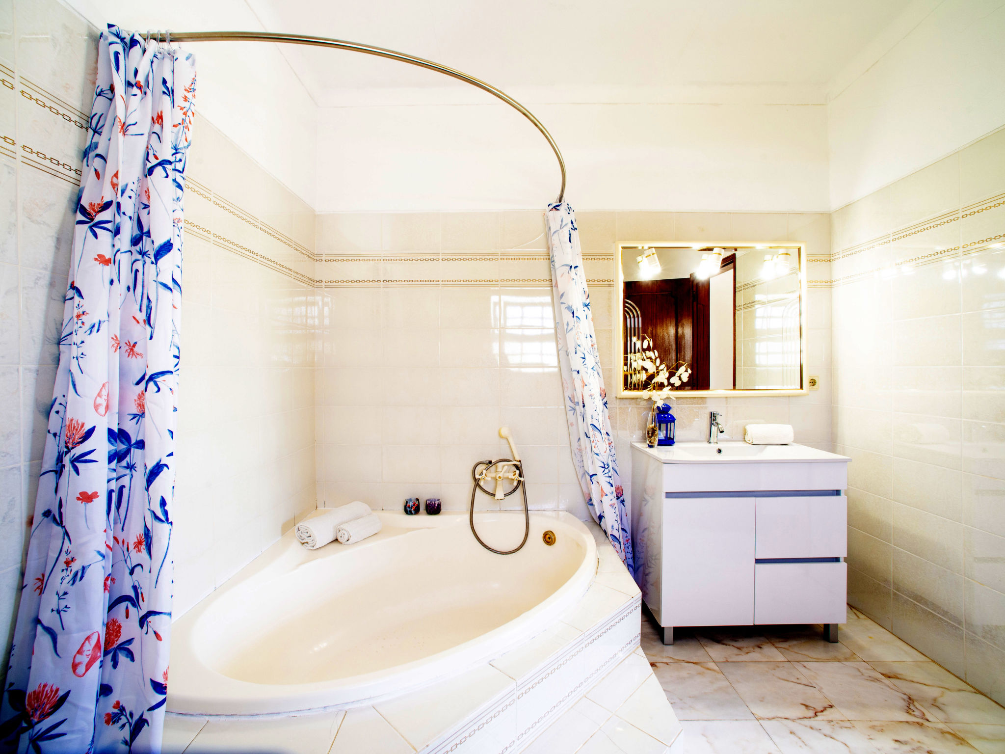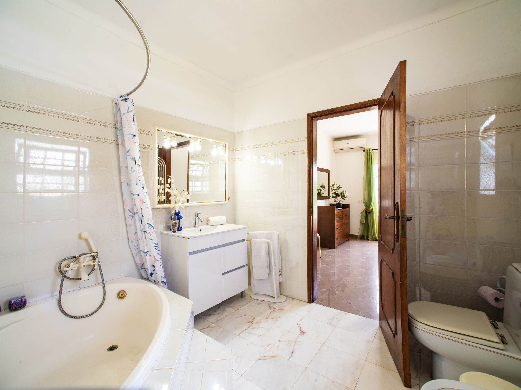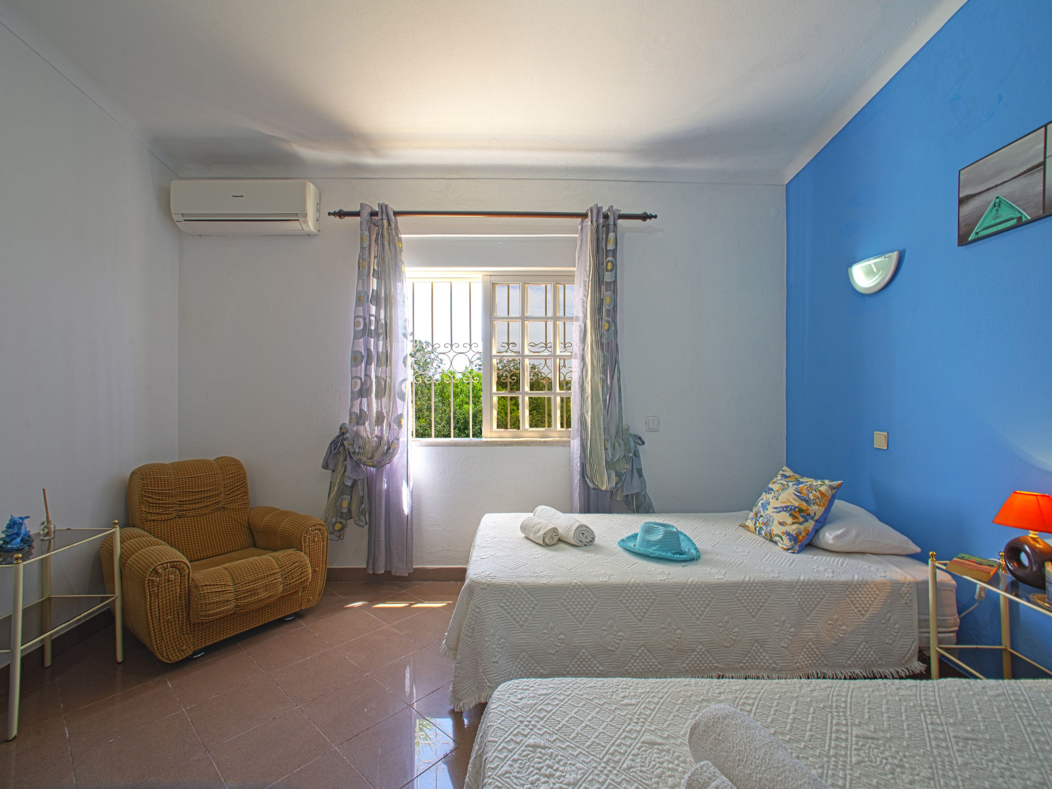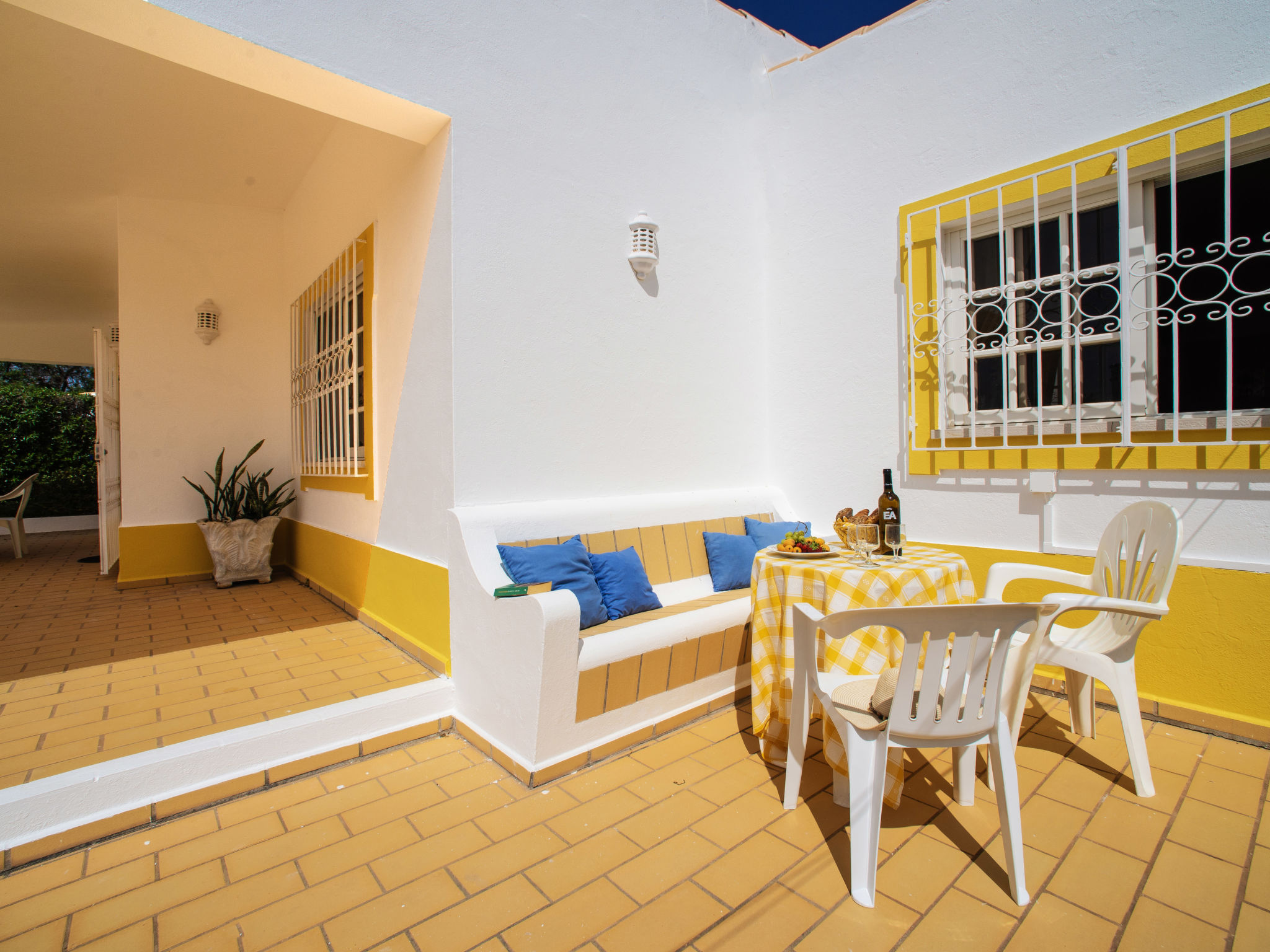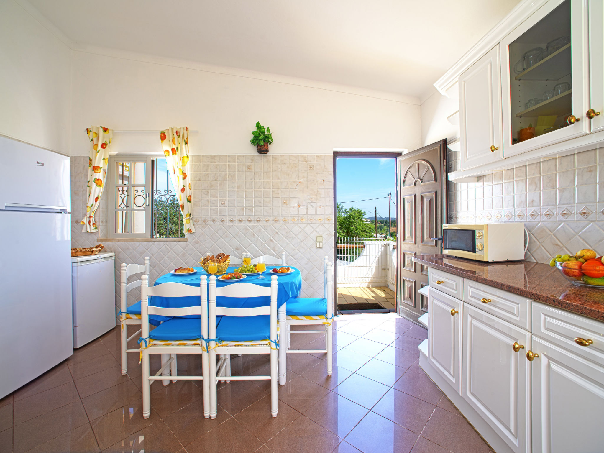 Das Ferienhaus mit Panoramablick liegt im Ortsteil Moinho do Leitão, 1,1 km vom Dorf Cerca Velha und 2,2 km von Paderne entfernt. Nächste Einkaufsmöglichkeit 1,5 km. Supermarkt 2,2 km. Restaurant 1,2 km. Zum Sandstrand in Albufeira 15 km. Freizeitpark Krazy World 14,5 km. Zufahrt ca. 250 m über schmale Straße. Parkmöglichkeiten auf dem Grundstück. Das Ferienhaus steht auf einem ca. 800 m² großen, abgeschlossenen, terrassierten Grundstück. Einfahrtstor. Pool (7,50 x 3,50 m, gesamte Saison geöffnet) mit umlaufender Poolterrasse, 6 Sonnenliegen, 2 Sonnenschirmen. Außendusche. Überdachte Terrasse mit Gartenmobiliar, gemauerter Grill. Dachterrasse. Freundliche, ansprechende Einrichtung in hellen Farben. Fliesenboden. Sat-TV (deutsche Programme). Internetzugang (WLAN, inklusive). Abstellraum mit Waschmaschine, Bügeleisen/-brett. Safe. Klimaanlage mit Kühl-/Heizfunktion in zwei Schlafzimmern. Elektroradiator im Wohnraum und im dritten Schlafzimmer. Heizung nicht in allen Räumen. Hinweis: Rauchen ist im Haus nicht gestattet.