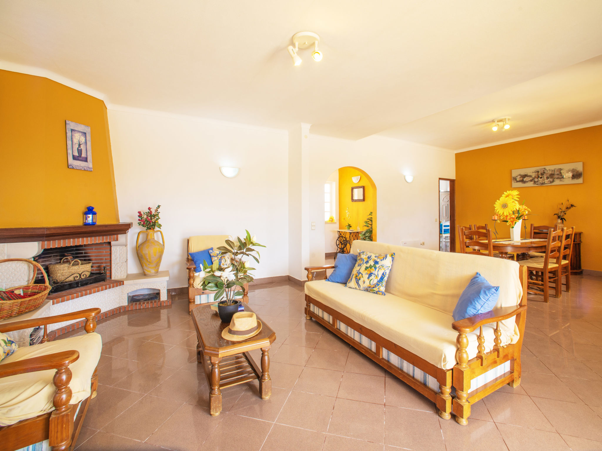 4-Zimmer-Haus, ca. 130 m². Wohnraum mit Sitzgruppe, Kamin, Essplatz, Terrassenausgang. Küche (4 Flammen, Backofen, Mikrowelle, Geschirrspüler, Kühl-/Gefrierkombination, Kaffeemaschine, Wasserkocher, Toaster) mit Essplatz für 5 Personen. Schlafzimmer mit franz. Bett (1,60 m breit), Bad/WC, Gartenausgang. 2 Zweibettzimmer. Bad/WC. 62856/AL