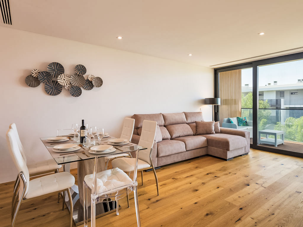 "Resort Villa Nature T1", 2-Zimmer-Wohnung 78 m2. Geräumig und hell, sehr komfortabel und modern eingerichtet: 1 Zimmer 17 m2 mit 1 franz. Bett (150 cm, Länge 190 cm), Klimaanlage, Warmluftheizung und elektrischem Rollladen. Ausgang zum Balkon. Offene Küche (Backofen, Geschirrspüler, 4 Induktionskochplatten, Mikrowelle, Tiefkühler, elektrische Kaffeemaschine, Kapseln für die Kaffeemaschine (Dolce Gusto)) mit Esstisch, TV, Internationale TV-Sender, Flachbildschirm, Klimaanlage, Warmluftheizung und elektrischem Rollladen. Ausgang zum Balkon. Sitzbad/WC. Terrassenmöbel. Sehr schöne Sicht auf das Schwimmbad, den Garten und die Landschaft. Zur Verfügung: Waschmaschine, Wäschetrockner, Bügeleisen, Kinderhochstuhl, Babybett bis 2 Jahre, Haartrockner. Internet (Wireless LAN). Bitte beachten: geeignet für Familien. Nichtraucher-Haus. 77238/AL