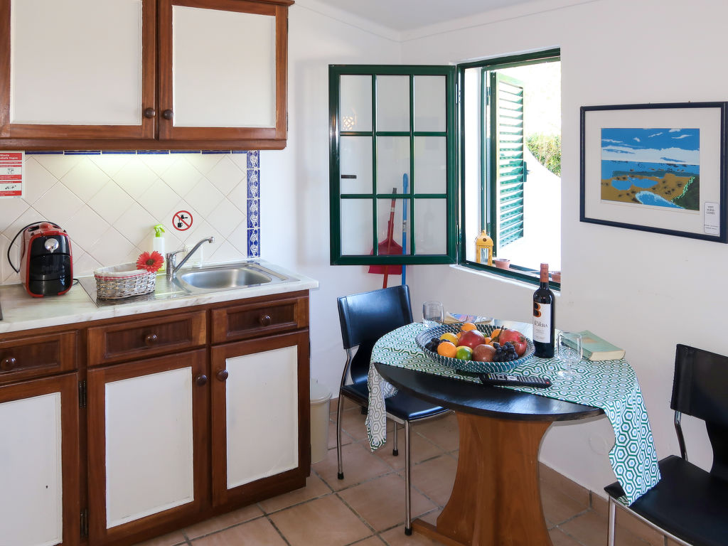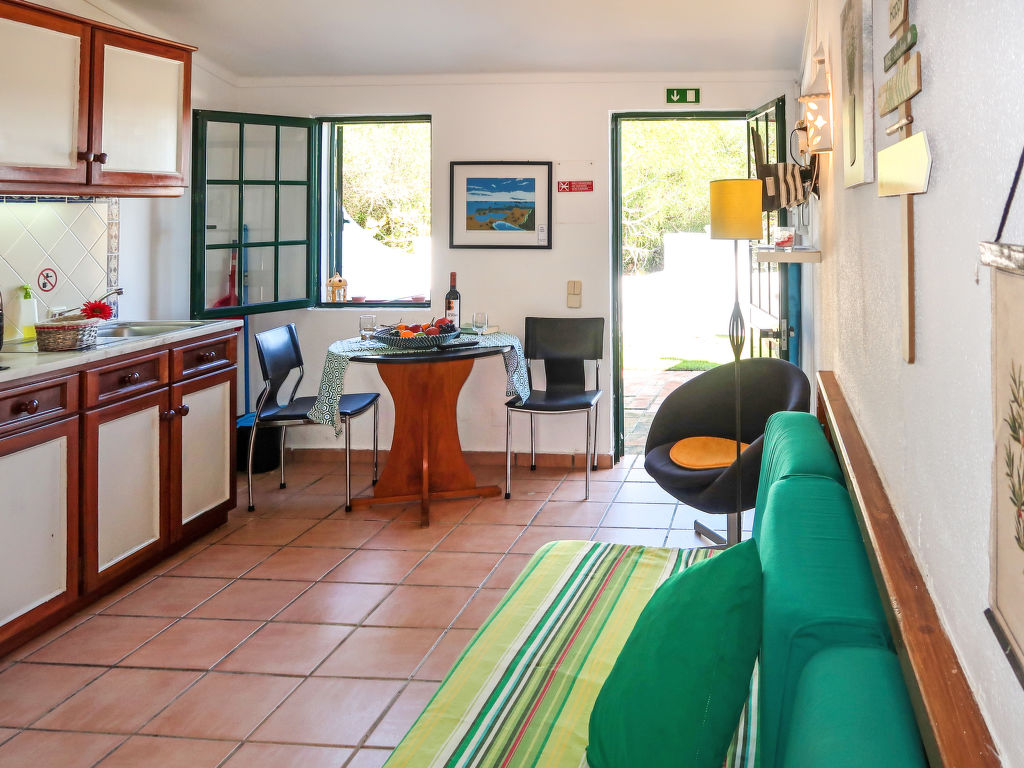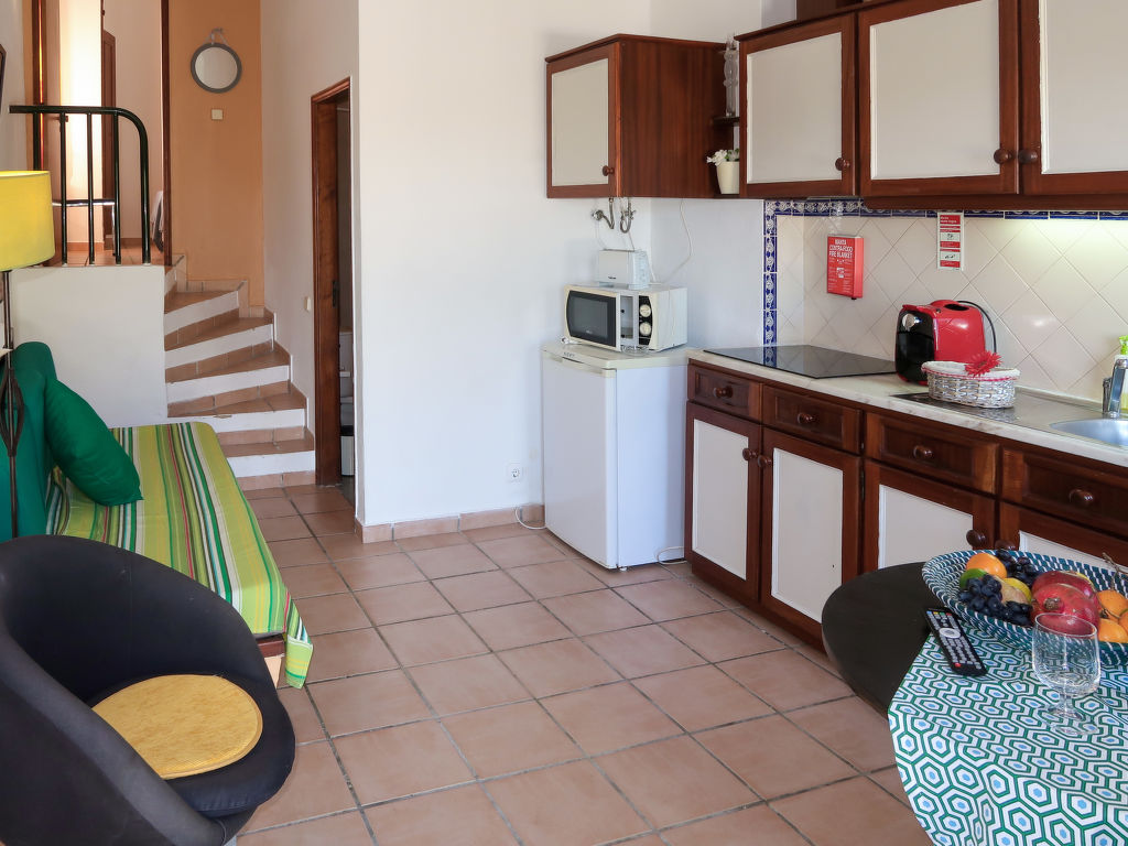 "Quinta da Murteira (FUZ103)", 2-Zimmer-Bungalow 26 m2. Zweckmässig und rustikal eingerichtet: Wohn-/Schlafzimmer mit 1 Diwanbett (98 cm, Länge 185 cm), Sat-TV. 1 Zimmer mit 2 Betten. Offene Küche (4 Glaskeramikherd Platten, Toaster, Mikrowelle, elektrische Kaffeemaschine) mit Esstisch. Sitzbad/WC. E-Heizung, Klimaanlage. Heizung nicht in allen Räumen. Terrasse. Terrassenmöbel, Liegestühle (2). Zur Verfügung: Fliegengitter, Kinderhochstuhl, Babybett. Internet (Wireless LAN, gratis). Bitte beachten: Nichtraucher-Unterkunft. 2049/AL