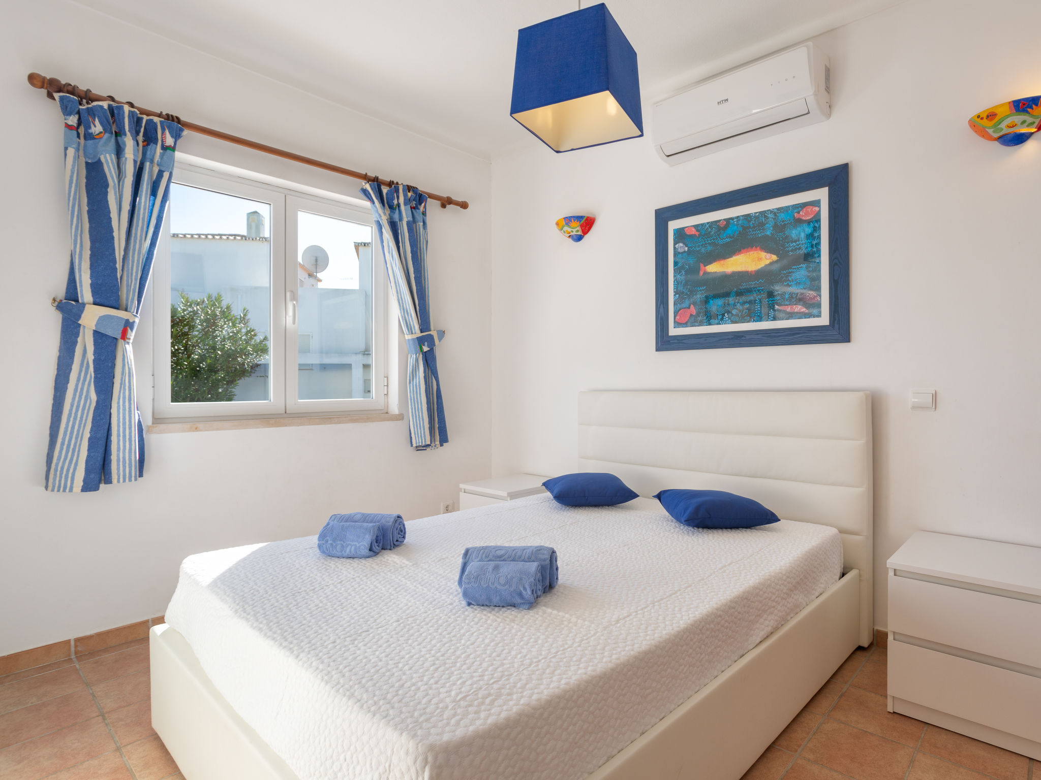 "Villa Blue Ocean", 5-Zimmer-Villa 140 m2 auf 2 Stockwerken. Objekt geeignet für. Geräumig und hell, sehr zweckmässig und gemütlich eingerichtet: offener Salon mit Esstisch, TV, Internationale TV-Sender und Flachbildschirm. Ausgang zur Terrasse, zum Schwimmbad. 1 Zimmer mit 2 Betten (90 cm, Länge 200 cm), Klimaanlage und Warmluftheizung. 1 Zimmer mit 1 franz. Bett (140 cm, Länge 190 cm), Klimaanlage und Warmluftheizung. Offene Küche (4 Kochplatten, Backofen, Geschirrspüler, Mikrowelle, Tiefkühler, elektrische Kaffeemaschine). Dusche/WC, Sitzbad/WC. Obergeschoss: 1 Zimmer mit 1 franz. Bett (140 cm, Länge 190 cm), Dusche/WC und Klimaanlage. 1 Zimmer mit 1 franz. Bett (140 cm, Länge 190 cm), Dusche/WC, Klimaanlage und Warmluftheizung. Ausgang zum Balkon. Terrassenmöbel, Liegestühle. Sehr schöne Sicht auf das Meer. Zur Verfügung: Waschmaschine, Safe, Kinderhochstuhl, Babybett bis 2 Jahre. Internet (Wireless LAN). Parkplatz beim Haus. Bitte beachten: geeignet für Familien. Feuerlöscher. 57710/AL