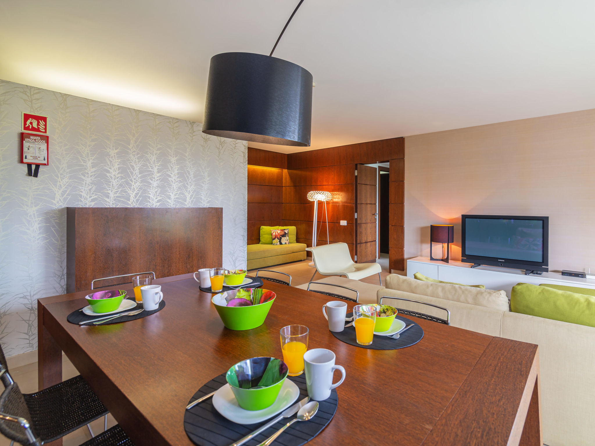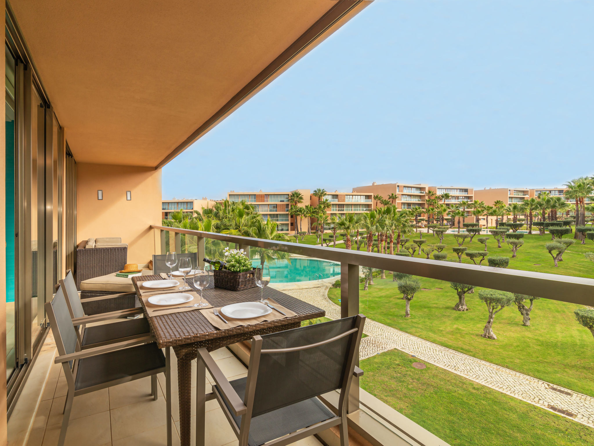 "Salgados Beach & Golf", 3-Zimmer-Wohnung 100 m2 im 2. Stock. Geräumig und hell, sehr komfortabel und gemütlich eingerichtet: offenes Wohn-/Esszimmer mit TV, Internationale TV-Sender und Flachbildschirm. Ausgang zum Balkon. 1 Zimmer mit 1 franz. Bett (160 cm, Länge 200 cm), Sitzbad/WC, Doppelwaschbecken, Klimaanlage und Warmluftheizung. Ausgang zum Balkon. 1 Zimmer mit 3 Betten (90 cm, Länge 190 cm), Klimaanlage und Warmluftheizung. Ausgang zum Balkon. Wohnküche (Backofen, Geschirrspüler, 4 Glaskeramikherd Platten, Toaster, Mikrowelle, Tiefkühler, elektrische Kaffeemaschine) mit Klimaanlage und Warmluftheizung. Ausgang zum Balkon. Bad/Dusche, sep. WC. Terrassenmöbel. Schöne Sicht auf das Schwimmbad. Zur Verfügung: Waschmaschine, Wäschetrockner, Kinderhochstuhl, Babybett bis 2 Jahre. Internet (Wireless LAN). Garage Nr. 12 2A. Bitte beachten: geeignet für Familien. Nichtraucher-Unterkunft. Feuerlöscher. 62751/AL