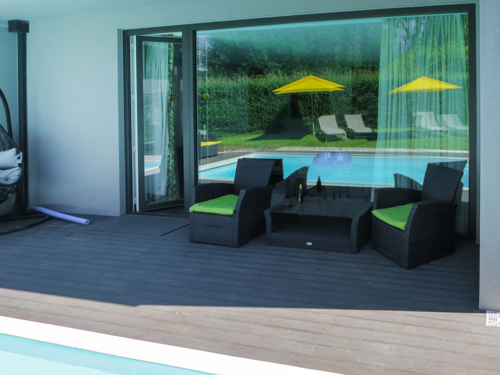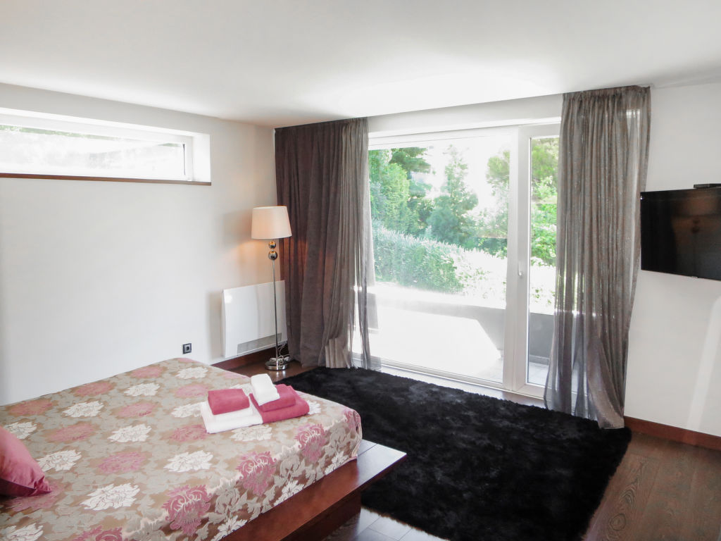 "Dois", 6-Zimmer-Haus 280 m2 auf 3 Stockwerken. Hell, sehr modern und stilvoll eingerichtet: Wohn-/Esszimmer mit offenem Kamin, Esstisch, Kabel-TV, Radio und Stereoanlage. Ausgang zur Terrasse. Küche (Backofen, Geschirrspüler, 4 Glaskeramikherd Platten, Toaster, Wasserkocher, Mikrowelle, elektrische Kaffeemaschine) mit Esstisch. Ausgang zur Terrasse. Sep. WC. Solarheizung. Obergeschoss: (geländerlose Treppe) 1 Zimmer mit begehbarer Kleiderschrank mit (180 cm, Länge 200 cm), Dusche/WC. Ausgang zum Balkon. 1 Zimmer mit (160 cm, Länge 190 cm), Kabel-TV. Ausgang zum Balkon. 2 Zimmer, jedes Zimmer mit 1 franz. Bett (160 cm, Länge 190 cm). Ausgang zum Balkon. Bad/Dusche, Dusche. 2 Balkone 12 m2, Terrasse 20 m2 teilweise überdacht Terrasse 15 m2. Terrassenmöbel, Gartengrill, Liegestühle (4), Abstellkammer. Sicht auf die Berge. Zur Verfügung: Waschmaschine, Bügeleisen, Kinderhochstuhl, Babybett. Internet (Wireless LAN, gratis). Bitte beachten: für Kleinkinder nicht geeignet. Nichtraucher-Unterkunft. Bei Belegung mit weniger Personen als der maximalen Personenzahl stehen nicht alle Schlafzimmer zur Verfügung. 117584/AL
