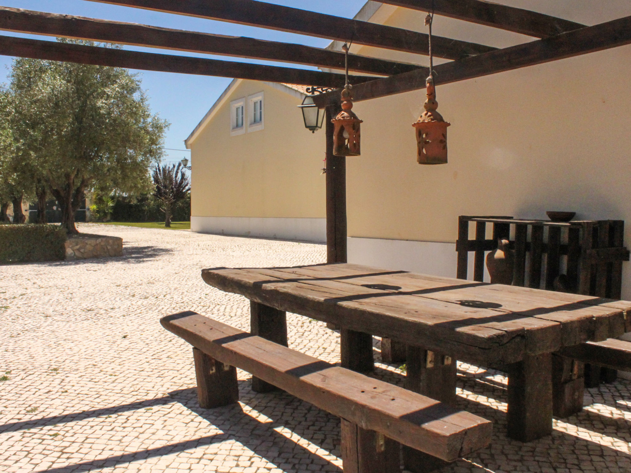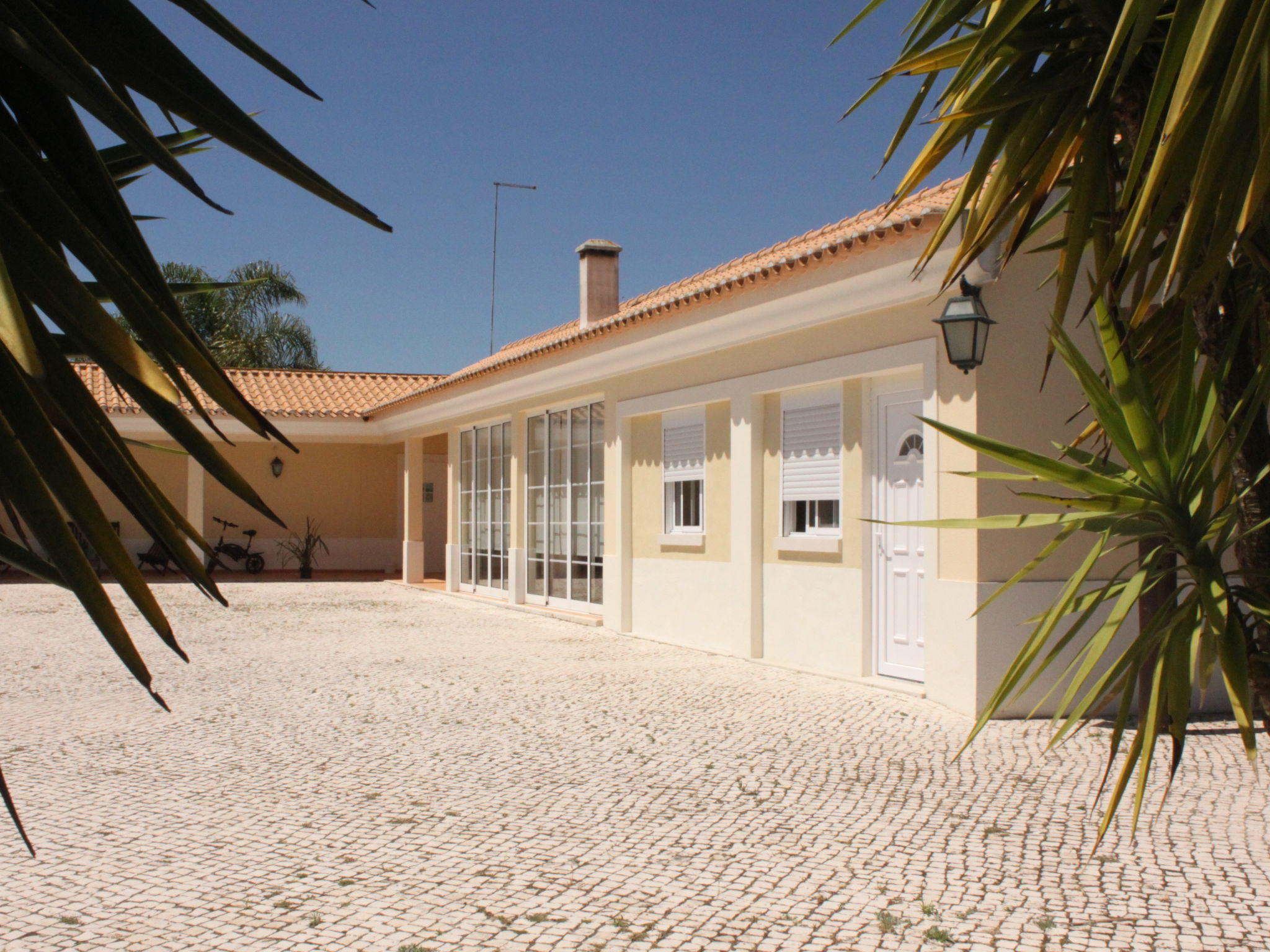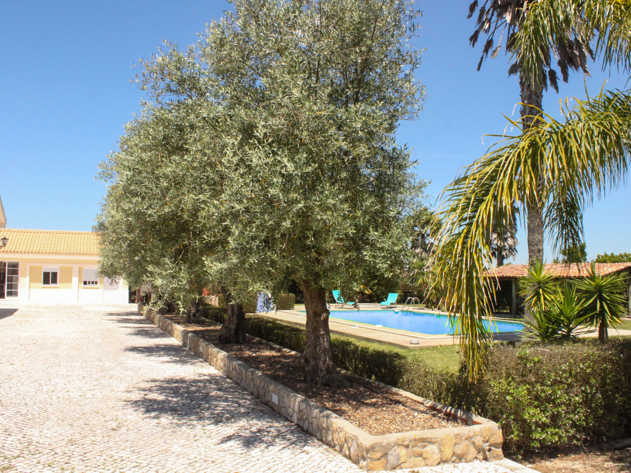 Doppelhaus "Quinta Dahlia". 1 km vom Zentrum von Pegões, am Ortsrand, 12 km vom Zentrum von Vendas Novas, 50 km vom Zentrum von Lissabon. Zur Mitbenutzung: naturbelassenes Grundstück 5'000 m2, Rasen und Bäumen, Hof, Schwimmbad (12 x 6 m, 125 - 200 cm tief, saisonale Verfügbarkeit: 01.Jan.-31.Dez.). Aussendusche, Poolpflege durch den Besitzer/Gärtner. Im Hause: Waschmaschine (zur Mitbenutzung). Parkplatz (für 3 Autos) auf dem Grundstück. Einkaufsgeschäft 1 km, Supermarkt 1.5 km, Sandstrand 37 km, Hallenbad 12 km. Golfplatz (18 Loch) 28 km, Reitstall 15 km. Bitte beachten: Der Besitzer wohnt auf dem gleichen Grundstück.