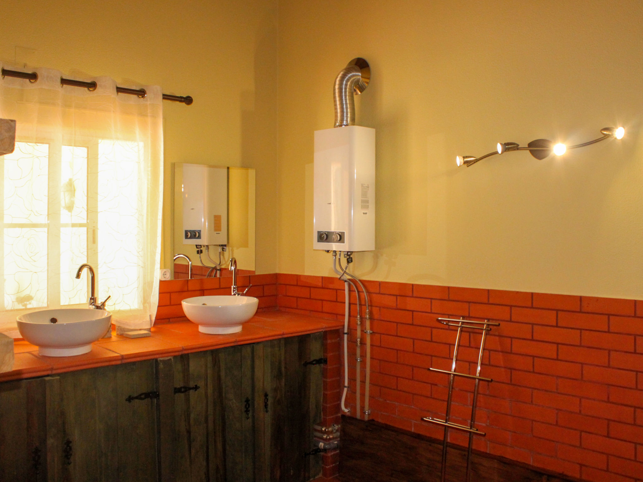 "Quinta Dahlia", 2-Zimmer-Doppelhaushälfte 110 m2. Zweckmässig und rustikal eingerichtet: Durchgangszimmer mit 1 franz. Bett. Abgeschrägte kleine Galerie mit 2 Betten. Wohnküche (Backofen, Geschirrspüler, 4 Glaskeramikherd Platten, Toaster, Wasserkocher, Mikrowelle, Tiefkühler, elektrische Kaffeemaschine, Pizzaofen) mit Schwedenofen, Esstisch, Sat-TV und Klimaanlage. Ausgang zur Terrasse. Dusche/WC, Doppelwaschbecken. E-Heizung. Heizung nicht in allen Räumen. Natursteinböden. Terrasse teilweise überdacht Terrasse teilweise überdacht. Gartengrill. Zur Verfügung: Babybett. Internet (Wireless LAN, gratis).