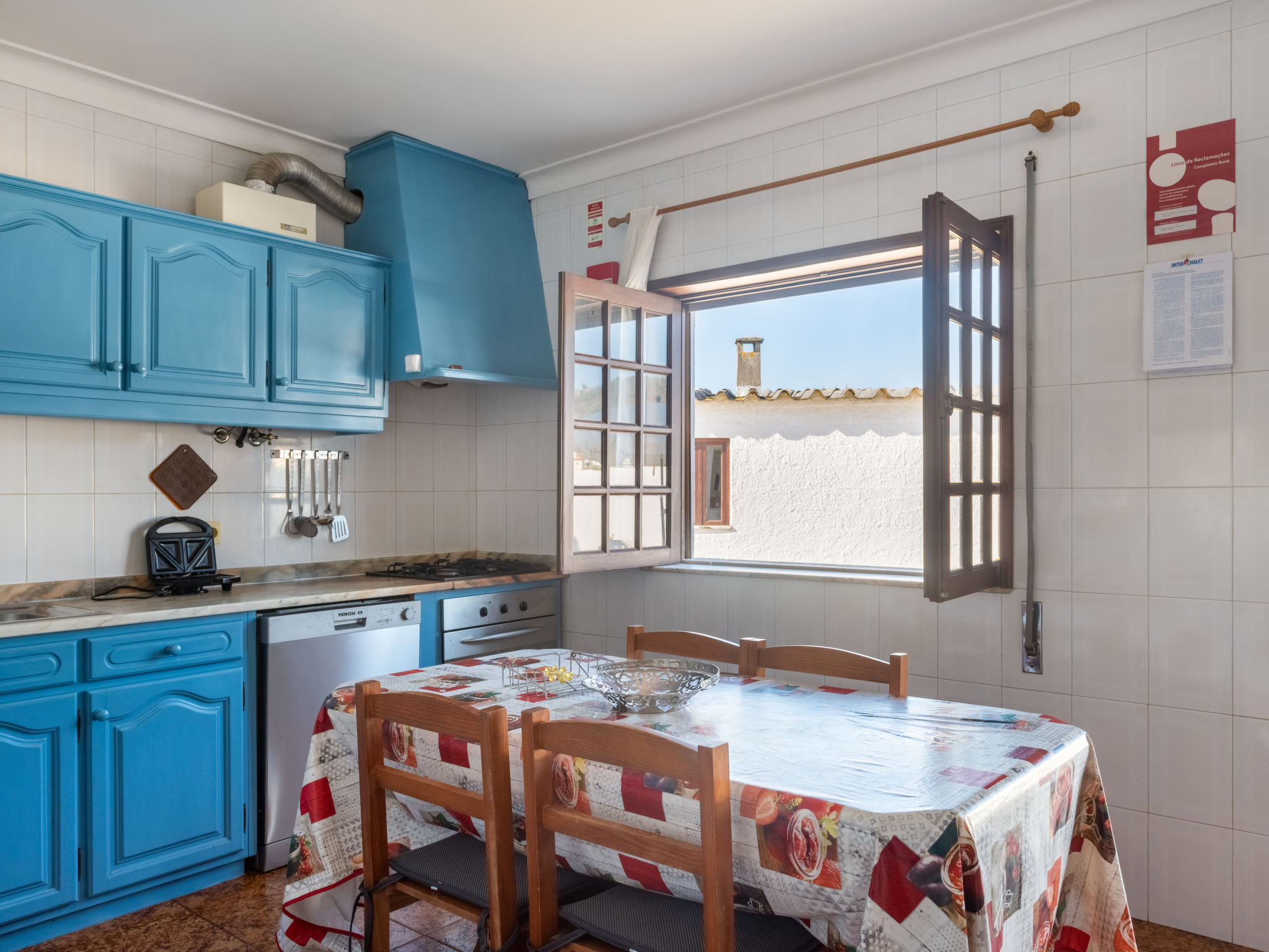 "Marta (ESP110)", 6-Zimmer-Haus 150 m2 auf 2 Stockwerken. Zweckmässig und stilvoll eingerichtet: Wohn-/Esszimmer mit offenem Kamin, Esstisch, Sat-TV und G-Heizofen. 1 Zimmer mit 1 franz. Bett (150 cm). 1 Zimmer mit 2 Betten (100 cm, Länge 200 cm). Küche (Backofen, Geschirrspüler, 4 Flammen, Toaster, Mikrowelle, Tiefkühler, elektrische Kaffeemaschine) mit Esstisch. Dusche/WC. Obergeschoss: 2 abgeschrägte Zimmer, jedes Zimmer mit 1 franz. Bett (133 cm, Länge 183 cm). Bad/WC. Heizung nicht in allen Räumen. Balkon, Terrasse. Terrassenmöbel, Gartengrill, Abstellkammer. Zur Verfügung: Waschmaschine, Babybett. Internet (Wireless LAN, gratis). Bei Belegung mit weniger Personen als der maximalen Personenzahl stehen nicht alle Schlafzimmer zur Verfügung. 63977/AL
