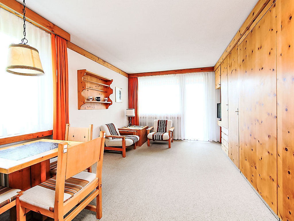 Davos: Appartementhaus "Guardaval (Utoring)". Im Ort, zentrale, ruhige, sonnige Lage am Hang, 300 m vom Skigebiet. Zur Mitbenutzung: Hallenbad. Im Hause: Empfang, Aufenthaltsraum mit TV, Wireless LAN, Sauna (extra). Spielzimmer, Fahrstuhl, Skiraum, Zentralheizung, Waschmaschine (zur Mitbenutzung). Brötchenservice und Getränkeservice. Schmale Zufahrt bis zum Haus. Parkplatz (überdacht, beschränkte Anzahl, extra), Gemeinschaftsgarage (extra). Einkaufsgeschäft, Restaurant, Bushaltestelle 300 m, Bahnstation "Davos Dorf" 400 m, Hallenbad 1 km, Badesee 1 km. Bergbahn, Skisportanlagen, Skipisten, Skischule 300 m, Schlittelbahn 1.5 km, Langlaufloipe, Eisfeld 300 m. Bekannte Skigebiete sind gut erreichbar: Parsenn 300 m, Jakobshorn 1.5 km. Das Appartementhaus befindet sich oberhalb der Talstation der Parsennbahn und verfügt über eine herrliche Aussicht. Parkplatz + Garage (Reservierung bei Ankunft).