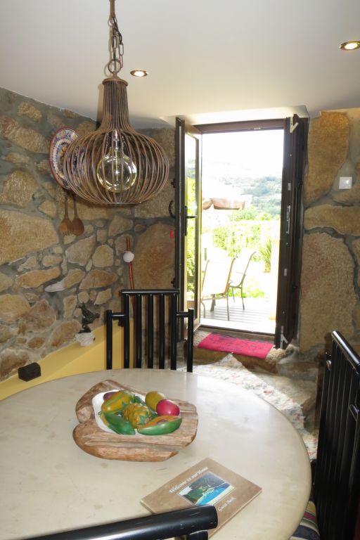 "O Sítio (EDO100)", 4-Zimmer-Haus 100 m2 auf 2 Stockwerken. Schön und gemütlich eingerichtet: Wohnzimmer mit Schwedenofen, TV, Stereoanlage und DVD. Ausgang zur Terrasse. Heizung, Holzheizung. Obergeschoss: (Wendeltreppe) 1 kleines Zimmer, ohne Schrank mit 1 franz. Bett (150 cm, Länge 200 cm). 1 kleines Zimmer, ohne Schrank mit 1 franz. Bett (130 cm, Länge 190 cm). 1 kleines Zimmer, ohne Schrank mit 1 franz. Bett (125 cm, Länge 185 cm). Ausgang zum Garten. Küche (Backofen, Geschirrspüler, 4 Flammen, Toaster, Wasserkocher, Mikrowelle, Tiefkühler, elektrische Kaffeemaschine, Pizzaofen) mit Esstisch. Ausgang zur Terrasse. Dusche/WC. Holzheizung. Heizung nicht in allen Räumen. Holzböden. Terrasse 60 m2, 3 Terrassen, Gartensitzplatz. Terrassenmöbel, Gartengrill, Liegestühle (4), Abstellkammer. Panoramasicht auf den Fluss. Zur Verfügung: Waschmaschine, Bügeleisen, Babybett. Internet (Wireless LAN, gratis).