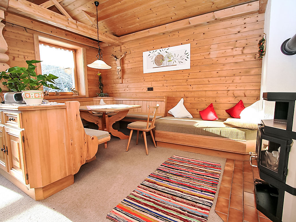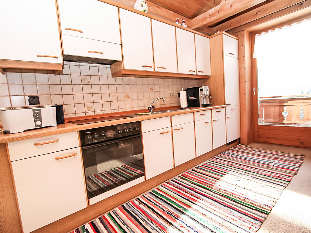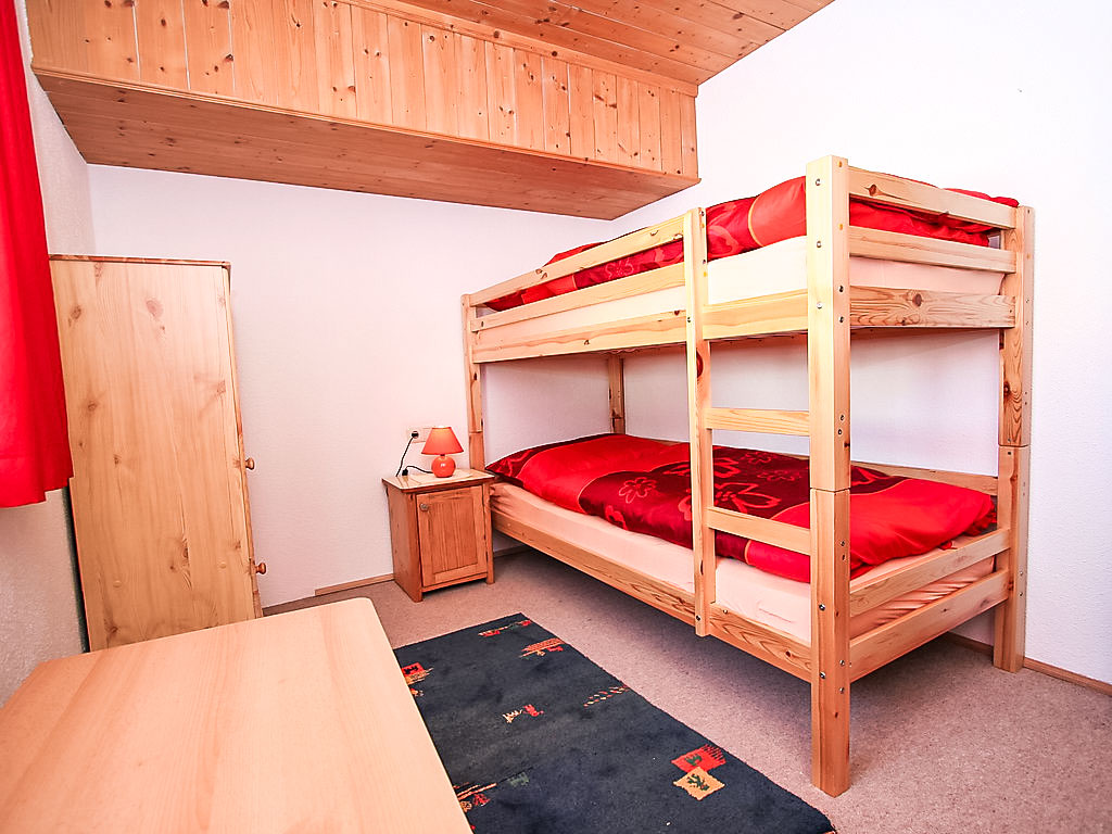 4-Zimmer-Wohnung 90 m2, im Dachgeschoss. Teilweise abgeschrägt, gemütlich eingerichtet: Eingang. 1 Zimmer mit 1 x 2 Etagenbetten. 2 Zimmer, jedes Zimmer mit 1 Bett und 1 Doppelbett. Grosse Wohnküche (Backofen, Geschirrspüler, 4 Glaskeramikherd Platten) mit 1 Diwanbett, Schwedenofen, Essecke und Sat-TV (Flachbildschirm), Radio. Ausgang zum Balkon. Dusche, sep. WC. Grosser Balkon. Balkonmöbel. Herrliche Panoramasicht auf die Berge, das Tal und die Landschaft. Zur Verfügung: Haartrockner. Internet (Wireless LAN, gratis). Geeignet für Familien. Saeco Kaffeevollautomat und Filterkaffeemaschine vorhanden.