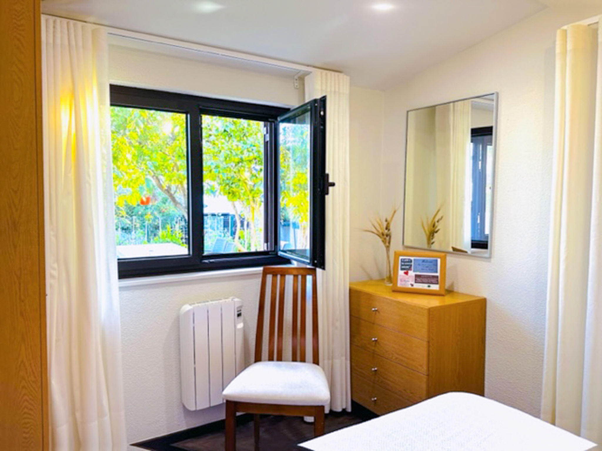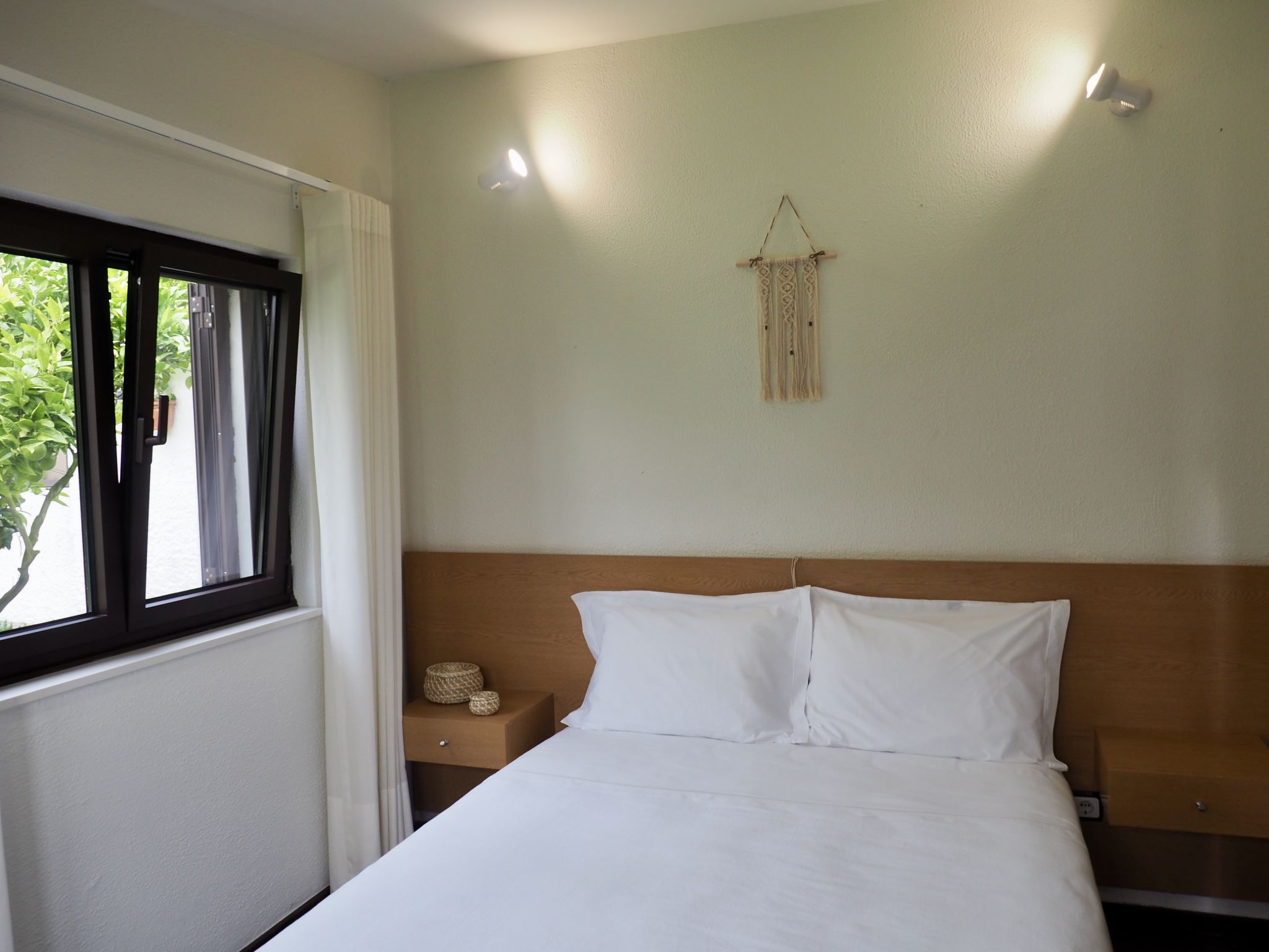 "Lopes (FAO125)", 3-Zimmer-Bungalow 45 m2. Zweckmässig und gemütlich eingerichtet: Wohn-/Esszimmer mit offenem Kamin, Esstisch, Sat-TV, CD, DVD und E-Heizofen. 1 Zimmer mit 1 franz. Bett (145 cm), E-Heizofen. 1 Zimmer mit 1 franz. Bett (150 cm). Offene Küche (Backofen, Geschirrspüler, 4 Flammen, Toaster, Wasserkocher, Mikrowelle, Tiefkühler, elektrische Kaffeemaschine). Ausgang zur Terrasse. Dusche/WC. Holzböden. Terrasse, kleiner Garten 120 m2, Rasen. Terrassenmöbel, Gartengrill, Liegestühle (2). Zur Verfügung: Waschmaschine, Wäschetrockner, Bügeleisen, Kinderhochstuhl, Babybett. Internet (Wireless LAN, gratis). 58323/AL