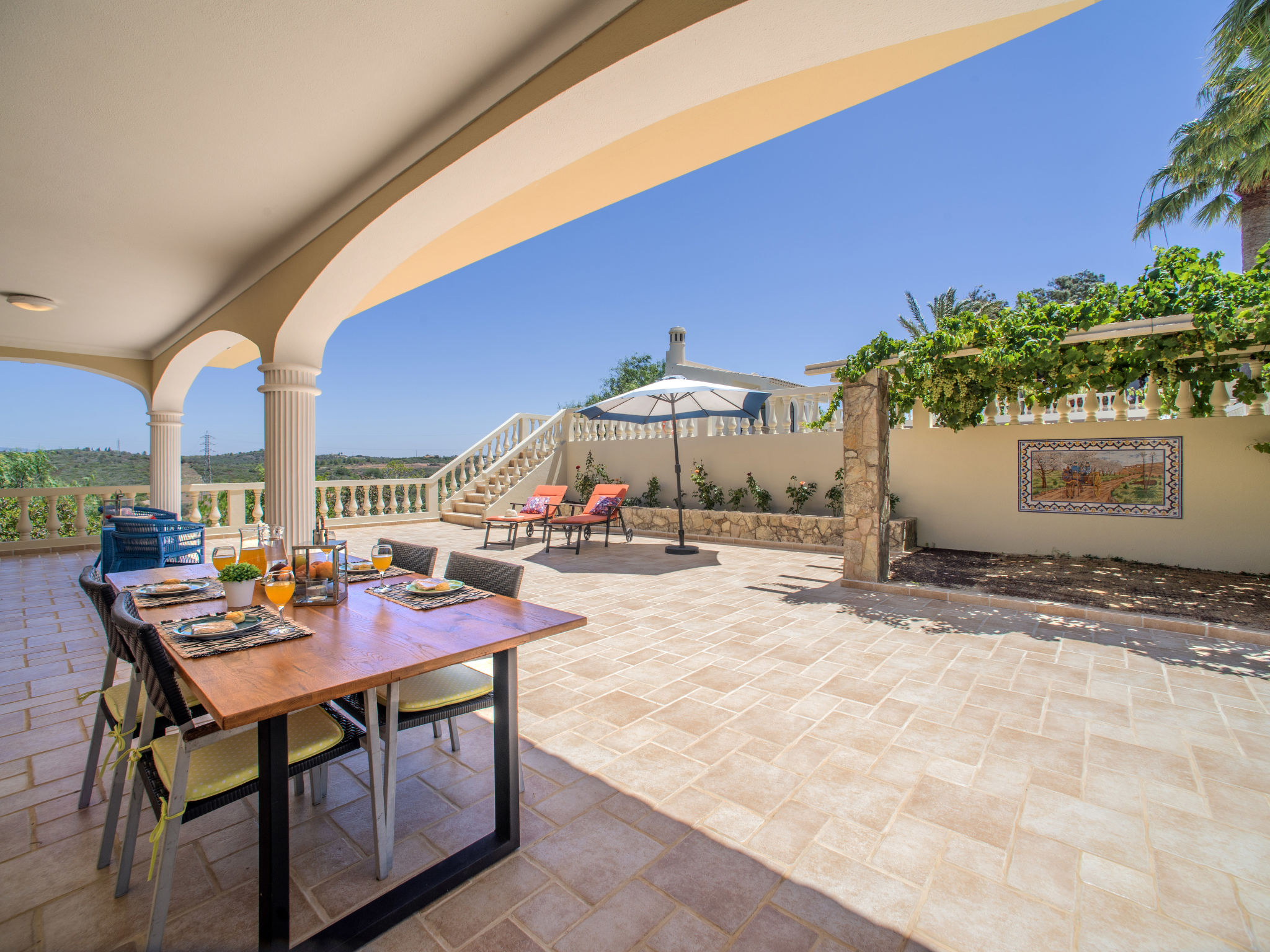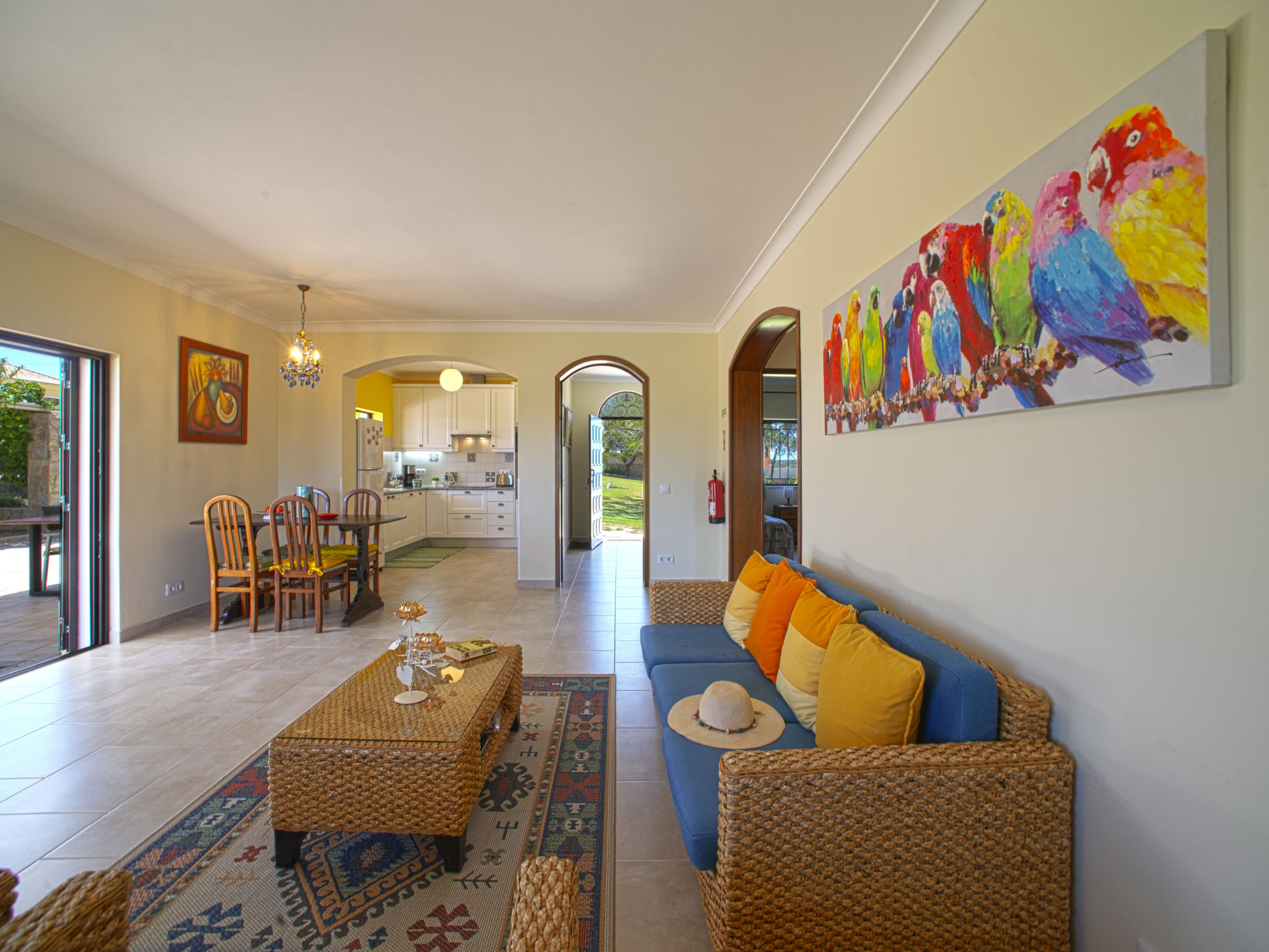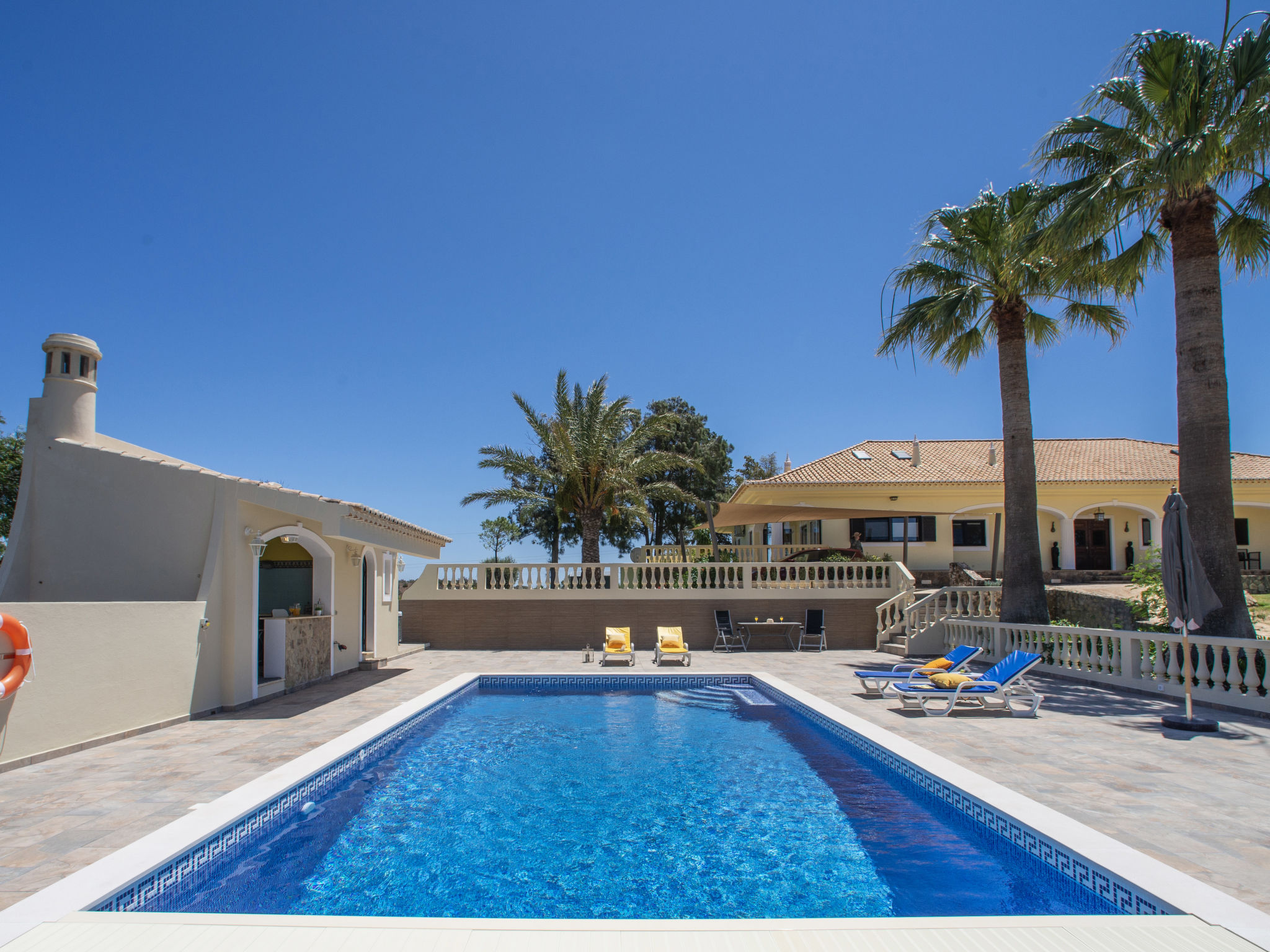 Haus "Quinta do Mosaico", umgeben von Wiesen und Feldern. 4.8 km vom Zentrum von Lagos, am Hang, 5 km vom Meer, im Grünen. Zur Mitbenutzung: Grundstück 16'000 m2, Park, grosser, schöner Garten, Schwimmbad (11 x 5 m, saisonale Verfügbarkeit: 01.Jan.-31.Dez.). WC im Poolbereich, Aussendusche. Zur Alleinbenutzung: Grillhaus, Parkplatz auf dem Grundstück. Einkaufsgeschäft 3 km, Sandstrand "Meia Praia" 5 km. Bitte beachten: Der Besitzer wohnt auf dem gleichen Grundstück.