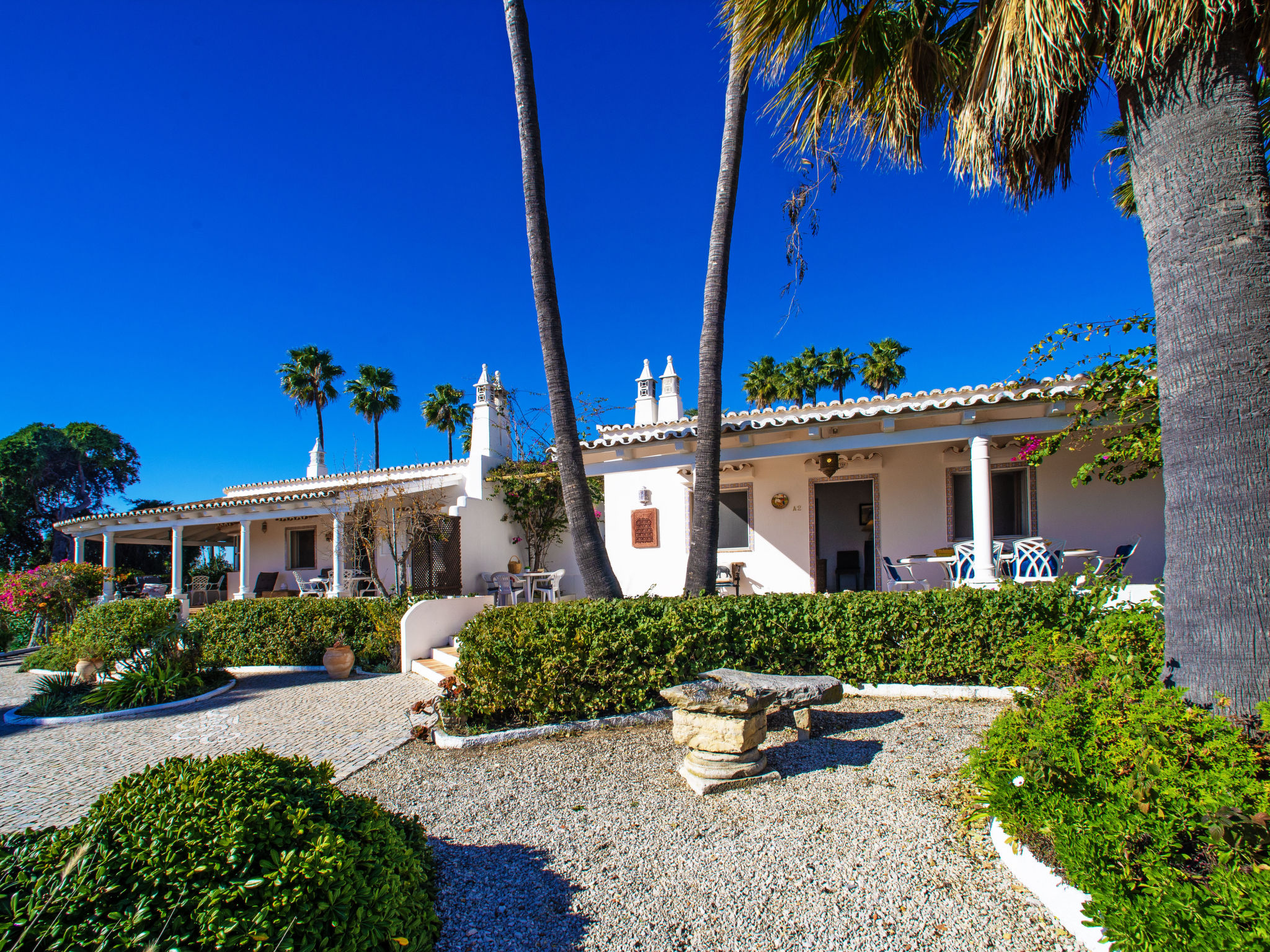 Haus "Luz Romana". 4 Häuser in der Residenz. Im Ortsteil Luz de Tavira, 7 km vom Zentrum von Tavira, am Ortsrand, 300 m von der Lagune. Zur Mitbenutzung: Grundstück 23'000 m2, gepflegter Garten Pflanzen, Obstgarten, Liegewiese, Schwimmbad (100 m2, saisonale Verfügbarkeit: 01.Jan.-31.Dez.) mit Meerwasser. Aussendusche. Im Hause: Waschmaschine (zur Mitbenutzung). Lange Zufahrt (450 m Naturweg). Parkplatz. Einkaufsgeschäft 1 km, Restaurant 1 km, Sandstrand "Praia do Barril" 4 km. Nahe gelegene Sehenswürdigkeiten: Ria Formosa Nature Reserve 5 km. Bitte beachten: Das Foto ist nur ein Hausbeispiel.