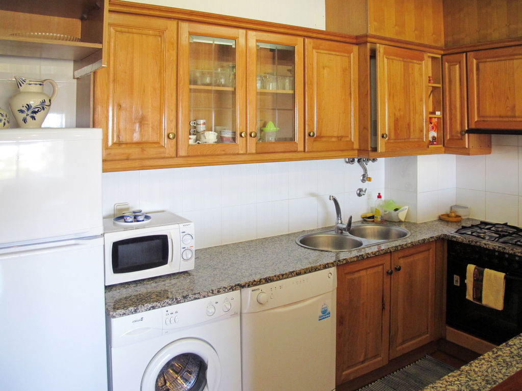 "Agua e Mar 1 (ESP160)", 4-Zimmer-Wohnung 75 m2 im 1. Stock. Objekt geeignet für 5 Erwachsene. Zweckmässig und gemütlich eingerichtet: Wohn-/Esszimmer mit offenem Kamin, Esstisch, TV, Stereoanlage und DVD. Ausgang zum Balkon. 1 Zimmer mit 2 Betten. Ausgang zum Balkon. 1 Zimmer, ohne Fenster mit 1 franz. Bett (125 cm, Länge 185 cm). 1 Zimmer mit 1 franz. Bett. Ausgang zum Balkon. Offene Küche (Backofen, Geschirrspüler, 4 Flammen, Toaster, Mikrowelle, Tiefkühler, elektrische Kaffeemaschine). Bad/WC. G-Heizung. Heizung nicht in allen Räumen. Parkettböden. Balkon 3 m2, Balkon 2 m2. Balkonmöbel. Zur Verfügung: Waschmaschine, Bügeleisen. Bitte beachten: Nichtraucher-Unterkunft.