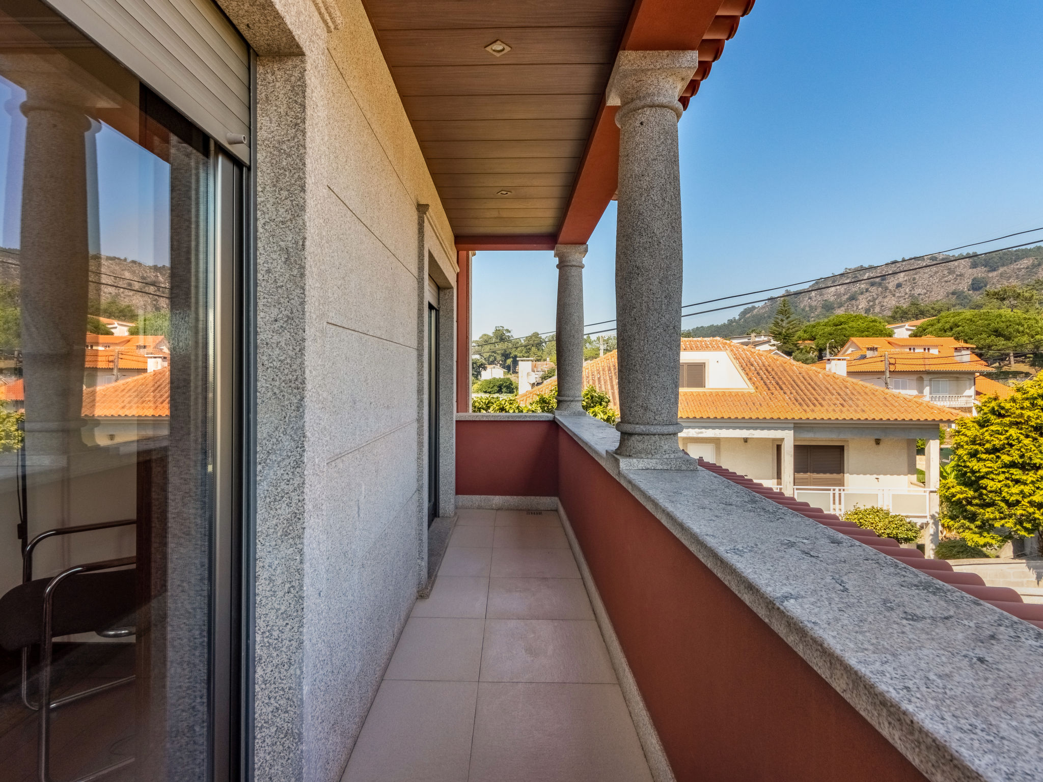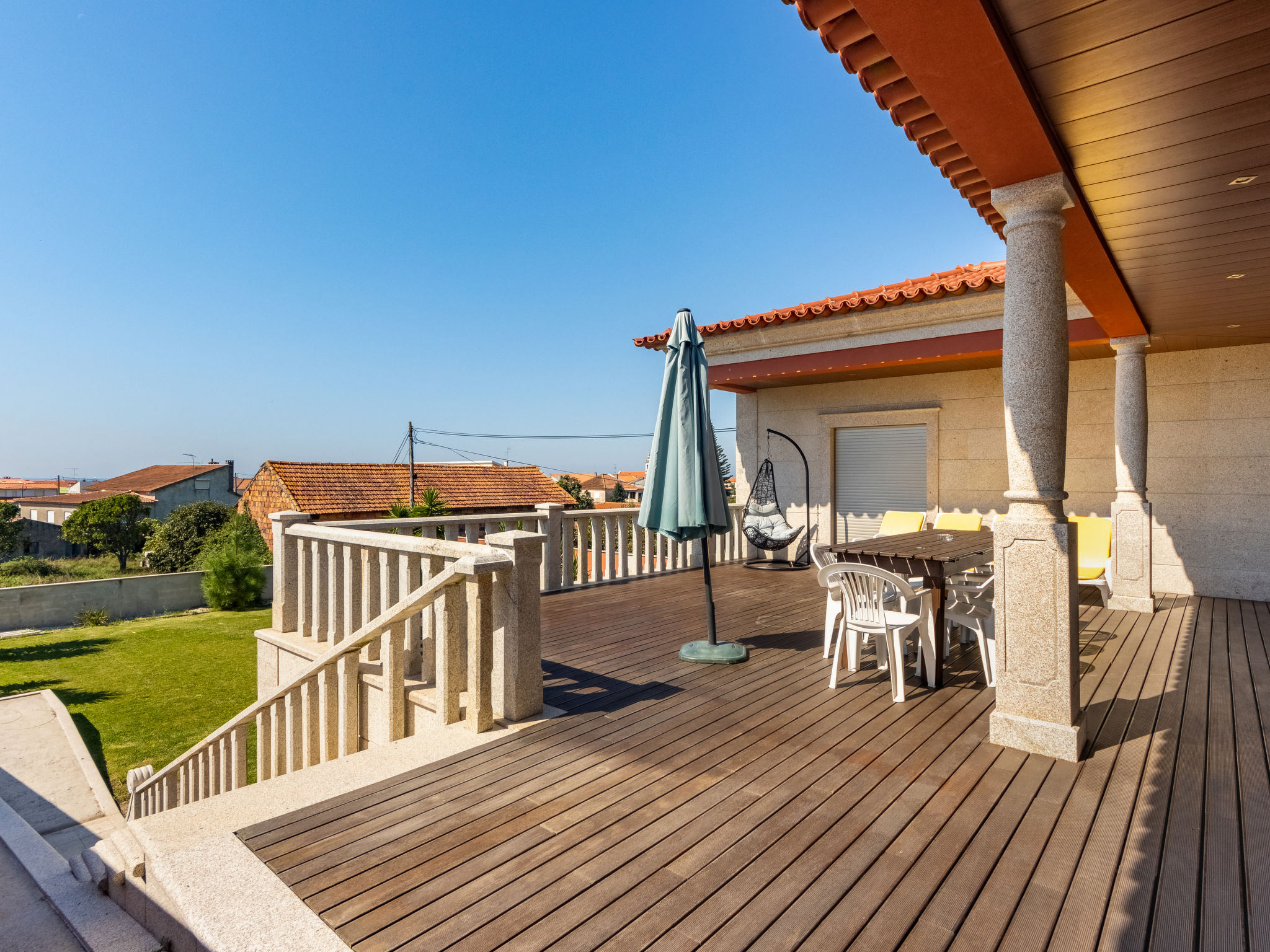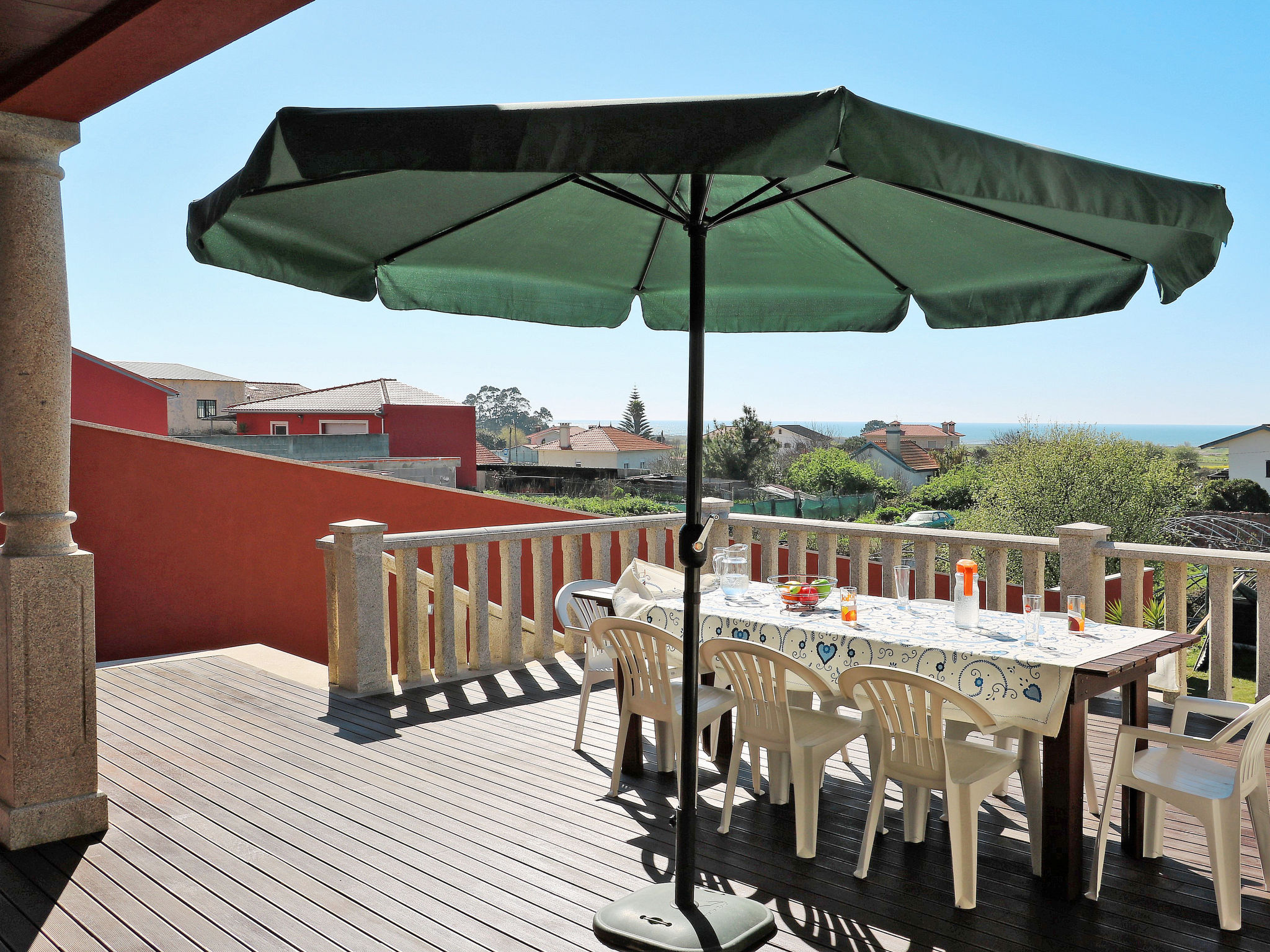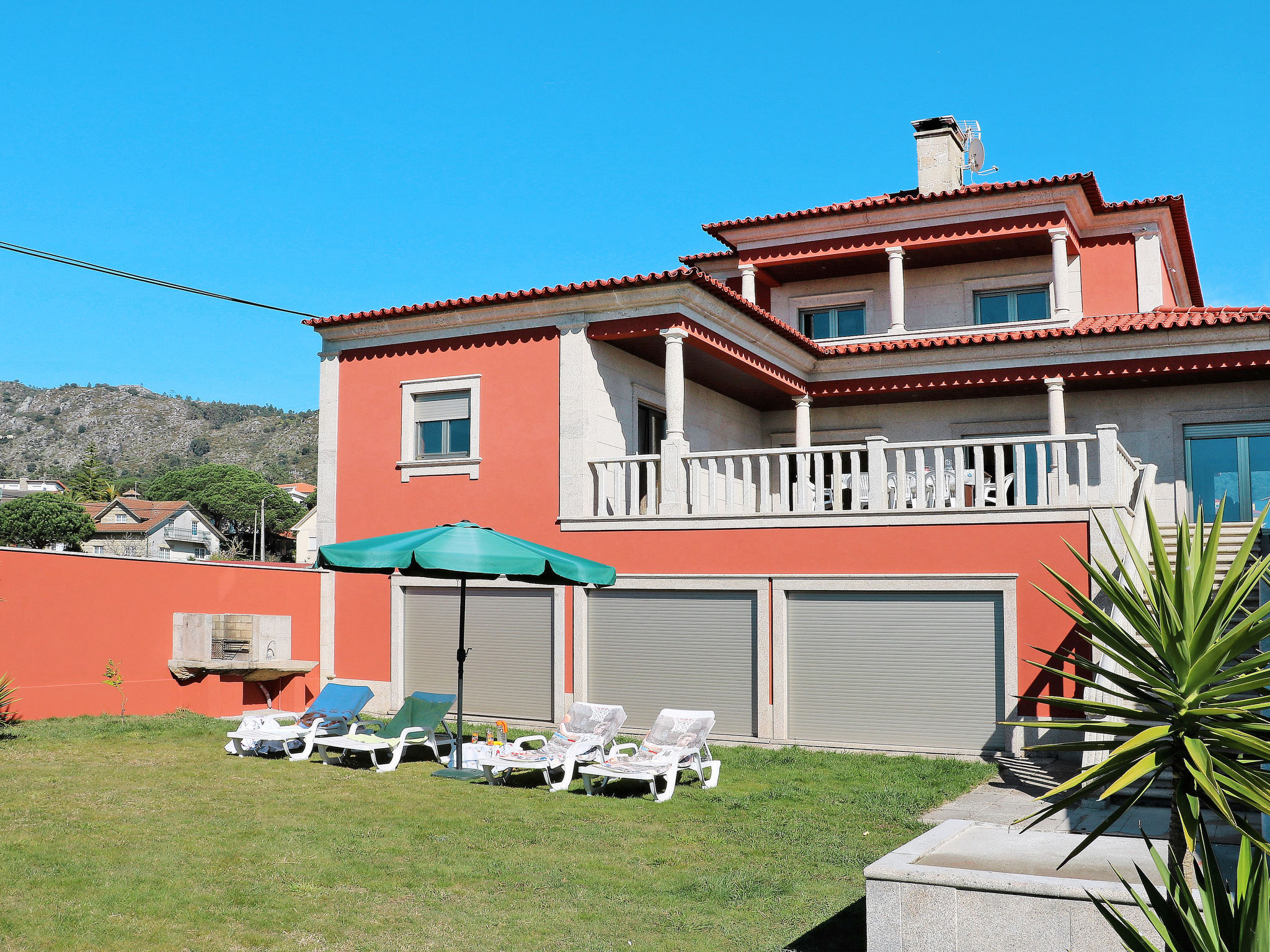 "Vista Mar (ESP188)", 6-Zimmer-Haus 200 m2 auf 2 Stockwerken. Modern und geschmackvoll eingerichtet: Wohn-/Esszimmer mit offenem Kamin, Esstisch, Sat-TV, CD und DVD. Ausgang zur Terrasse. 1 Zimmer mit 1 franz. Bett (150 cm), Dusche/WC. Ausgang zum Garten. Küche (Backofen, Geschirrspüler, 4 Glaskeramikherd Platten, Mikrowelle, Tiefkühler, elektrische Kaffeemaschine) mit Esstisch. Ausgang zum Garten. Dusche/WC. Obergeschoss: 2 Zimmer, jedes Zimmer mit 2 Betten. Ausgang zum Balkon. 1 Zimmer mit 1 franz. Bett (160 cm), Dusche/WC. 1 Zimmer mit 1 franz. Bett (150 cm). Ausgang zum Balkon. Bad/WC, Whirlbadewanne. Fussbodenheizung. Heizung nicht in allen Räumen. Holzböden. 2 Balkone, Terrasse 40 m2 teilweise überdacht. Terrassenmöbel, Gartengrill, Liegestühle (5), Abstellkammer. Schöne Sicht auf das Meer. Zur Verfügung: Waschmaschine, Bügeleisen. Internet (Wireless LAN, gratis). Bei Belegung mit weniger Personen als der maximalen Personenzahl stehen nicht alle Schlafzimmer zur Verfügung. 99527/AL