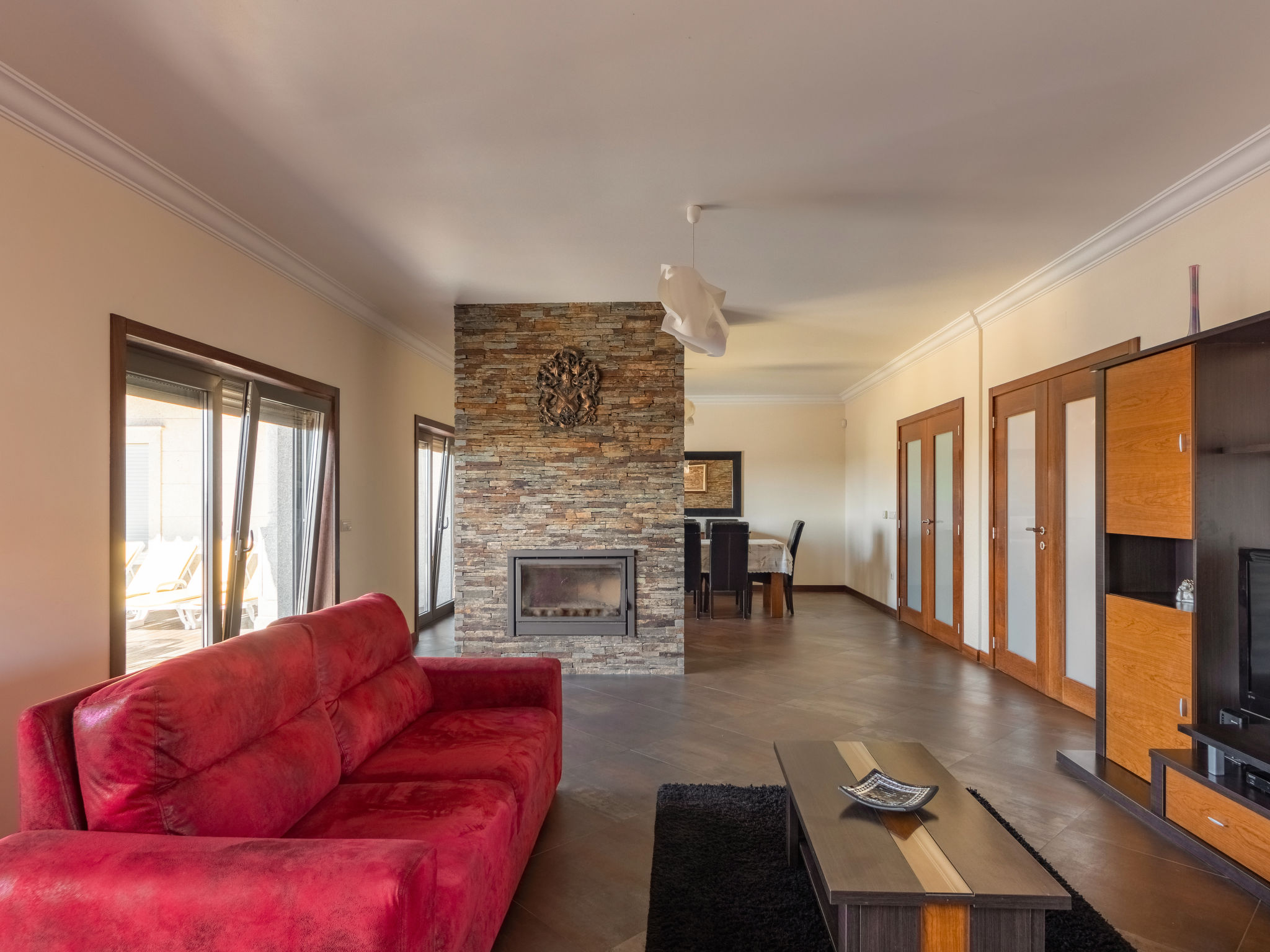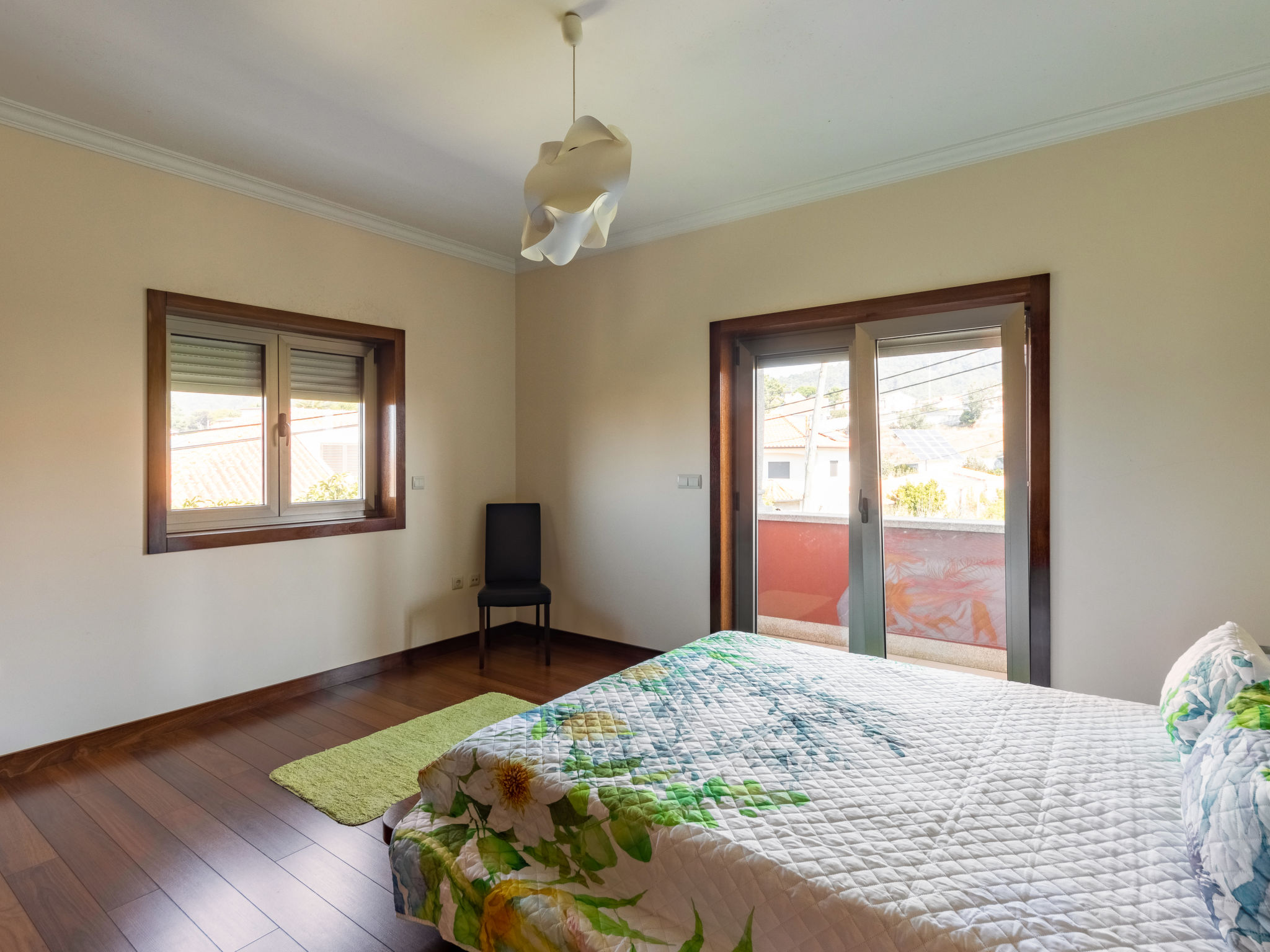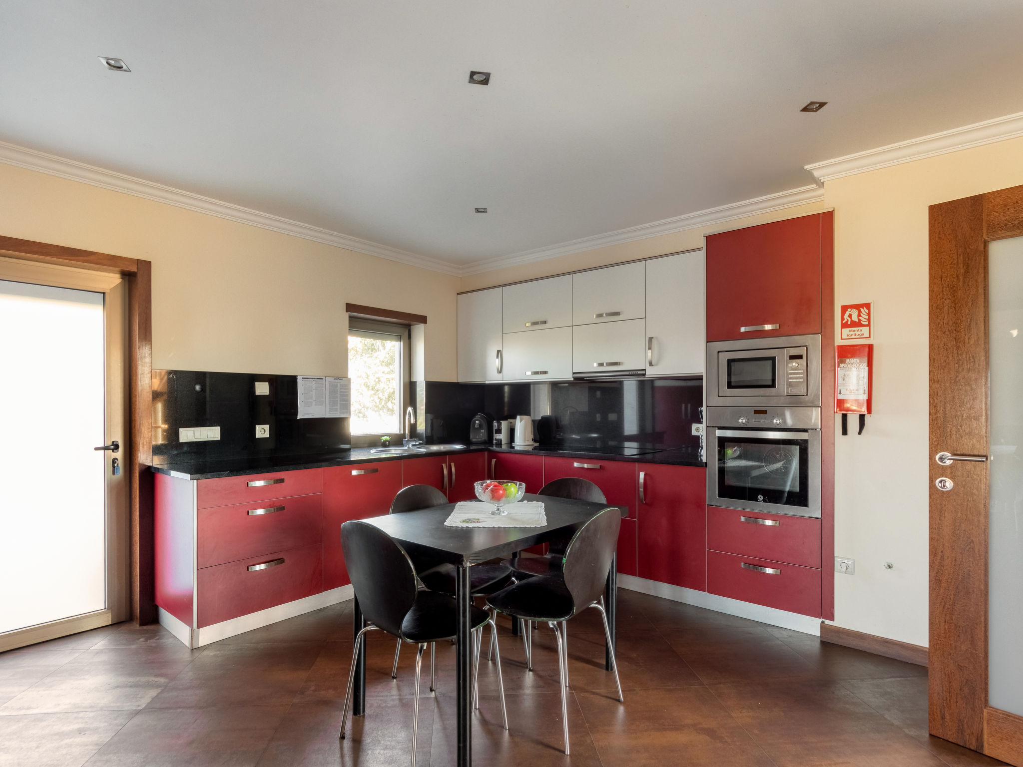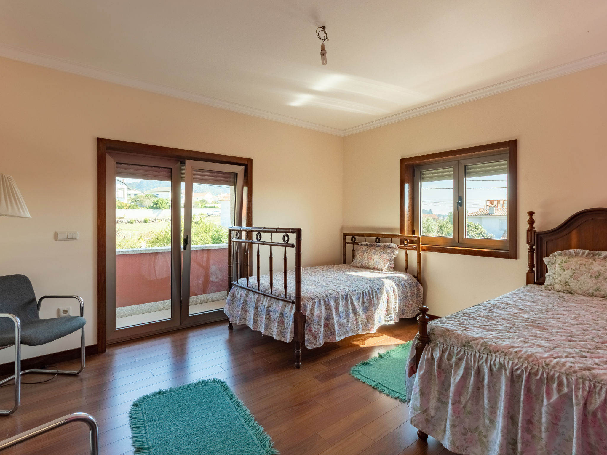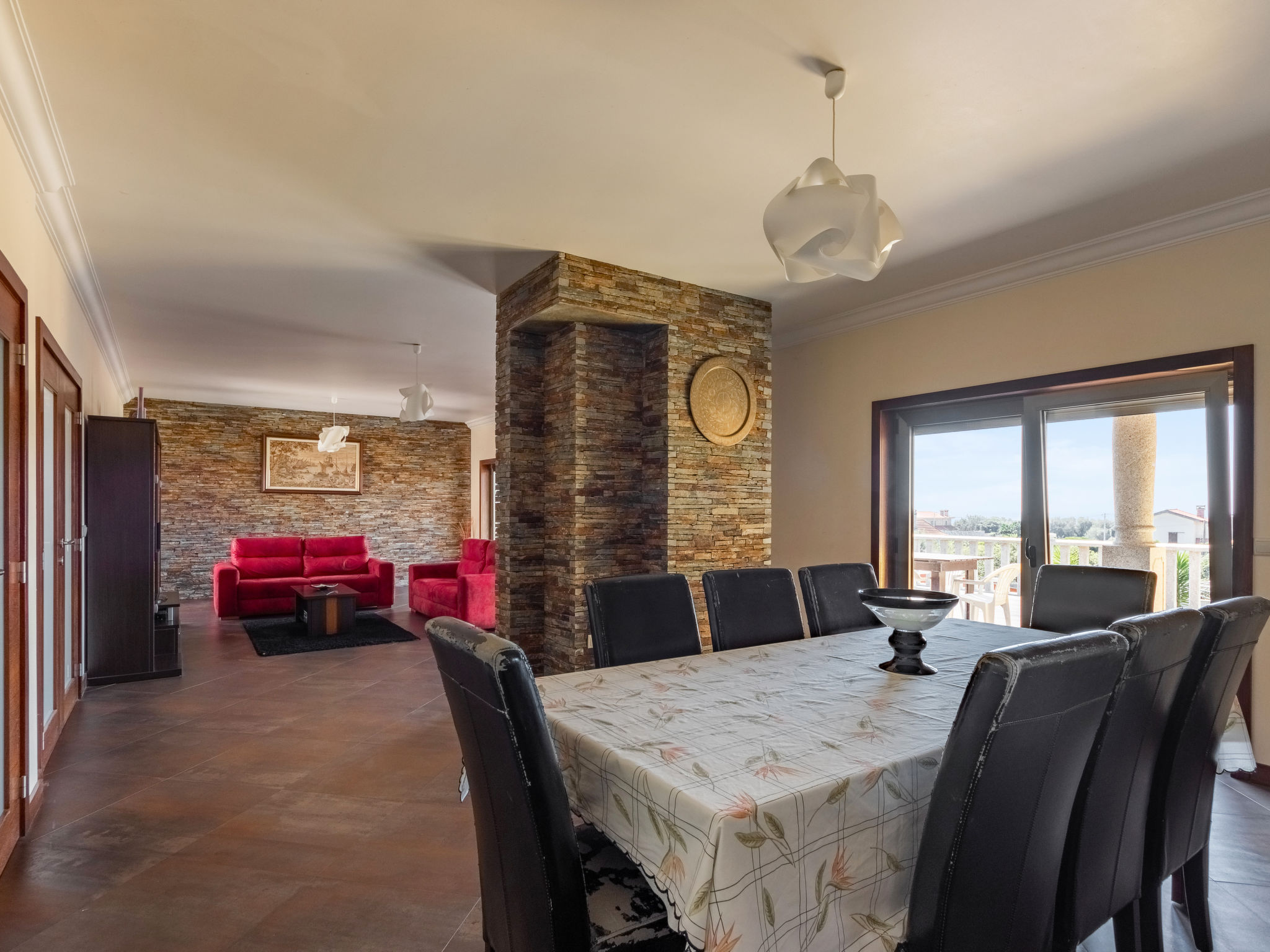 "Vista Mar (ESP188)", 6-Zimmer-Haus 200 m2 auf 2 Stockwerken. Modern und geschmackvoll eingerichtet: Wohn-/Esszimmer mit offenem Kamin, Esstisch, Sat-TV, CD und DVD. Ausgang zur Terrasse. 1 Zimmer mit 1 franz. Bett (150 cm), Dusche/WC. Ausgang zum Garten. Küche (Backofen, Geschirrspüler, 4 Glaskeramikherd Platten, Mikrowelle, Tiefkühler, elektrische Kaffeemaschine) mit Esstisch. Ausgang zum Garten. Dusche/WC. Obergeschoss: 2 Zimmer, jedes Zimmer mit 2 Betten. Ausgang zum Balkon. 1 Zimmer mit 1 franz. Bett (160 cm), Dusche/WC. 1 Zimmer mit 1 franz. Bett (150 cm). Ausgang zum Balkon. Bad/WC, Whirlbadewanne. Fussbodenheizung. Heizung nicht in allen Räumen. Holzböden. 2 Balkone, Terrasse 40 m2 teilweise überdacht. Terrassenmöbel, Gartengrill, Liegestühle (5), Abstellkammer. Schöne Sicht auf das Meer. Zur Verfügung: Waschmaschine, Bügeleisen. Internet (Wireless LAN, gratis). Bei Belegung mit weniger Personen als der maximalen Personenzahl stehen nicht alle Schlafzimmer zur Verfügung. 99527/AL