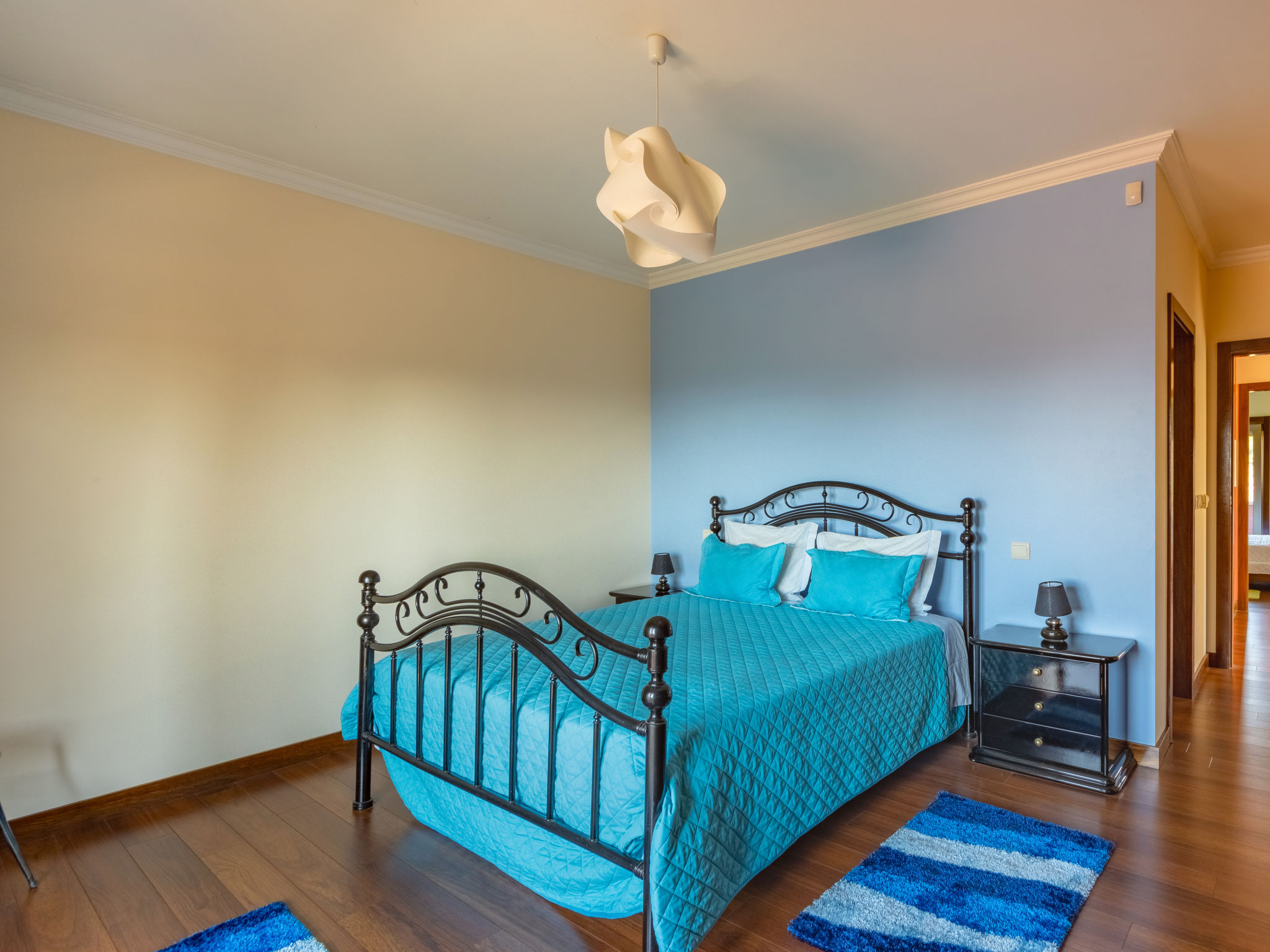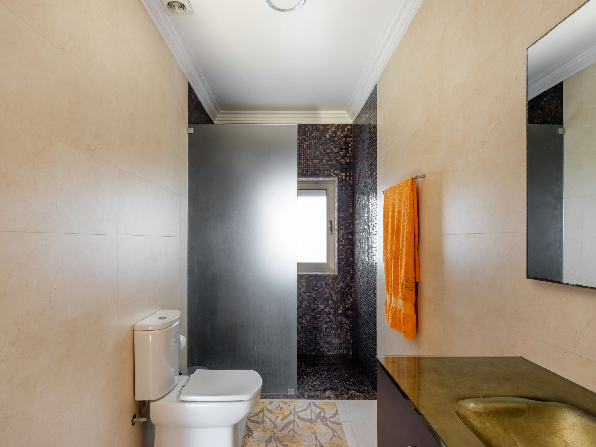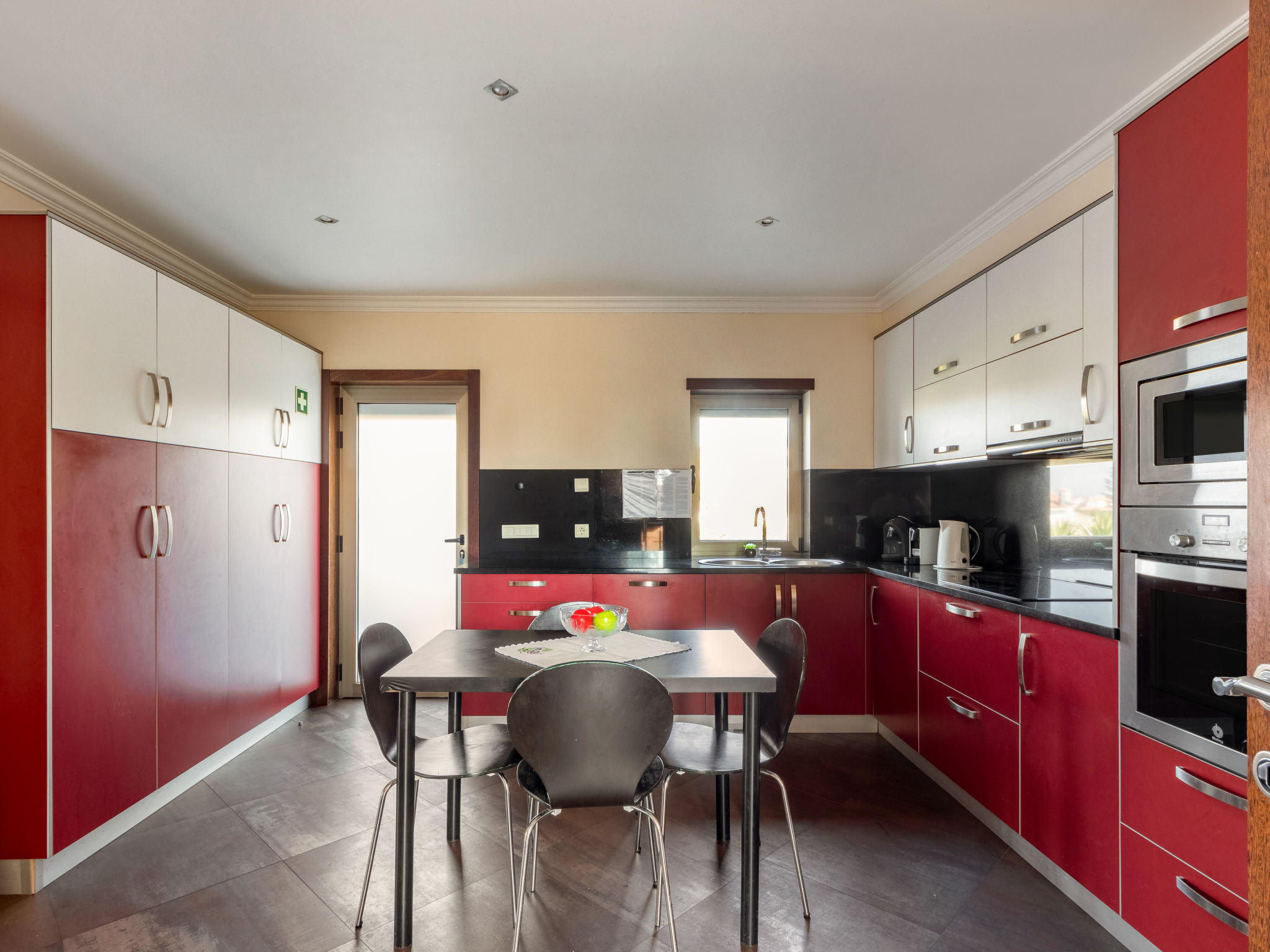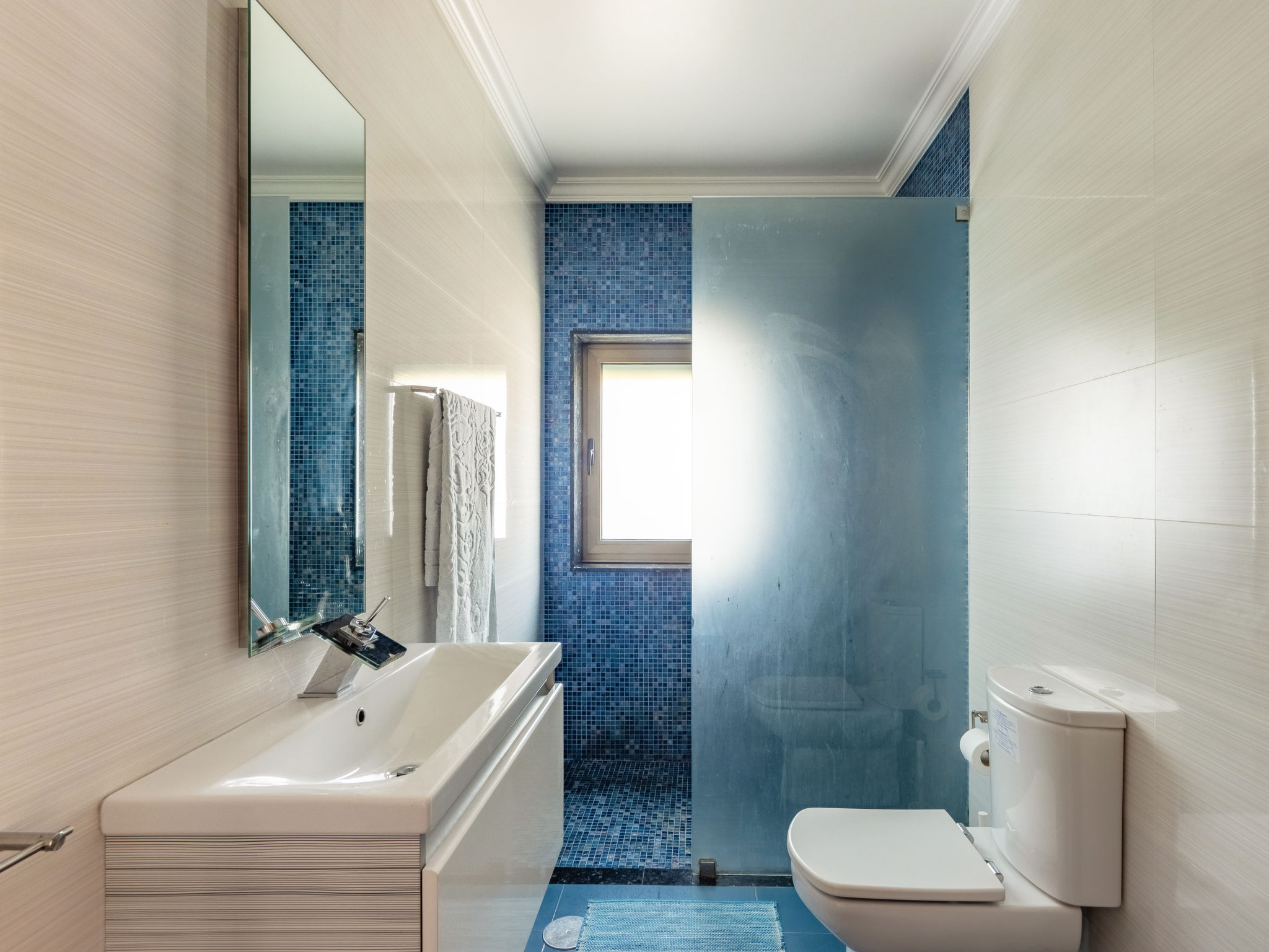 "Vista Mar (ESP188)", 6-Zimmer-Haus 200 m2 auf 2 Stockwerken. Modern und geschmackvoll eingerichtet: Wohn-/Esszimmer mit offenem Kamin, Esstisch, Sat-TV, CD und DVD. Ausgang zur Terrasse. 1 Zimmer mit 1 franz. Bett (150 cm), Dusche/WC. Ausgang zum Garten. Küche (Backofen, Geschirrspüler, 4 Glaskeramikherd Platten, Mikrowelle, Tiefkühler, elektrische Kaffeemaschine) mit Esstisch. Ausgang zum Garten. Dusche/WC. Obergeschoss: 2 Zimmer, jedes Zimmer mit 2 Betten. Ausgang zum Balkon. 1 Zimmer mit 1 franz. Bett (160 cm), Dusche/WC. 1 Zimmer mit 1 franz. Bett (150 cm). Ausgang zum Balkon. Bad/WC, Whirlbadewanne. Fussbodenheizung. Heizung nicht in allen Räumen. Holzböden. 2 Balkone, Terrasse 40 m2 teilweise überdacht. Terrassenmöbel, Gartengrill, Liegestühle (5), Abstellkammer. Schöne Sicht auf das Meer. Zur Verfügung: Waschmaschine, Bügeleisen. Internet (Wireless LAN, gratis). Bei Belegung mit weniger Personen als der maximalen Personenzahl stehen nicht alle Schlafzimmer zur Verfügung. 99527/AL