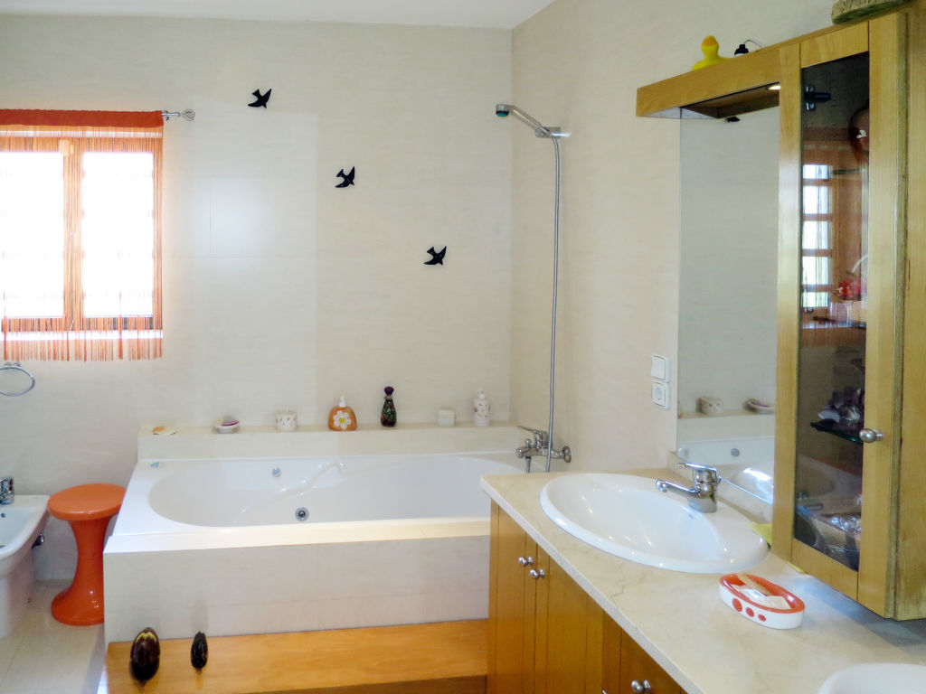 "Baltazar (ESP127)", 4-Zimmer-Haus 120 m2 auf 2 Stockwerken. Schön und gemütlich eingerichtet: Wohn-/Esszimmer mit Esstisch, Sat-TV, Stereoanlage und DVD. Ausgang zur Terrasse. 1 Zimmer mit 1 franz. Bett. Ausgang zur Terrasse. 1 Zimmer mit 2 Betten. Küche (Backofen, Geschirrspüler, 4 Flammen, Mikrowelle, Tiefkühler, elektrische Kaffeemaschine). Bad/WC, Dusche, Doppelwaschbecken. Obergeschoss: 1 abgeschrägtes Zimmer mit 1 franz. Bett (160 cm). Ölheizung. Heizung nicht in allen Räumen. Parkettböden. Terrasse 20 m2 teilweise überdacht. Terrassenmöbel, Gartengrill, Liegestühle (3), Abstellkammer. Zur Verfügung: Waschmaschine. Internet (Wireless LAN, extra).