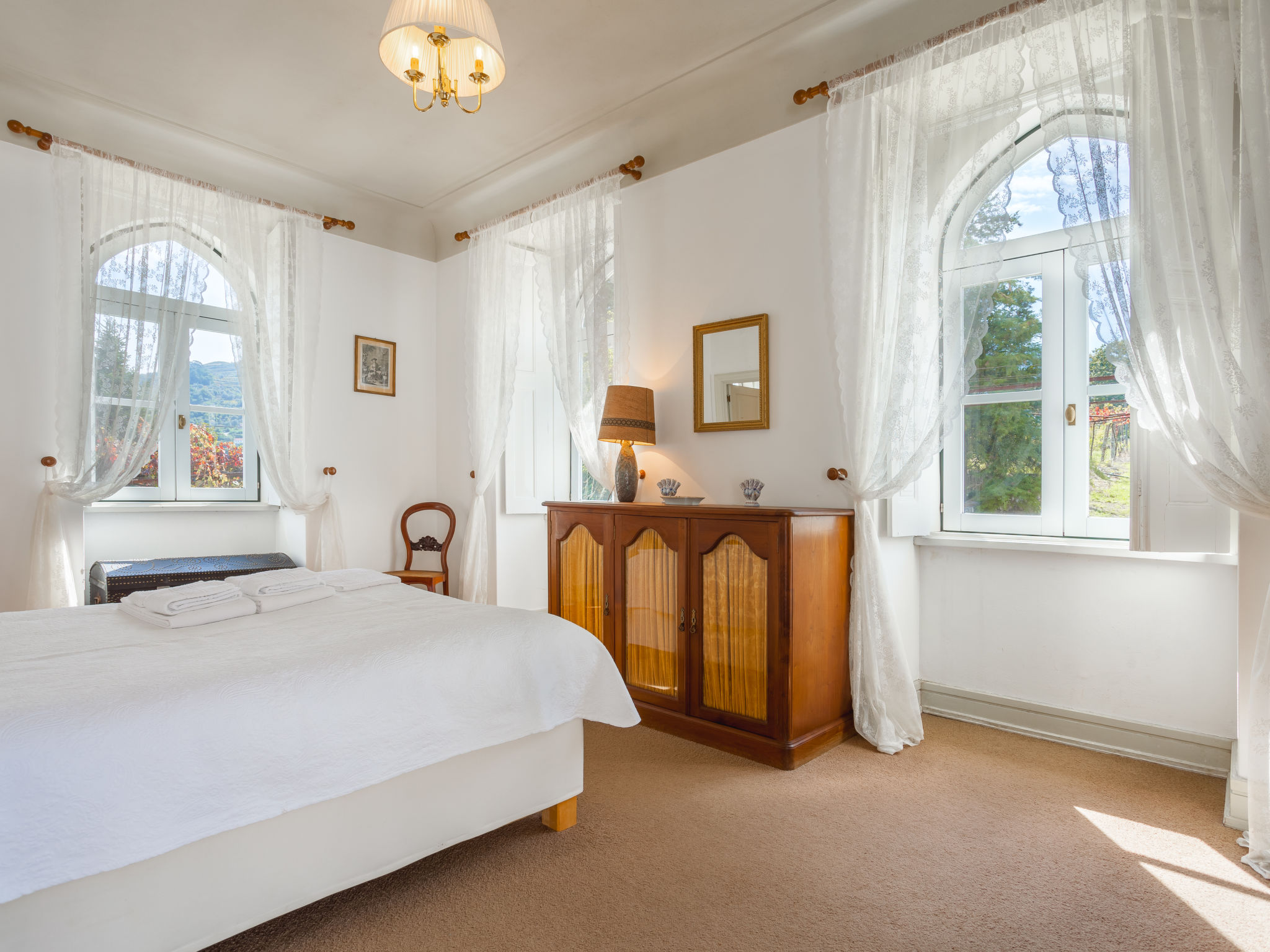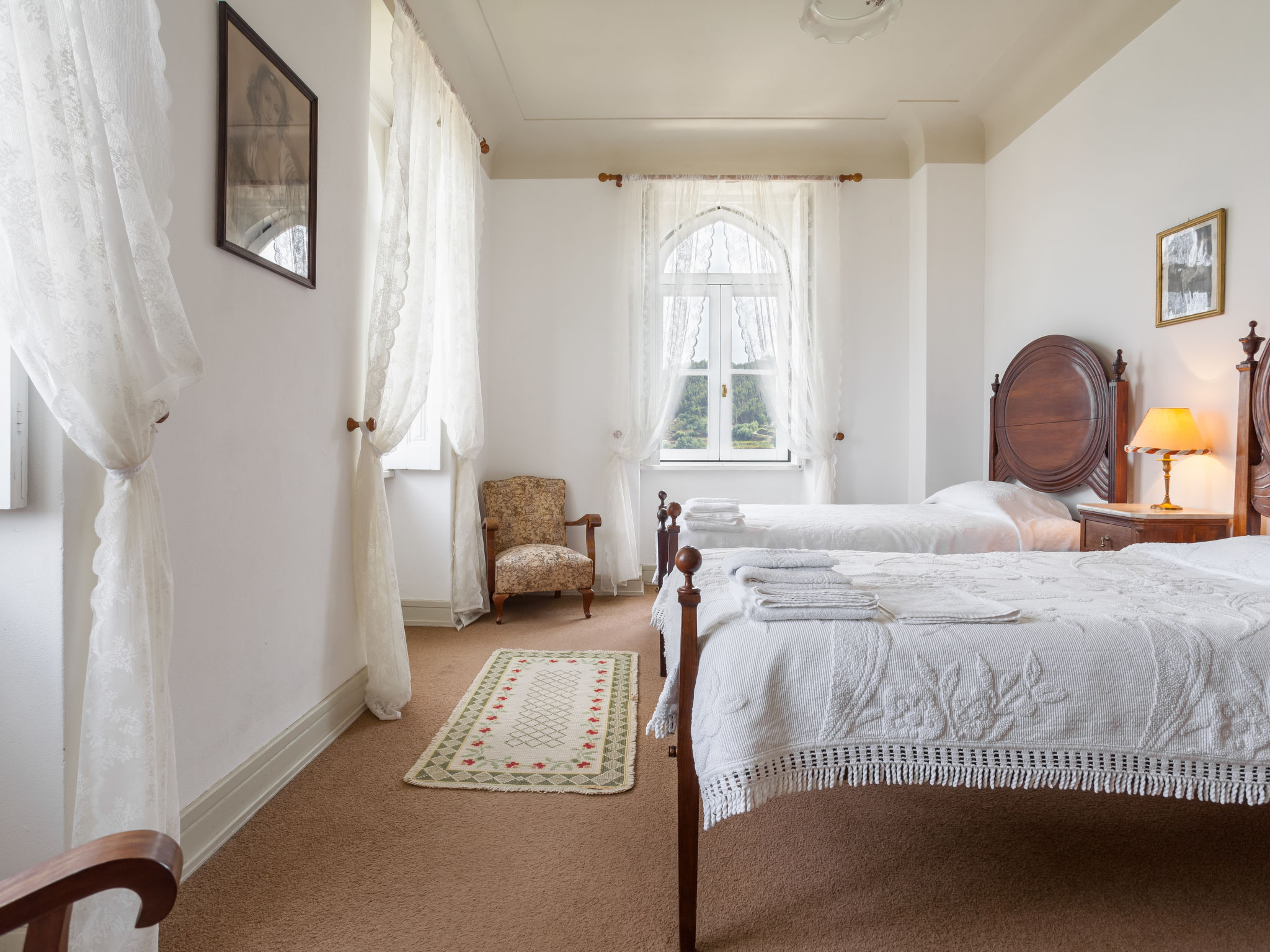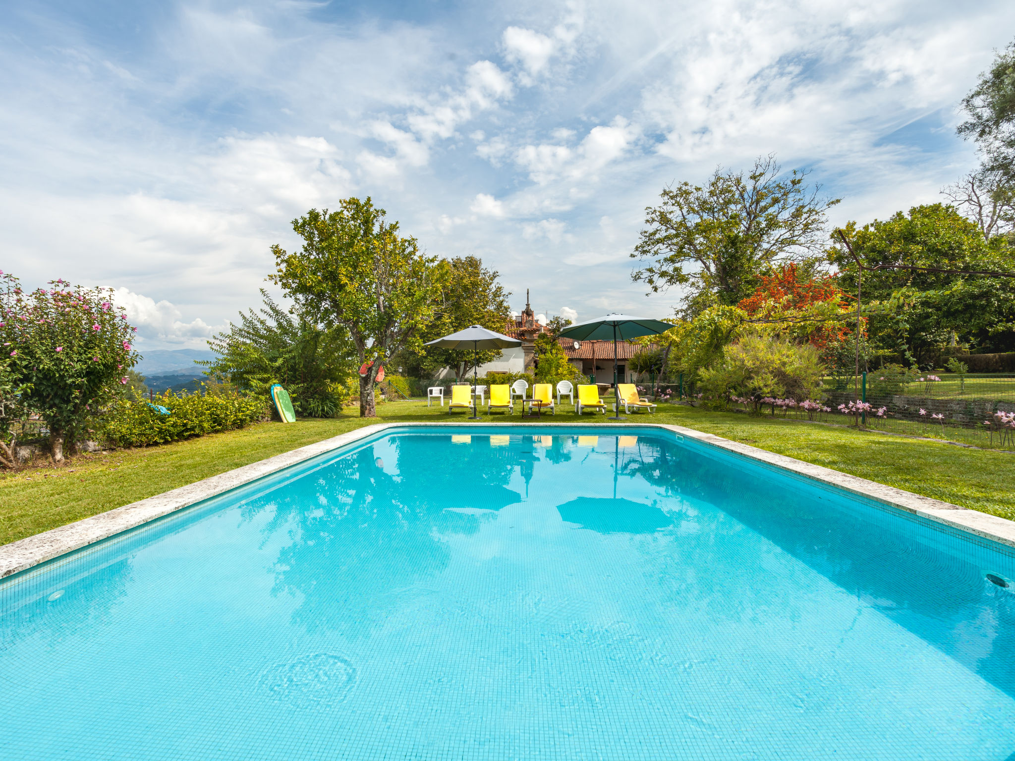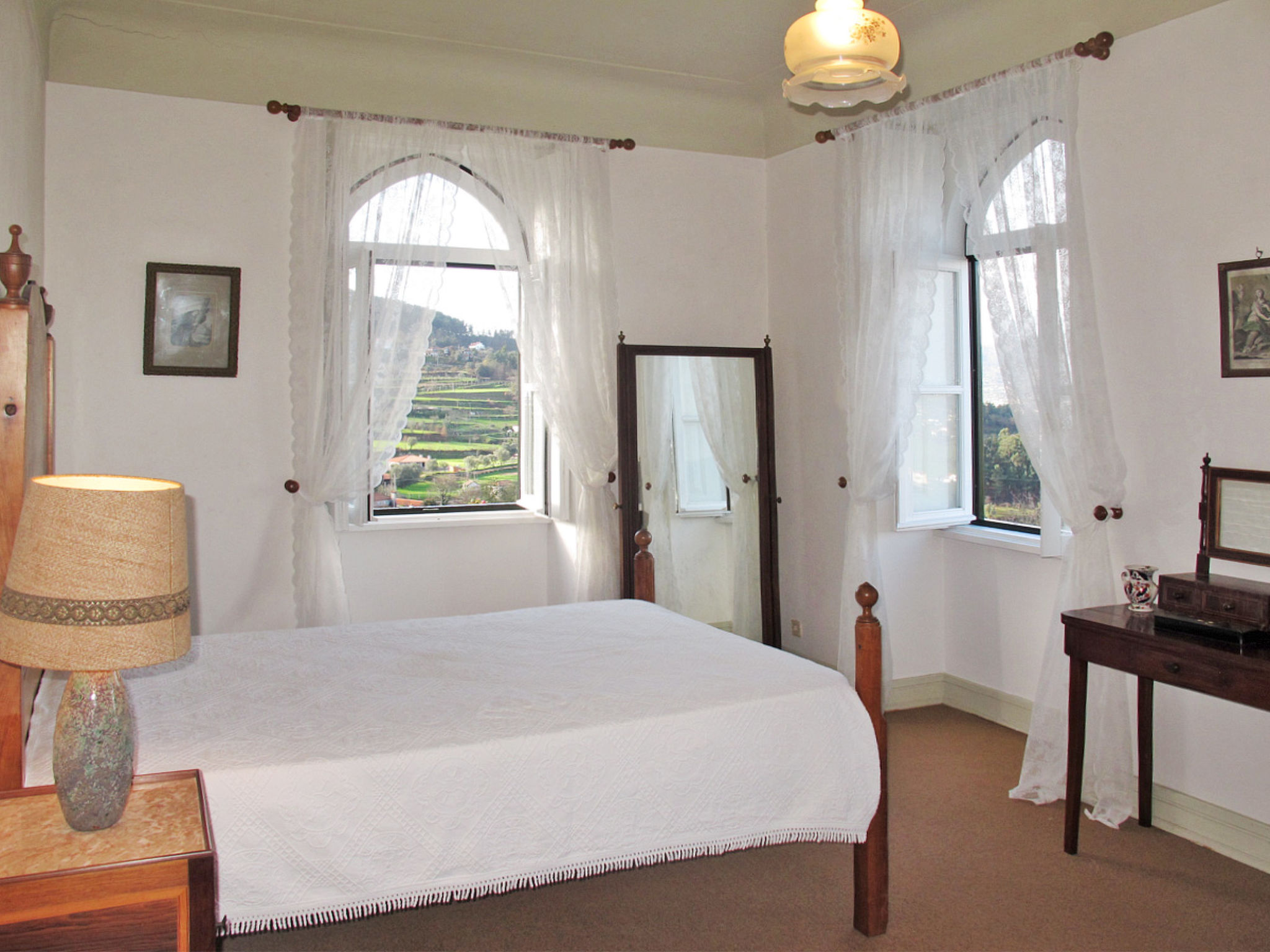 Das 1910 gebaute Herrenhaus mit herrlichem Panoramablick liegt auf einem 10 ha großen Weingut, 11 km außerhalb von Ponte de Lima. Viana do Castelo 38 km. In der Umgebung mehrere Herrenhäuser, landschaftlich reizvoll in den Weinbergen gelegen. Nächste Einkaufsmöglichkeit 3 km. Supermarkt 10 km. Restaurant 3 km. Fluss mit Sandufer 4 km. Freibad in Ponte de Lima 11 km. Nächster Sandstrand in Cabedelo 45 km. 18-Loch-Golfplatz in Ponte de Lima 12 km. Gemauertes Einfahrtstor. Zufahrt ca. 200 m über Schotterweg. Parkmöglichkeiten auf dem Grundstück. Etwa 3000 m² großes, teils abgeschlossenes Grundstück mit altem Baumbestand, Rasenflächen, Obst- und Olivenbäume n. Auf dem Grundstück liegen einige ehemalige Wirtschaftgebäude sowie ein separates Natursteinhaus, das gelegentlich vom Besitzer genutzt wird. Tägliche Grundstückspflege durch den Verwalter. Kleines Becken mit eigenem Quellwasser (Trinkwasser). Der Pool (11 x 5,5 m, 2,20 m tief, 15.05.-01.11.) wird gelegentlich vom Besitzer mitgenutzt. Liegewiese, 5 Sonnenliegen, Sonnenschirm. Außendusche. Poolpflege 1x pro Woche durch den Verwalter. U-förmig umschlossene Südterrasse (ca. 40 m²) mit Gartenmobiliar, Grill. Im Obergeschoss 2 große überdachte Balkone (jeweils ca. 25 m²). Weiterer Balkon (ca. 20 m²). Freundlich-angenehme Einrichtung im landestypischen Stil, teils Antiquitäten. Fliesen-, Teppich- und Parkettboden. Sat-TV, CD, Radio. Internetzugang (WLAN, inklusive). Abstellraum. Waschmaschine, Bügeleisen/-brett. Elektroradiatoren. Heizung nicht in allen Räumen. Hinweise: Rauchen ist im Haus nicht gestattet. Eine Haushälterin des Besitzerhauses kocht auf Wunsch und gegen Bezahlung regionale Spezialitäten. Gäste können auf Wunsch die von Pächtern betriebene Weinlese miterleben.