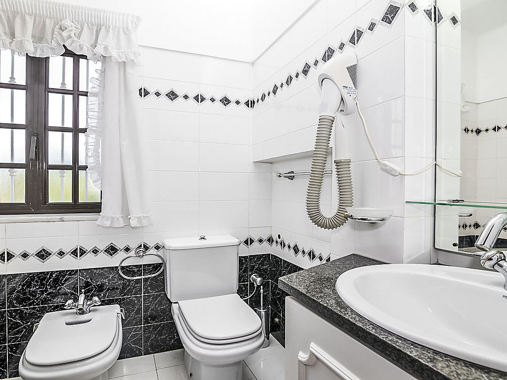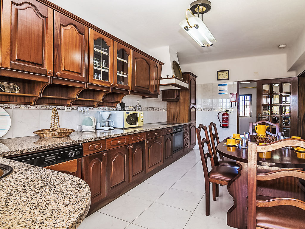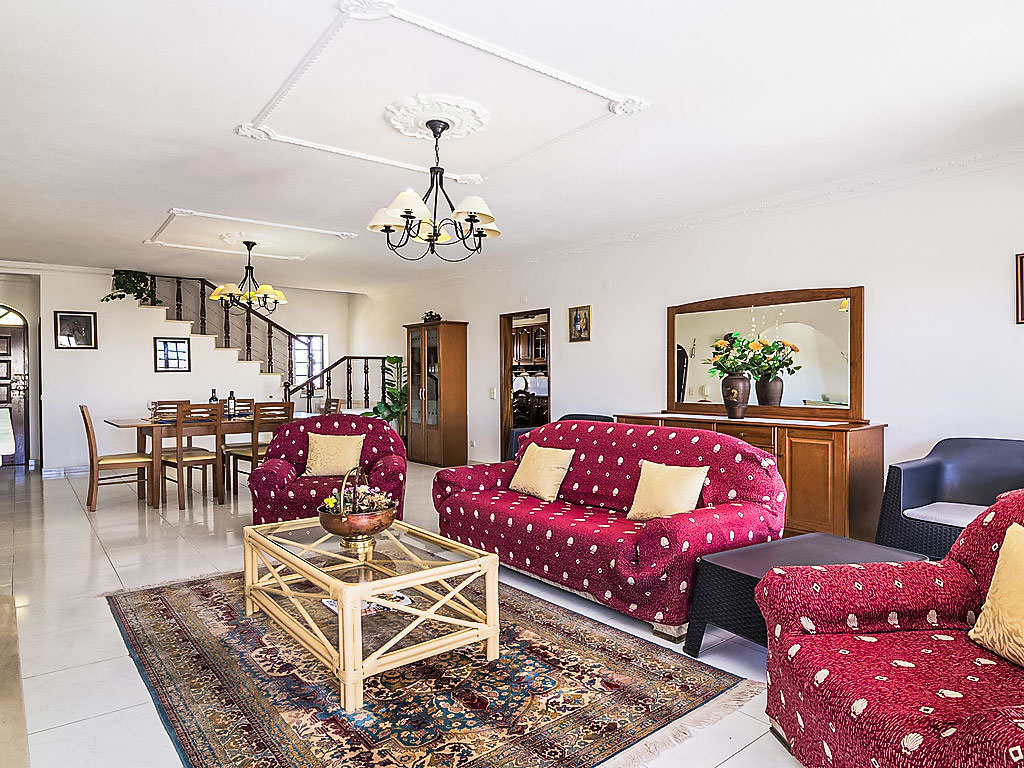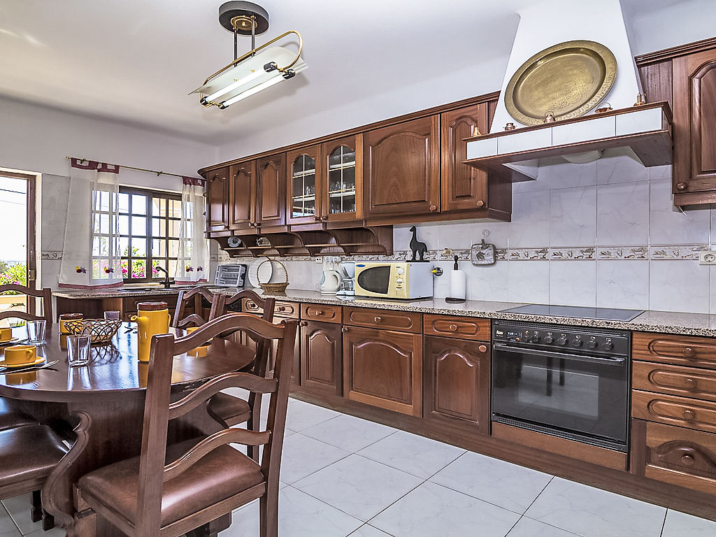 "Villa Quinta do Sol", 5-Zimmer-Villa 344 m2 auf 2 Stockwerken. Objekt geeignet für 8 Erwachsene. Sehr komfortabel und gemütlich eingerichtet: offenes Wohn-/Esszimmer mit offenem Kamin, Esstisch und Sat-TV (Flachbildschirm). Ausgang zur Terrasse. 1 Zimmer mit 2 Betten. Küche (Backofen, Geschirrspüler, 4 Glaskeramikherd Platten, Mikrowelle) mit Esstisch. Bad/WC, Dusche/WC. Obergeschoss: 2 Zimmer, jedes Zimmer mit 1 franz. Bett. 1 Zimmer mit 2 Betten. Bad/WC, Dusche/WC. Komfortable Einrichtung im Landhausstil. Terrassenmöbel, Gartengrill, Liegestühle (8). Seitliche Sicht auf das Meer, die Berge und die Landschaft. Zur Verfügung: Waschmaschine, Babybett bis 3 Jahre, Haartrockner. Geeignet für Familien. AL/9456