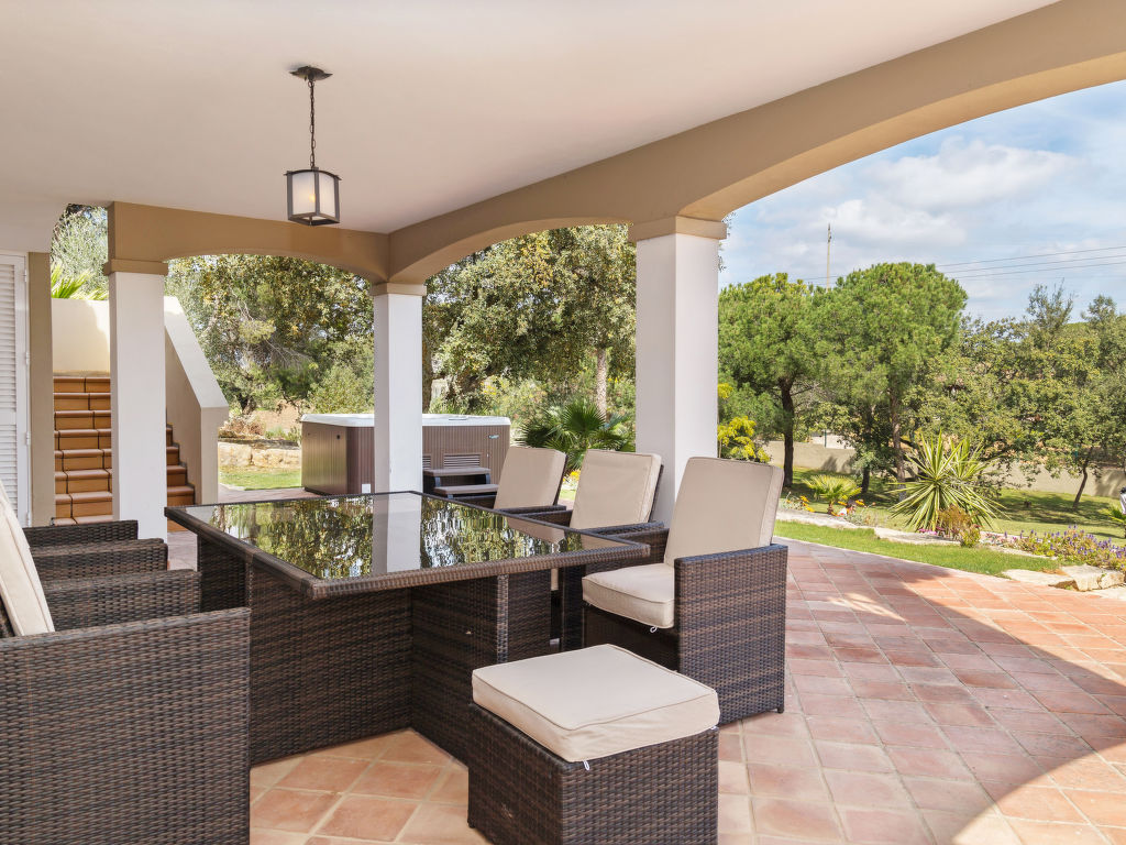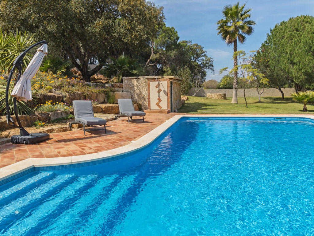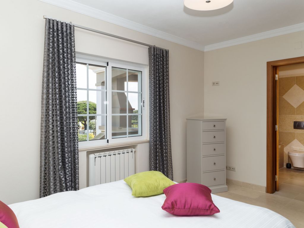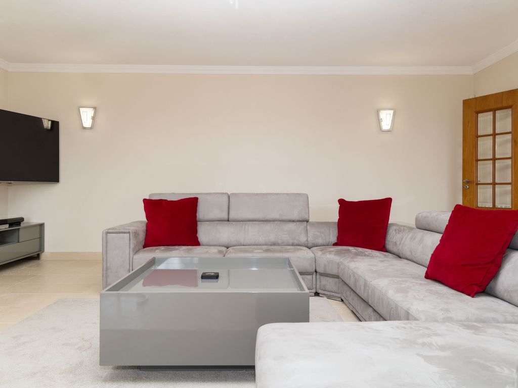 3 km von Fonte Santa: Sehr moderne, alleinstehende, komfortable Villa "Diamond", auf 3 Stockwerken. Im Bezirk Quarteira, ruhige, erhöhte Lage, 3.1 km vom Meer. Zur Alleinbenutzung: naturbelassenes Grundstück 2'800 m2 (eingezäunt), Blumen und Bäumen, wunderschöner Garten zum Entspannen, Schwimmbad eckig (5 x 12 m, 90 - 220 cm tief, 01.01.-31.12.). Aussendusche, Pergola, Terrasse, Gartenmöbel, Grill. Im Hause: Wireless LAN, Billard, Alarmanlage, Waschmaschine, Wäschetrockner. Parkplatz beim Haus auf dem Grundstück. Einkaufsgeschäft 3.7 km, Supermarkt 1.4 km, Einkaufszentrum 3.7 km, Restaurant 900 m, Bar 6.5 km, Bäckerei 1.4 km, Café 800 m, Sandstrand "Praia do Forte Novo" 3.1 km. Jacht-Hafen 6.9 km, Golfplatz (18 Loch) 7.5 km, Segelschule 6.9 km. Nahe gelegene Sehenswürdigkeiten: Aquashow Park 2.5 km, Mar Shopping 13.3 km, Casino de Vilamoura 5.5 km, Marina de Vilamoura 6.9 km, Vale de Lobo 4.7 km, Karting de Almancil 3.5 km. Bitte beachten: Fahrzeug empfohlen. Geeignet für Familien. Jugendgruppen nur auf Anfrage. Es kann auf Anfrage ein Transfer ab Flughafen zum Ferienobjekt organisiert werden. Be- und Entladen am Ferienhaus möglich.