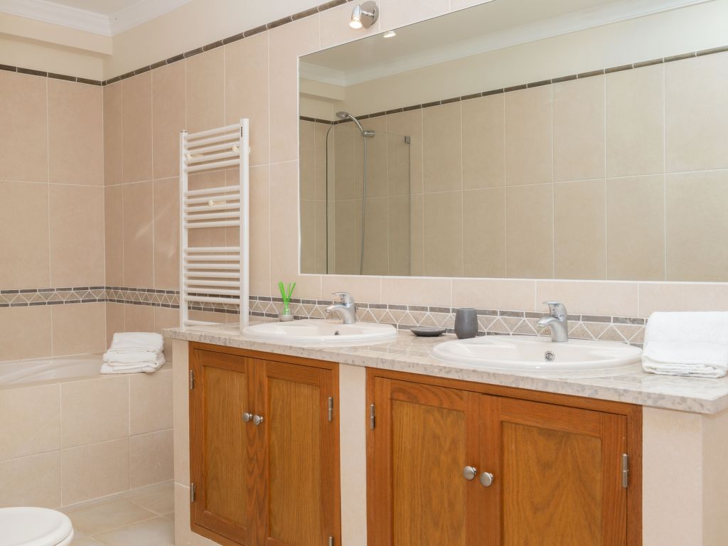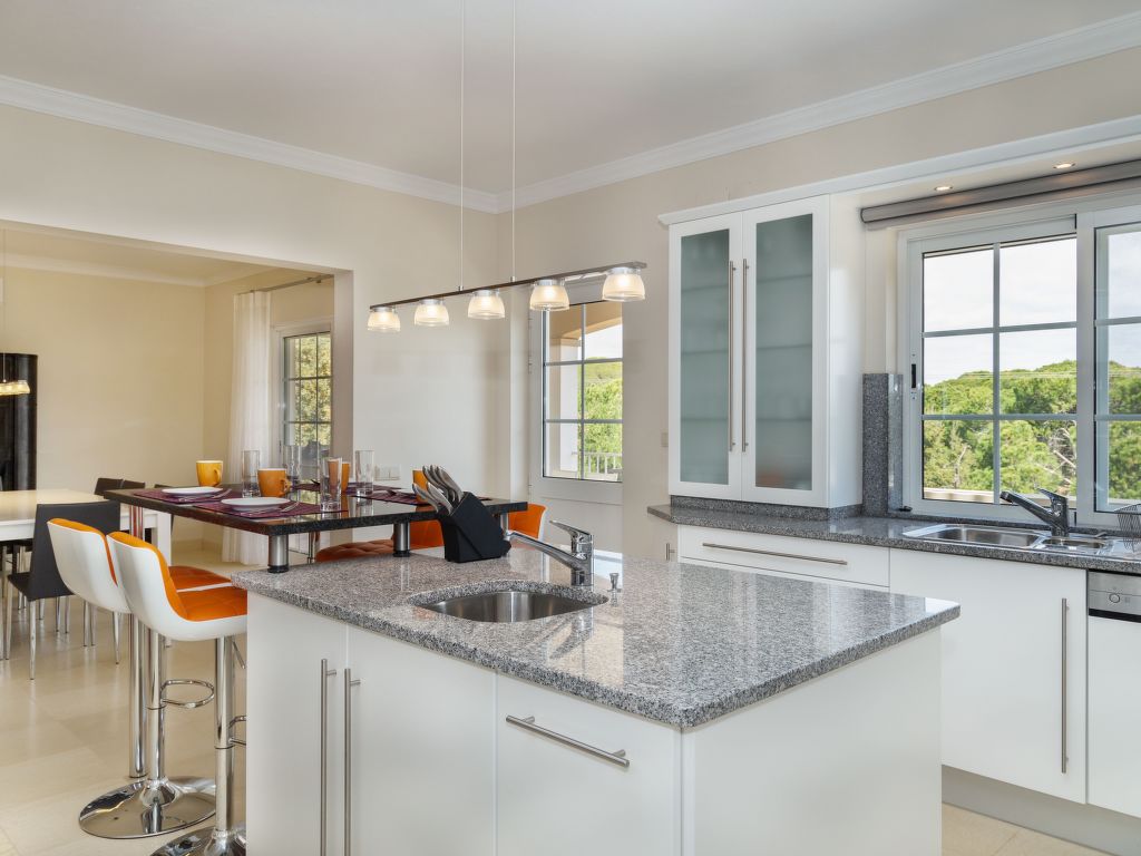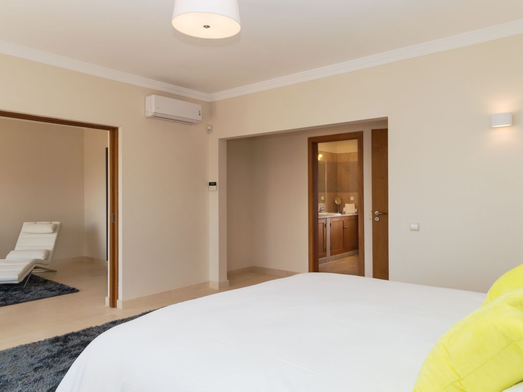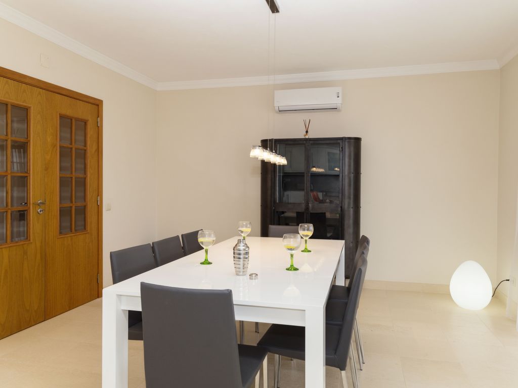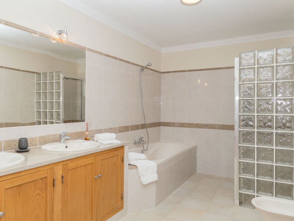 3 km von Fonte Santa: Sehr moderne, alleinstehende, komfortable Villa "Diamond", auf 3 Stockwerken. Im Bezirk Quarteira, ruhige, erhöhte Lage, 3.1 km vom Meer. Zur Alleinbenutzung: naturbelassenes Grundstück 2'800 m2 (eingezäunt), Blumen und Bäumen, wunderschöner Garten zum Entspannen, Schwimmbad eckig (5 x 12 m, 90 - 220 cm tief, 01.01.-31.12.). Aussendusche, Pergola, Terrasse, Gartenmöbel, Grill. Im Hause: Wireless LAN, Billard, Alarmanlage, Waschmaschine, Wäschetrockner. Parkplatz beim Haus auf dem Grundstück. Einkaufsgeschäft 3.7 km, Supermarkt 1.4 km, Einkaufszentrum 3.7 km, Restaurant 900 m, Bar 6.5 km, Bäckerei 1.4 km, Café 800 m, Sandstrand "Praia do Forte Novo" 3.1 km. Jacht-Hafen 6.9 km, Golfplatz (18 Loch) 7.5 km, Segelschule 6.9 km. Nahe gelegene Sehenswürdigkeiten: Aquashow Park 2.5 km, Mar Shopping 13.3 km, Casino de Vilamoura 5.5 km, Marina de Vilamoura 6.9 km, Vale de Lobo 4.7 km, Karting de Almancil 3.5 km. Bitte beachten: Fahrzeug empfohlen. Geeignet für Familien. Jugendgruppen nur auf Anfrage. Es kann auf Anfrage ein Transfer ab Flughafen zum Ferienobjekt organisiert werden. Be- und Entladen am Ferienhaus möglich.