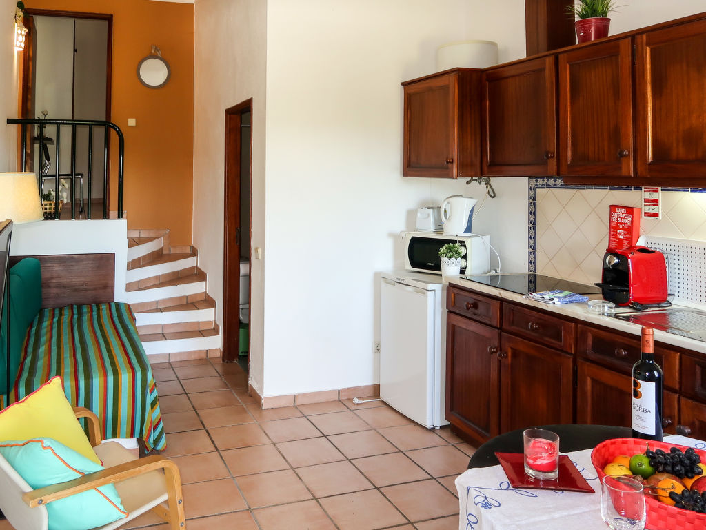 "Quinta da Murteira (FUZ105)", 2-Zimmer-Bungalow 29 m2. Zweckmässig und rustikal eingerichtet: Wohn-/Schlafzimmer mit 1 Diwanbett (98 cm, Länge 185 cm), Sat-TV. 1 Zimmer mit 2 Betten. Offene Küche (4 Glaskeramikherd Platten, Toaster, Mikrowelle, elektrische Kaffeemaschine) mit Esstisch. Sitzbad/WC. E-Heizung, Klimaanlage. Heizung nicht in allen Räumen. Terrasse. Terrassenmöbel, Liegestühle (2). Zur Verfügung: Fliegengitter, Kinderhochstuhl, Babybett. Internet (Wireless LAN, gratis). Bitte beachten: Wohnung auf Parkplatzseite. Nichtraucher-Unterkunft. 2049/AL