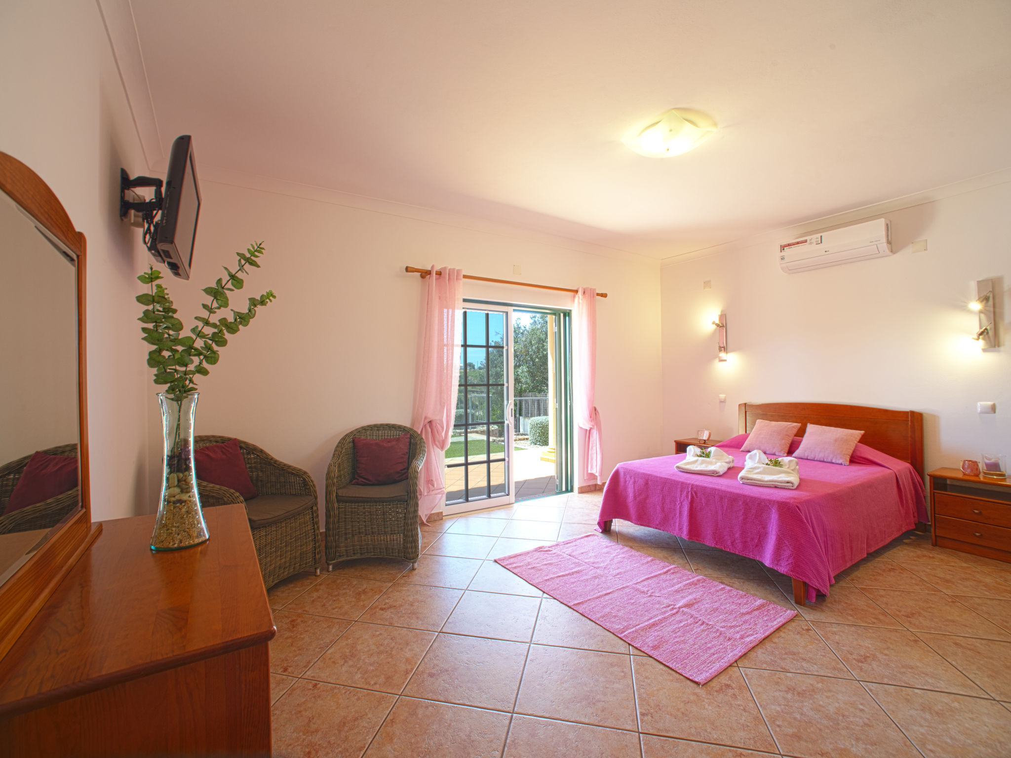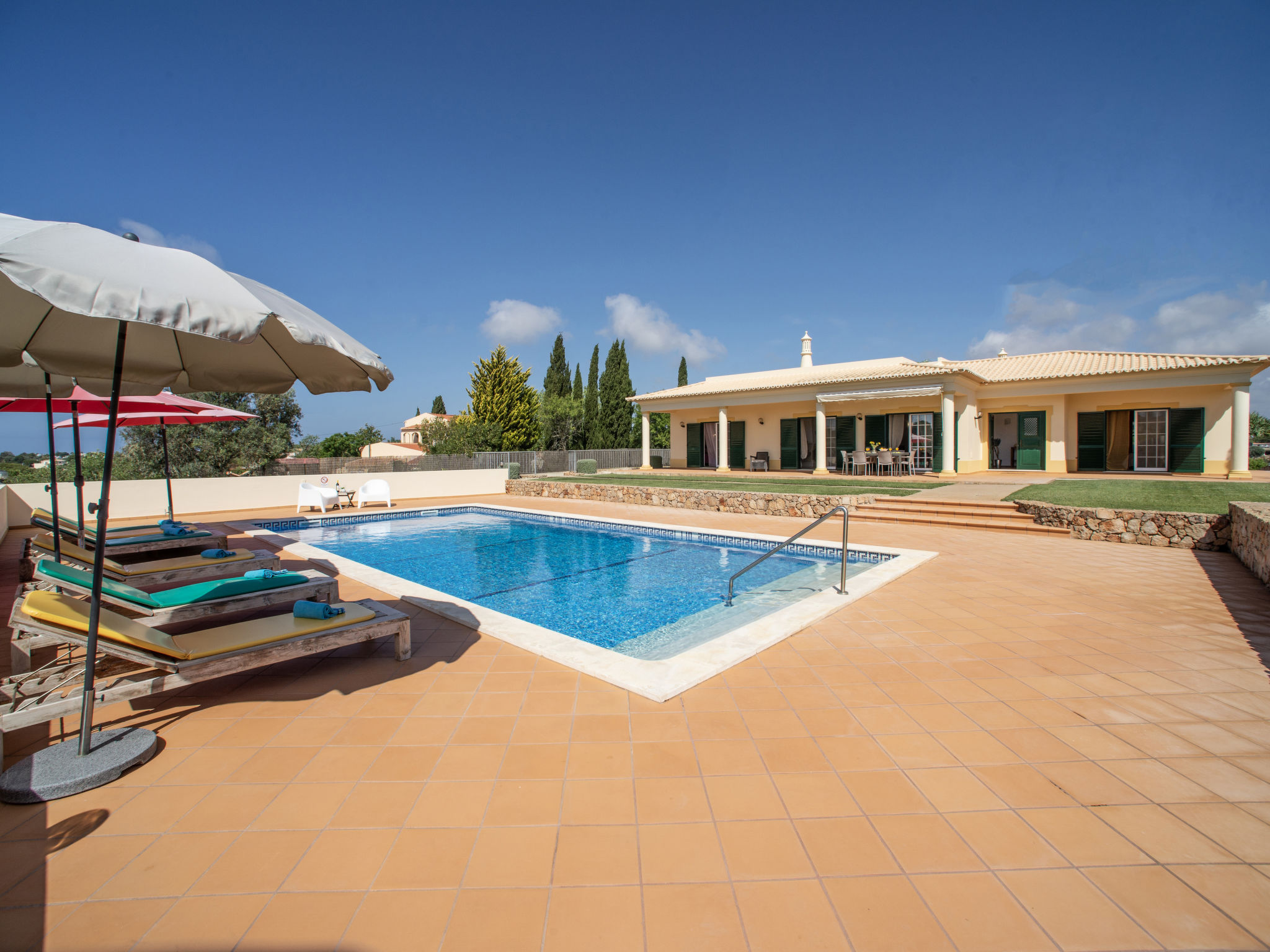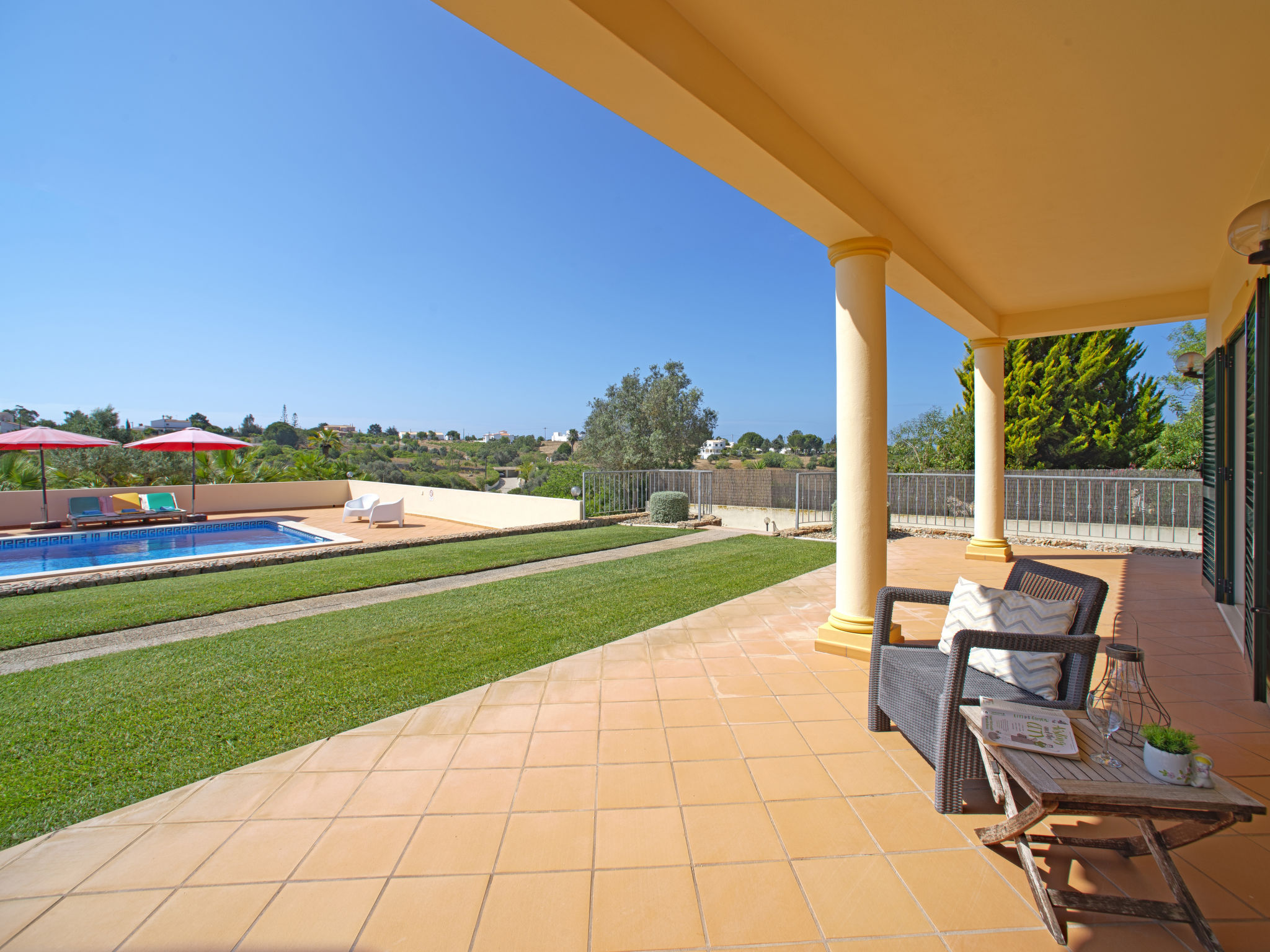 "Alto da Rafoia (CRV130)", 4-Zimmer-Haus 140 m2. Hell, schön und geschmackvoll eingerichtet: Wohn-/Esszimmer mit offenem Kamin, Esstisch, Sat-TV, Stereoanlage und DVD. Ausgang zur Terrasse. 1 Zimmer mit 1 franz. Bett (160 cm), Dusche/WC und Doppelwaschbecken. Ausgang zur Terrasse. 1 Zimmer mit 1 franz. Bett und Dusche/WC. Ausgang zur Terrasse. 1 Zimmer mit 2 Betten. Ausgang zur Terrasse. Küche (Backofen, Geschirrspüler, 4 Glaskeramikherd Platten, Toaster, Wasserkocher, Mikrowelle, Tiefkühler, elektrische Kaffeemaschine) mit Esstisch. Ausgang zur Terrasse. Bad/WC. E-Heizung, Klimaanlage. Terrasse überdacht. Terrassenmöbel, Gartengrill, Liegestühle (6). Zur Verfügung: Waschmaschine, Safe, Bügeleisen, Kinderhochstuhl, Babybett. Bitte beachten: Nichtraucher-Unterkunft. 13874/AL