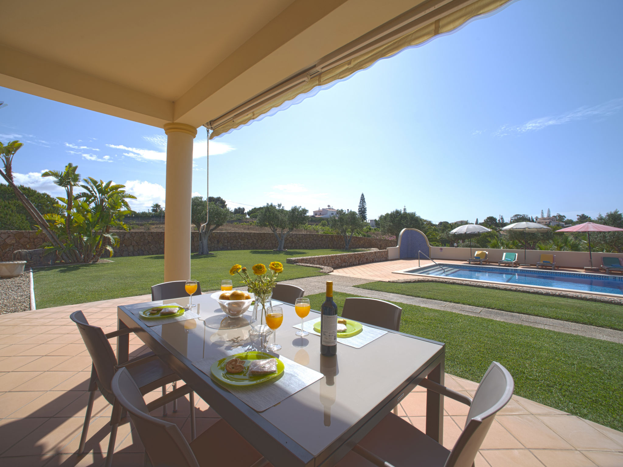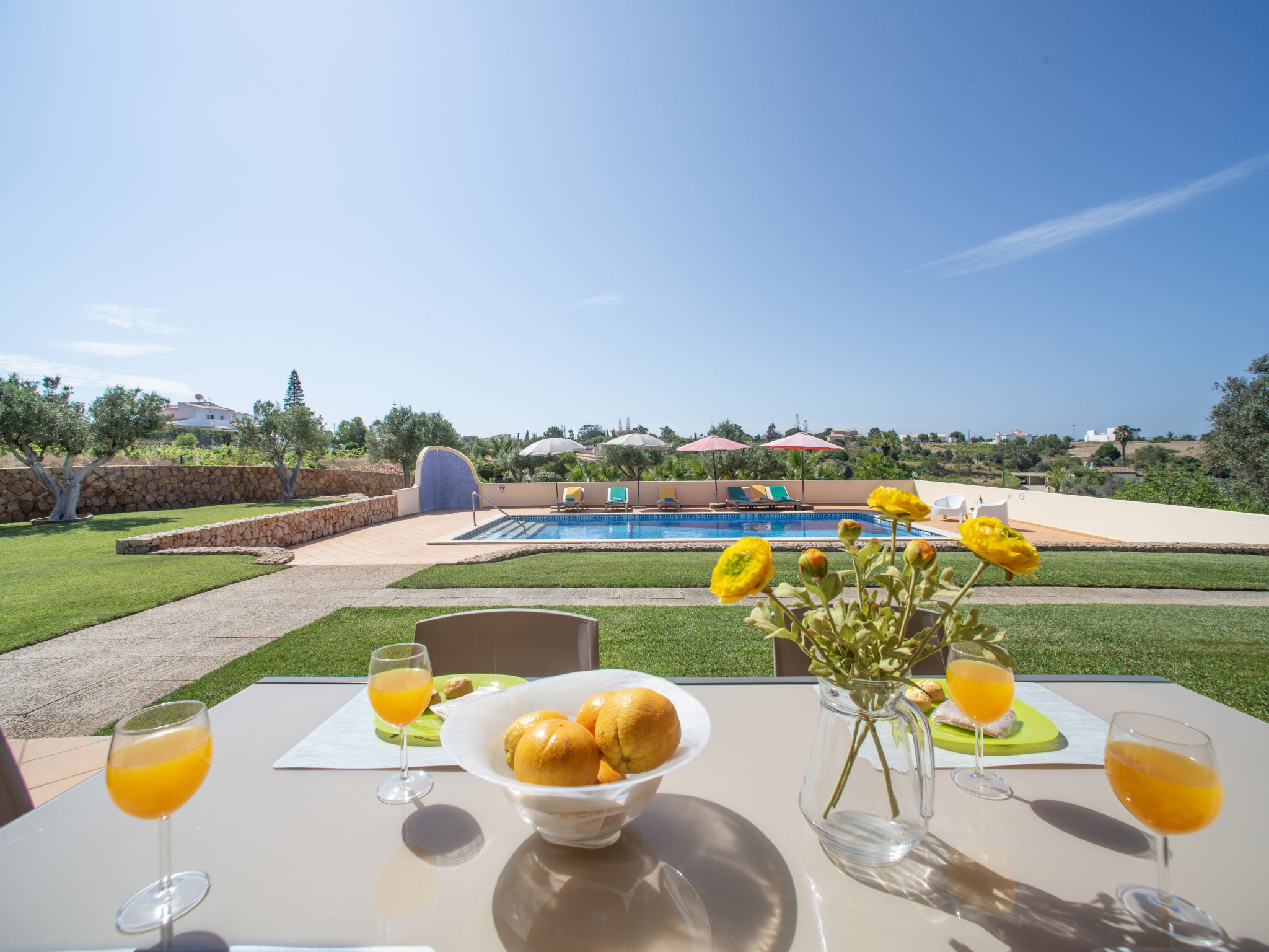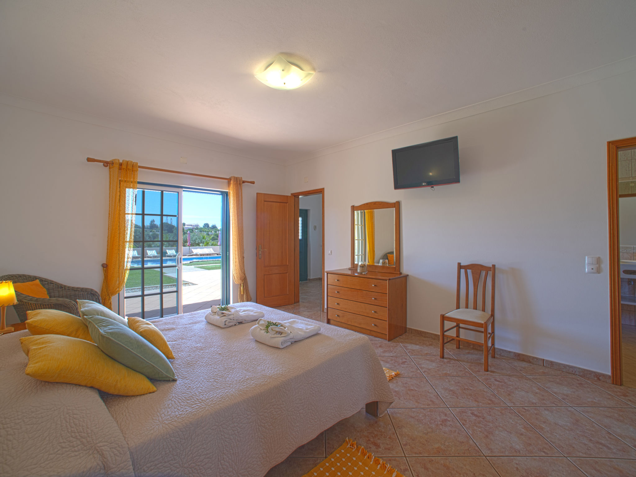 "Alto da Rafoia (CRV130)", 4-Zimmer-Haus 140 m2. Hell, schön und geschmackvoll eingerichtet: Wohn-/Esszimmer mit offenem Kamin, Esstisch, Sat-TV, Stereoanlage und DVD. Ausgang zur Terrasse. 1 Zimmer mit 1 franz. Bett (160 cm), Dusche/WC und Doppelwaschbecken. Ausgang zur Terrasse. 1 Zimmer mit 1 franz. Bett und Dusche/WC. Ausgang zur Terrasse. 1 Zimmer mit 2 Betten. Ausgang zur Terrasse. Küche (Backofen, Geschirrspüler, 4 Glaskeramikherd Platten, Toaster, Wasserkocher, Mikrowelle, Tiefkühler, elektrische Kaffeemaschine) mit Esstisch. Ausgang zur Terrasse. Bad/WC. E-Heizung, Klimaanlage. Terrasse überdacht. Terrassenmöbel, Gartengrill, Liegestühle (6). Zur Verfügung: Waschmaschine, Safe, Bügeleisen, Kinderhochstuhl, Babybett. Bitte beachten: Nichtraucher-Unterkunft. 13874/AL