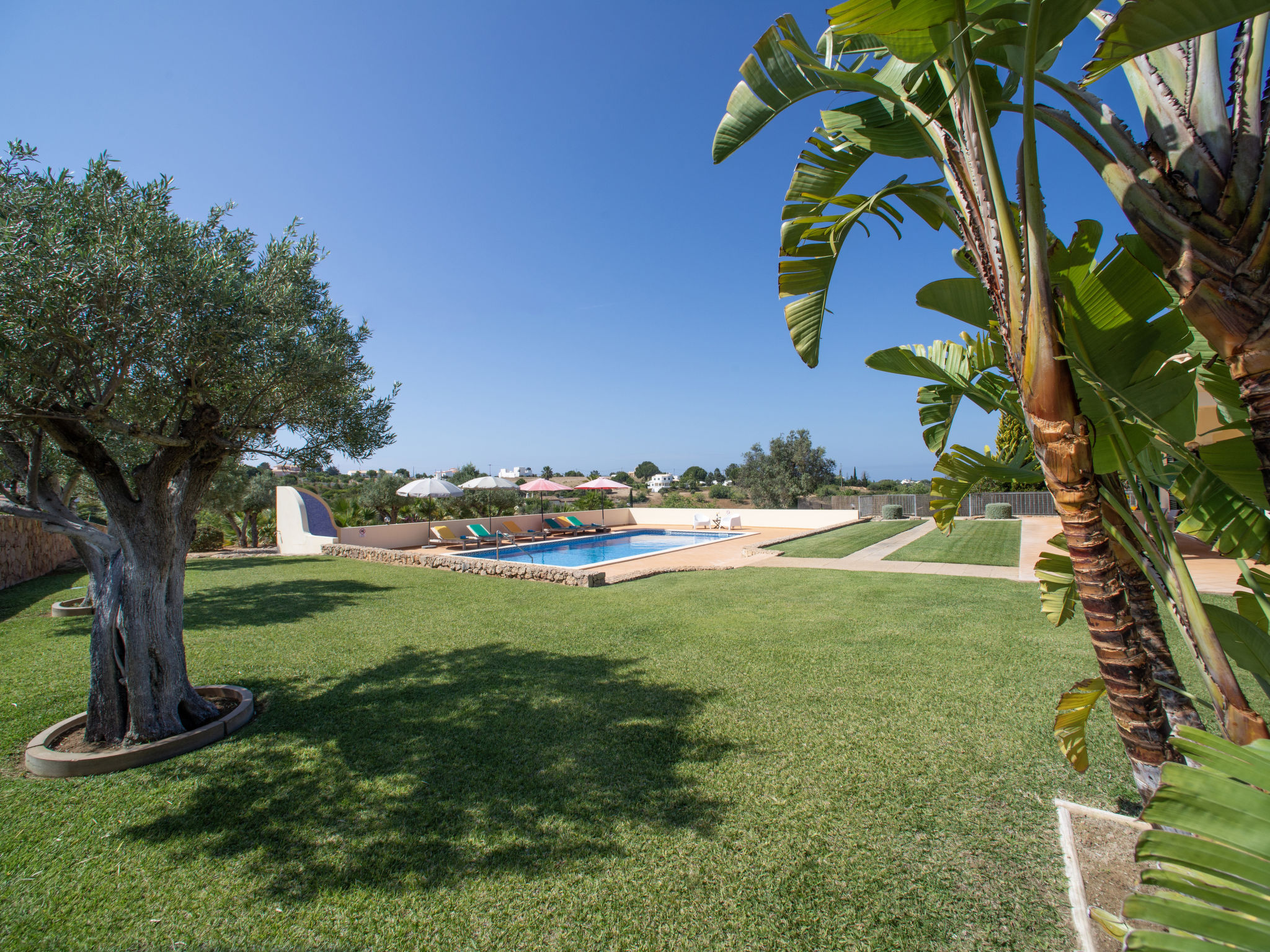 Alleinstehendes Haus "Alto da Rafoia", umgeben von Wiesen und Feldern. 4 km vom Zentrum von Carvoeiro, 2 km vom Meer, im Grünen. Zur Alleinbenutzung: Grundstück 4'000 m2 (eingezäunt) mit Rasen und Bäumen, Hof, Schwimmbad (11 x 5 m, 01.01.-31.12.). Aussendusche. Im Hause: Dachterrasse, Alarmanlage. 100 m lange holprige, schmale Zufahrt. Parkplatz auf dem Grundstück. Einkaufsgeschäft 3 km, Restaurant 1 km, Sandstrand "Praia da Marinha" 2 km. Golfplatz (9 Loch) 3 km.