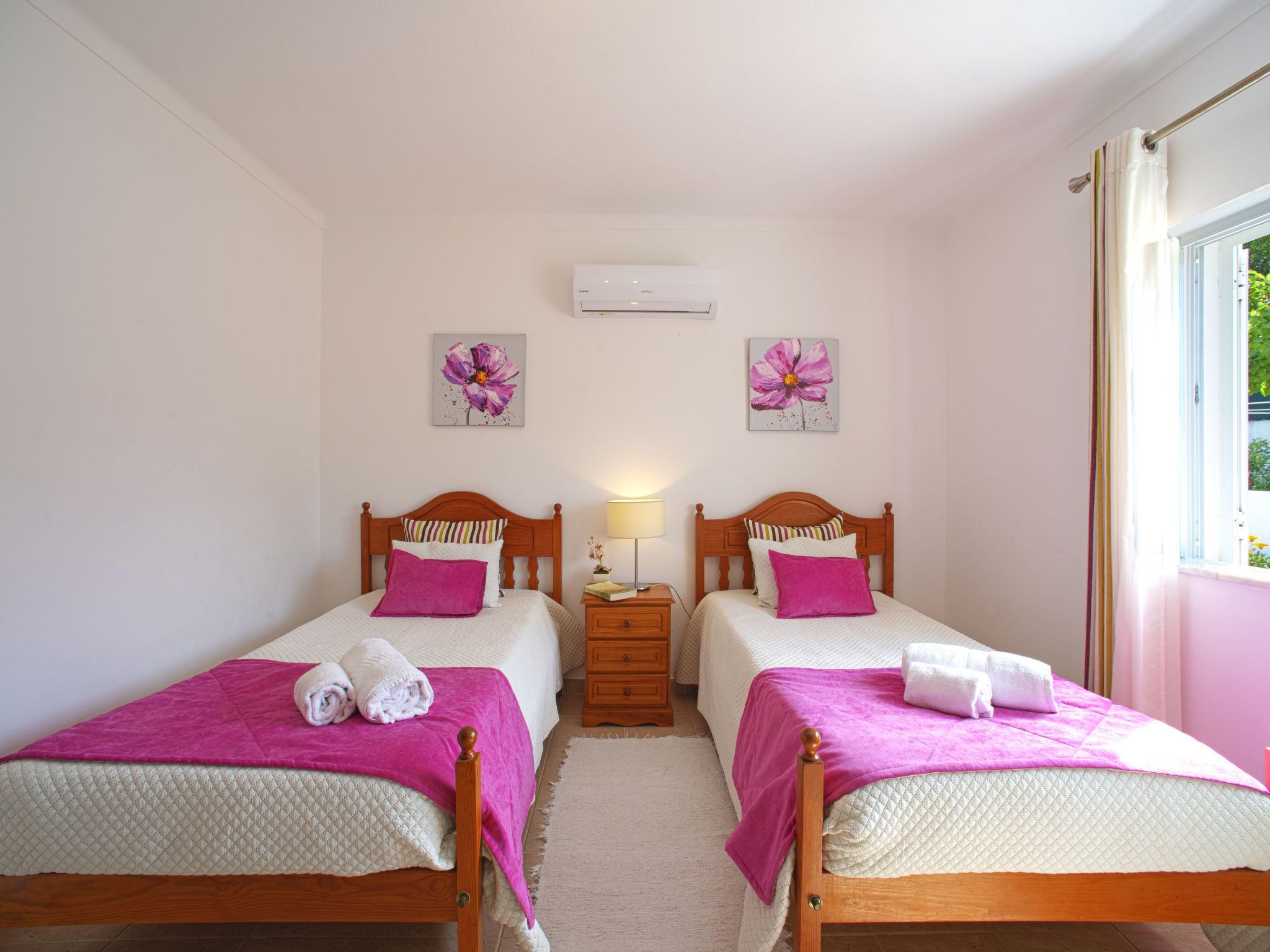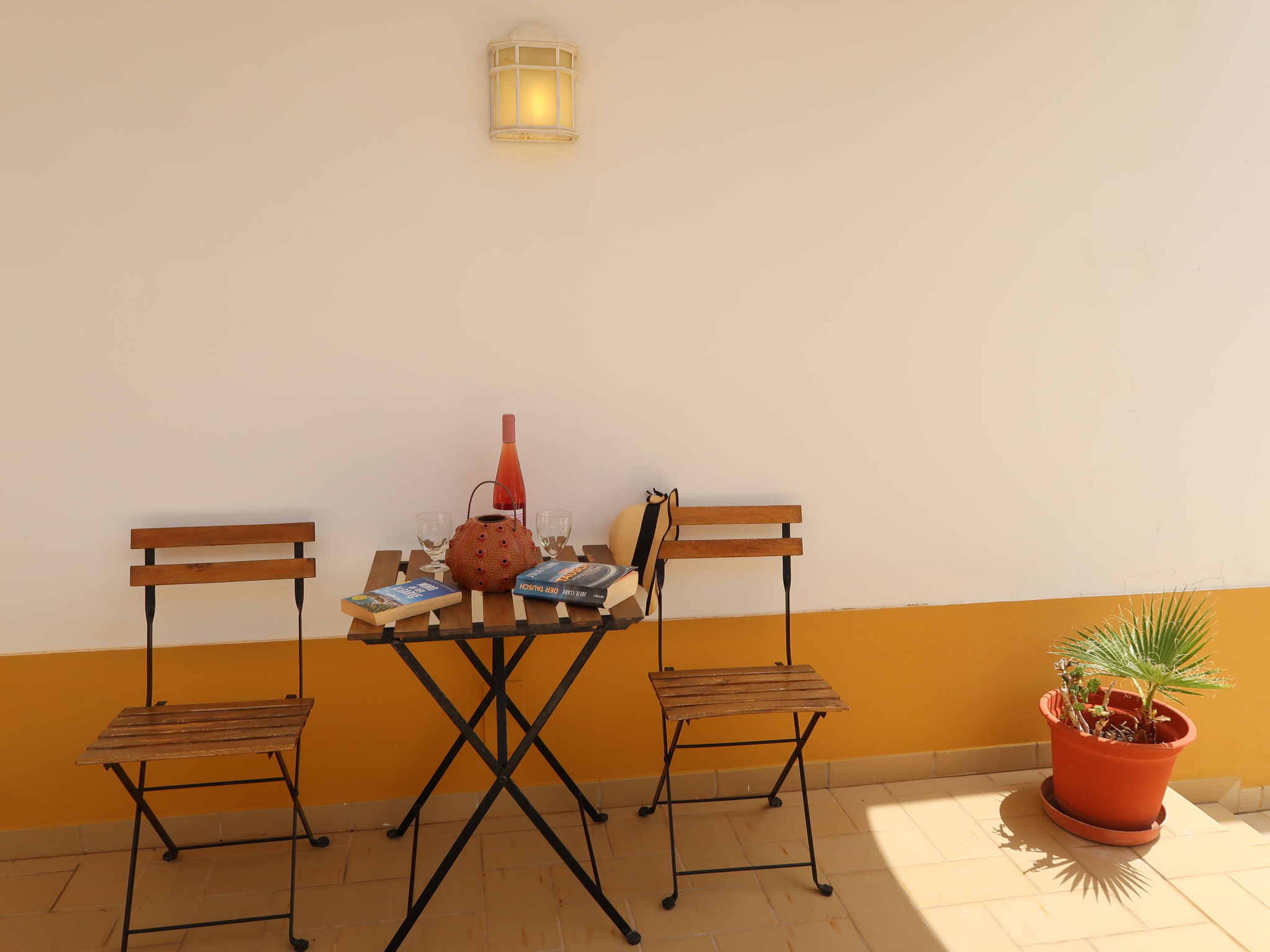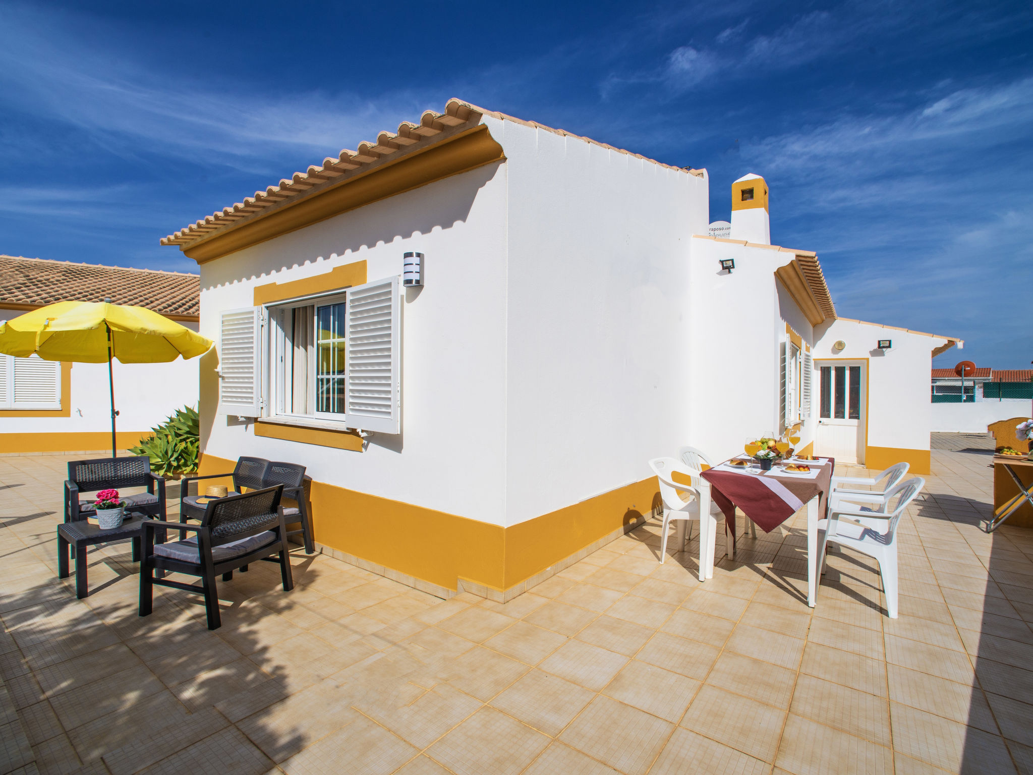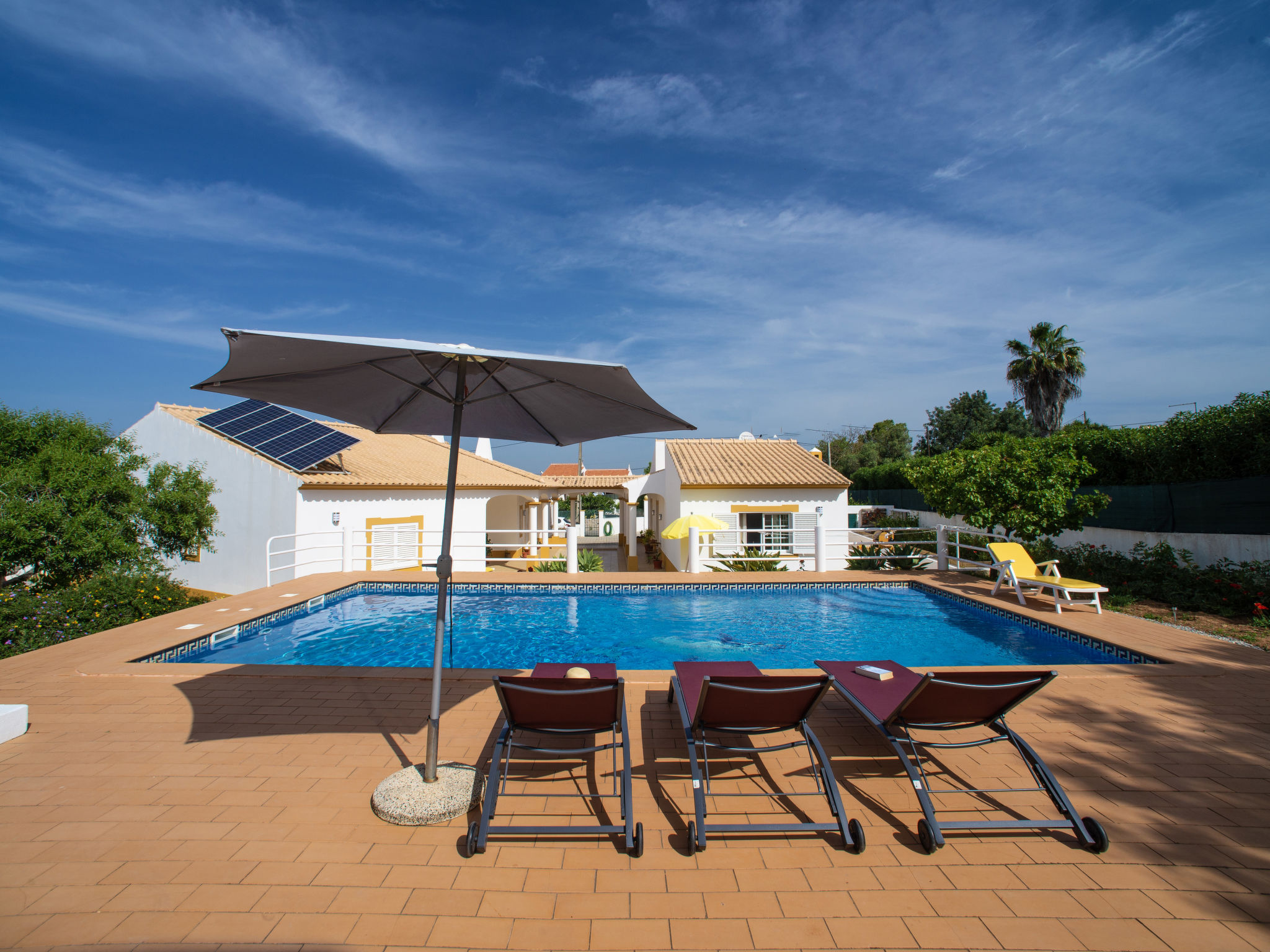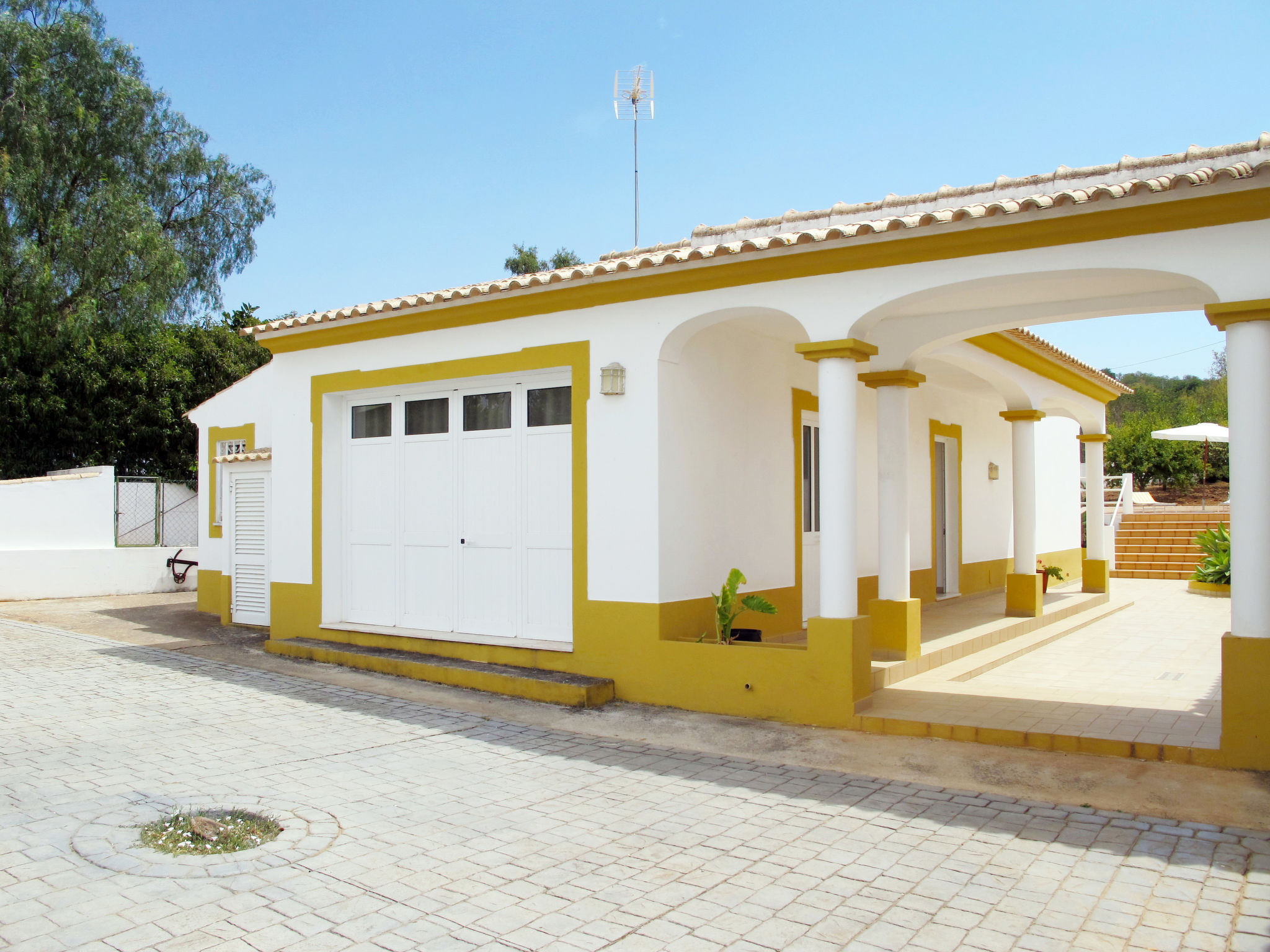 Das kleine sympathische Ferienhaus liegt ländlich im Weiler Monte Novo, 1,4 km von der Ortsmitte Paderne entfernt. Nächste Einkaufsmöglichkeit 1,4 km. Restaurant ca. 200 m. Einkaufszentrum bei Guia 14,5 km. Sandstrand Olhos d'Agua 14,5 km. Albufeira und der Sandstrand Praia dos Pescadores 17 km. Mehrere Golfplätze in Vilamoura 13-15 km. Freizeitpark Zoomarine 21 km. Das Ferienhaus liegt neben dem Haus des diskreten Besitzerehepaares auf einem gemeinsamen, ca. 1800 m² großen, abgeschlossenen, gepflasterten Grundstück mit Bäumen und einigen Büschen. Der Besitzer hält einen gutmütigen Hund in Haus und Zwinger. Einfahrtstor. Über ein paar Stufen zur Poolebene mit Pool (10 x 5 m, gesamte Saison geöffnet) zur alleinigen Nutzung, halbrunde Poolterrasse, 4 Sonnenliegen und Sonnenschirm. Außendusche. Grundstückspflege 1x pro Woche, Poolpflege 2x pro Woche durch den Besitzer. Zur Rückseite des Hauses eigene Terrasse mit Gartenmobiliar, gemauerter Grill. Parkmöglichkeit auf dem Grundstück. Auf dem Nachbargrundstück Hühner und Gänse. Freundlich-feriengerechte Einrichtung mit viel Holz. Fliesenboden. Sat-TV (deutsche Programme), Stereoanlage. Internetzugang (WLAN, inklusive). Waschmaschine. Elektroradiatoren. Heizung nicht in allen Räumen. Hinweis: Rauchen ist im Haus nicht gestattet.