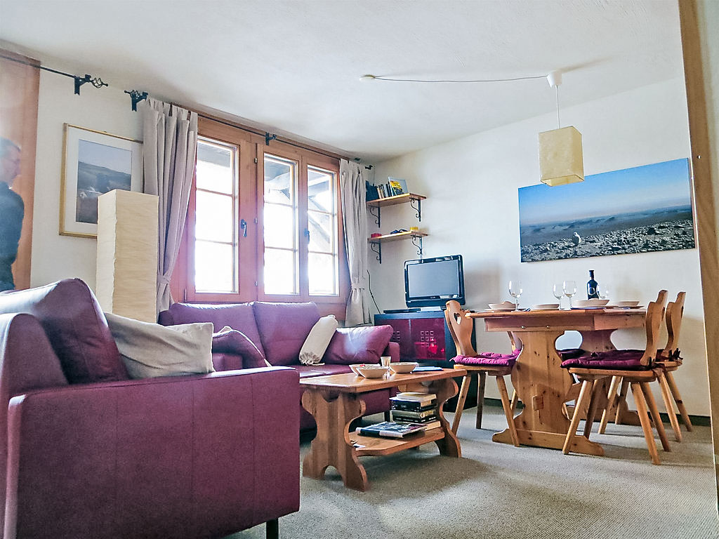 Residenz "Utoring Plaz". Im Ort, 350 m vom Zentrum, ruhige Lage, Richtung Süden. Zur Mitbenutzung: Hallenbad (Öffnungszeiten Schwimmbad: 16:00-19:00, extra). Kinderspielplatz. Im Hause: Sauna (extra). Solarium (extra). Fahrstuhl, Skiraum, Waschmaschine (extra). Gemeinschaftsgarage. Einkaufsgeschäft 350 m. Tennis 500 m, Skilift, Langlaufloipe, Eisfeld 350 m. Naturklettergarten in der Nähe. 1 Garagenplatz gratis, 2. Platz auf Anfrage für CHF 42.00/Woche. Individuell eingerichtete Wohnungen mit Sicht auf das Dorf Bivio sowie das majestätische Bergpanorama. Schwimmbad Mittwoch und Sonntag geschlossen. In der Zwischensaison Schwimmbad und Sauna komplett geschlossen.