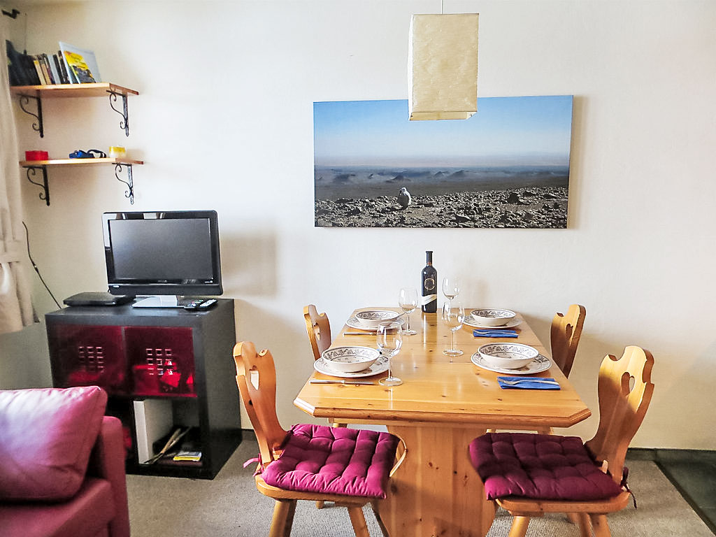"Utoring Plaz 083", 1-Zimmer-Wohnung 29 m2 im 1. Stock. Zweckmässig und gemütlich eingerichtet: Wohn-/Esszimmer mit 2 Wandklappbetten, TV und Radio. Kochnische (Backofen, 4 Glaskeramikherd Platten, elektrische Kaffeemaschine). Bad/WC. Balkon. Balkonmöbel. Zur Verfügung: Haartrockner. Internet (Wireless LAN, gratis). Garage Nr. 83. Bitte beachten: Nichtraucher-Unterkunft. Maximal 1 Haustier/Hund erlaubt.