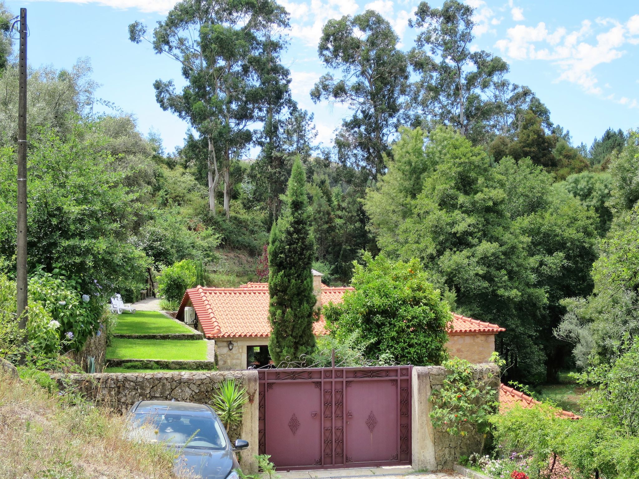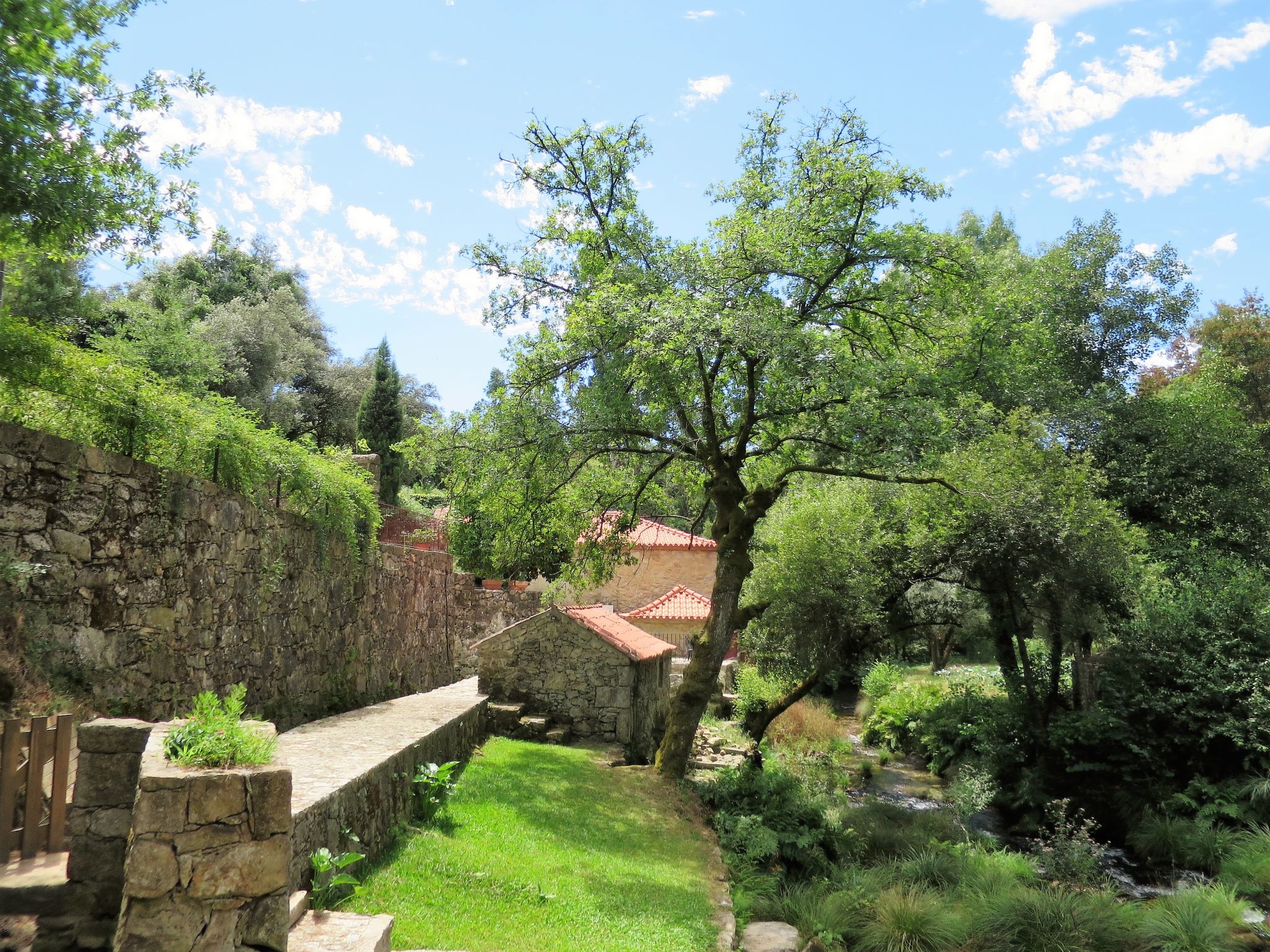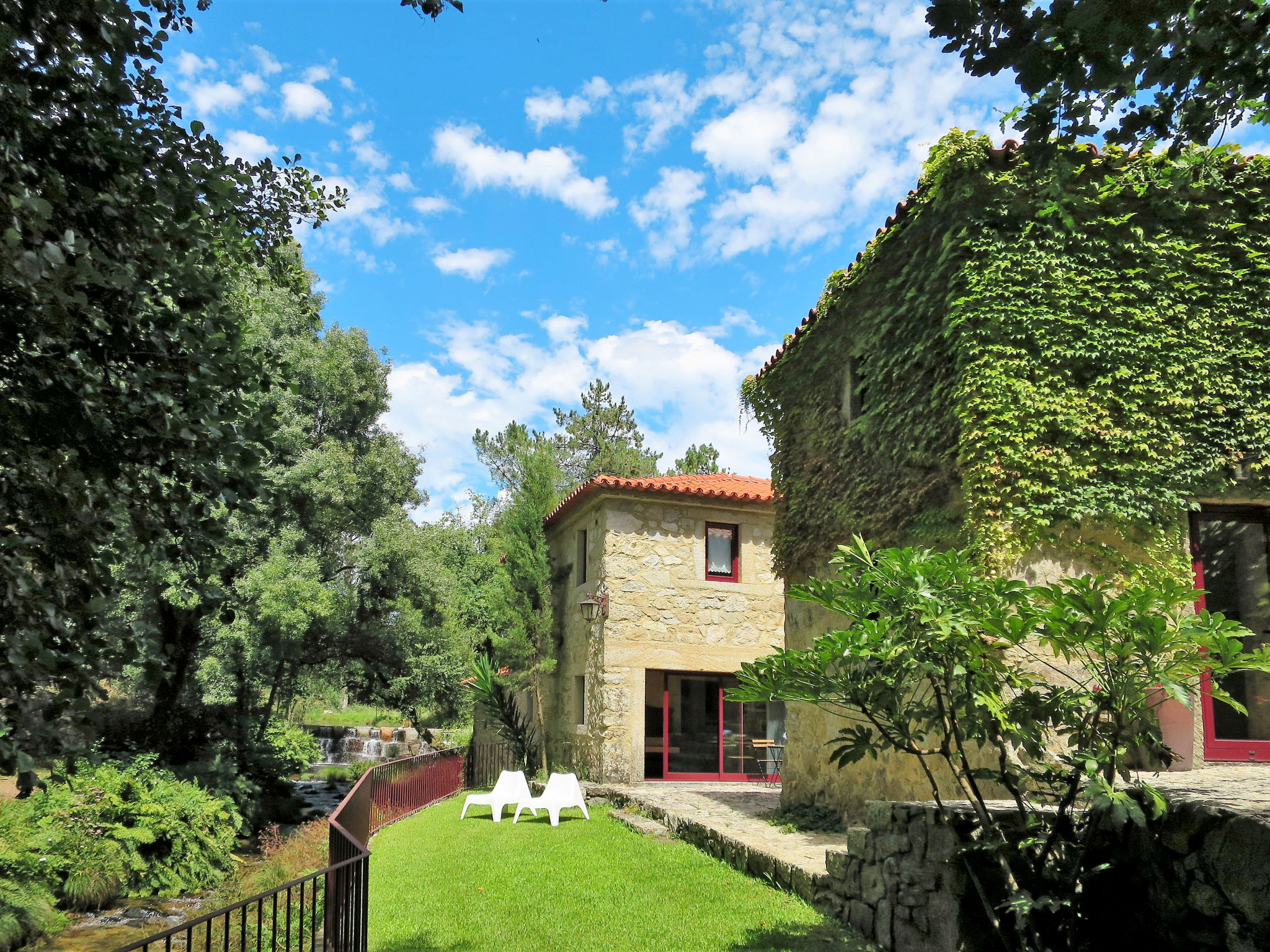Das reizende Ferienhaus, eine liebevoll renovierte ehemalige Wassermühle, steht ländlich-idyllisch am Fluss Labruja (Bademöglichkeit direkt beim Grundstück), 9,5 km von Ponte de Lima entfernt. Nächste Einkaufsmöglichkeit und Restaurant ca. 500 m. Labruja mit Wallfahrtskirche und ehemaligem Kloster 3 km. Viana do Castelo 34 km. Sandstrand in Cabedelo 36 km. Fluss mit Sandufer 9,5 km. Freibad in Ponte de Lima 9 km. 18-Loch-Golfplatz 11 km. Der Jakobs-Pilgerweg führt auf der gegenüberliegenden Flussseite entlang. Wandermöglichkeiten direkt ab Haus. Das Ferienhaus besteht aus einem Haupt- und Nebenhaus (gemeinsame oder separate Zufahrt möglich). Ca. 2000 m² großes, abgeschlossenes, terrassiertes Hanggrundstück mit Rasenflächen und Baumbestand, teils bepflanzt, teils naturbelassen. Einfahrtstor. Parkmöglichkeiten auf dem Grundstück. Grundstückspflege 1 x pro Woche durch den Verwalter. Terrasse mit Gartenmöbeln, 6 Sonnenliegen, Sonnenschirm. 2 weitere Terrassen. Gemauerter Grill. Feriengerechte, ansprechende Einrichtung mit viel Charme. Teils Natursteinmauern, Holzbalkendecke. Fliesenboden. Sat-TV, DVD. Internetzugang (WLAN, € 3/Tag). Waschmaschine, Bügeleisen/-brett. Klimaanlage mit Kühl-/Heizfunktion. Heizung nicht in allen Räumen.