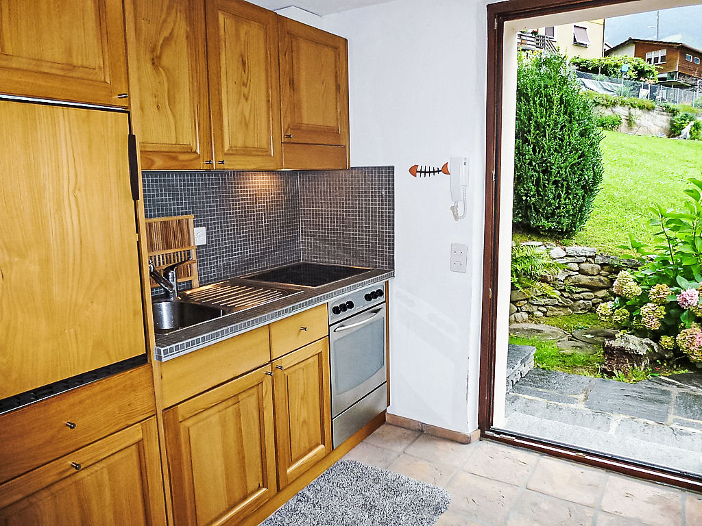 "Casa Nelly", 1-Zimmer-Wohnung 28 m2, im Erdgeschoss. Zweckmässig und modern eingerichtet: Wohn-/Schlafzimmer mit 1 Diwanbett und 1 franz. Bett (140 cm, Länge 200 cm), Kabel-TV (Flachbildschirm). Ausgang zur Terrasse. Offene Küche (Backofen, 4 Glaskeramikherd Platten, Mikrowelle, Grill, elektrische Kaffeemaschine) mit Esstisch. Dusche/WC. Bodenheizung. Natursteinböden. Terrassenmöbel, Gartengrill (mobil), Liegestühle (2). Schöne Sicht auf die Berge, das Tal und die Landschaft. Zur Verfügung: Kinderhochstuhl, Babybett bis 2 Jahre (extra), Haartrockner. Internet (Wireless LAN, gratis). Parkplatz (überdacht). Bitte beachten: Nichtraucher-Haus. 1 Haustier/Hund erlaubt. Sep.Eingang.