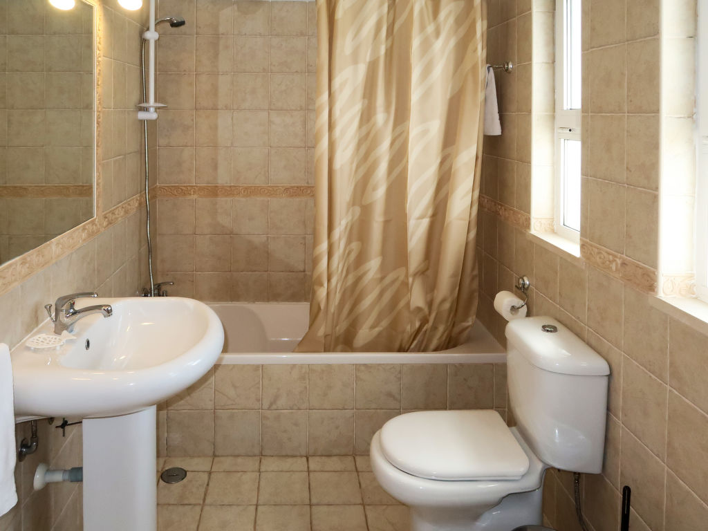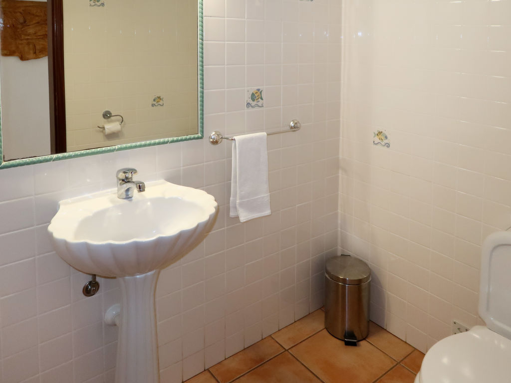 4-Zimmer-Haus, ca. 145 m². Flur mit Garderobe, Sitzcouch und Tischchen. Heller, geräumiger Wohnraum mit Sitzgruppe, Essplatz, Terrassenausgang, durch Theke abgeteilte Küche (4 Flammen, Backofen, Mikrowelle, Geschirrspüler, Kühl-/Gefrierkombination, Kaffeemaschine, Wasserkocher, Toaster). Schlafzimmer mit franz. Bett (1,50 m breit), Bad/WC, Gartenausgang. 2 Zweibettzimmer, eines davon mit Gartenausgang. Dusche/WC. Sep.WC. Hinweis: Bei Buchung zum Preis für 4 Personen bleibt 1 Schlafzimmer verschlossen. Bei Belegung mit weniger Personen als der maximalen Personenzahl stehen nicht alle Schlafzimmer zur Verfügung. 15005/AL