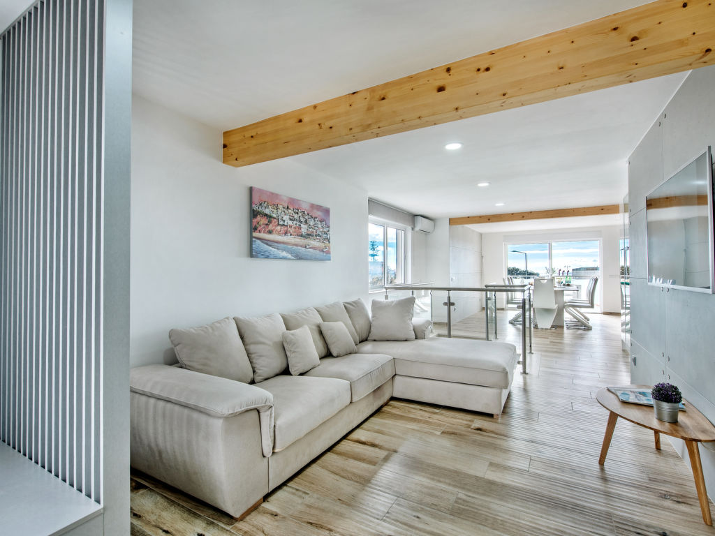 5-Zimmer- Haus für 8 Personen, 300 m2 auf 2 Stockwerken, modern und gemütlich eingerichtet. Wohn-/Esszimmer mit Kabel-TV. Rauchen nicht erlaubt. Internet (Wireless LAN [WLAN]). Schlafzimmer mit 1 Doppelbett. Schlafzimmer mit 1 Doppelbett. Schlafzimmer mit 1 Doppelbett. Schlafzimmer mit 1 Doppelbett. Offene Küche mit 4 - Platten Herd, Mikrowelle, Backofen, Esstisch, Geschirrspüler, Kühlschrank und Tiefkühler. Bad/WC, Dusche, Dusche/WC und sep. WC. Balkon 10 m2, Terrasse 50 m2, Gartensitzplatz 30 m2, Terrassenmöbel. Weitere Ausstattung: Safe, Haartrockner, Bügeleisen, Waschmaschine, Sprudelbad. Badezimmer 1) mit Dusche, Waschbecken, Toilette. 2) mit Dusche, Waschbecken, Toilette. 3) mit Dusche, Waschbecken, Toilette. 76893/AL
